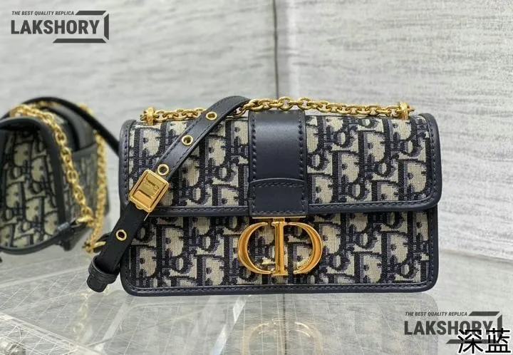 Dior 1:1 Mirror Replica East-West 30 Montaigne w/ Chain Blue 21CM/8.3IN