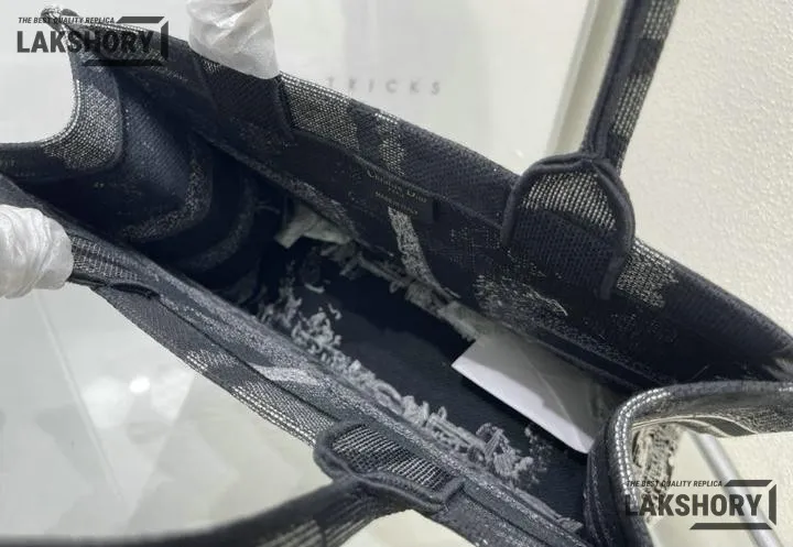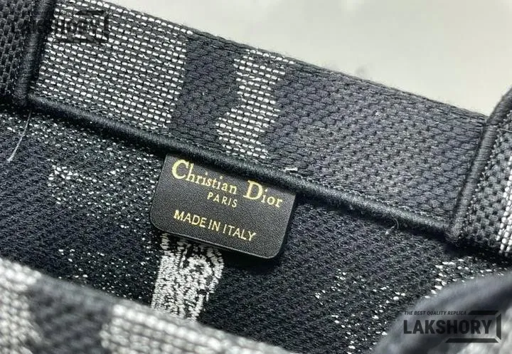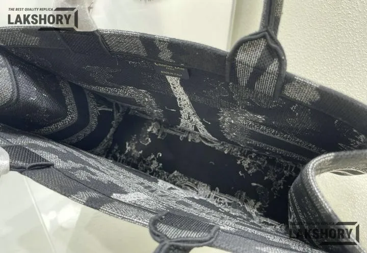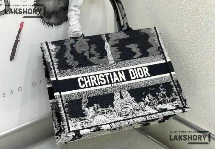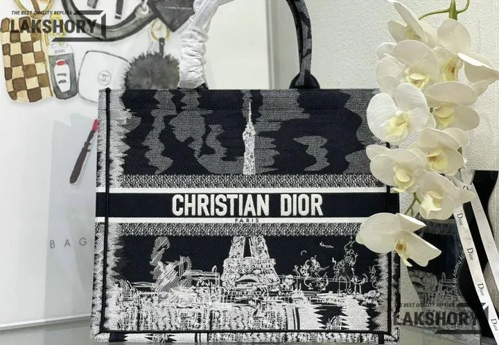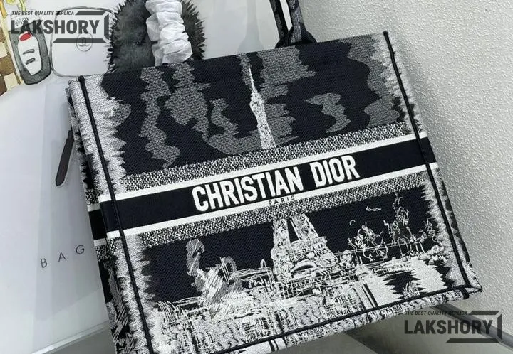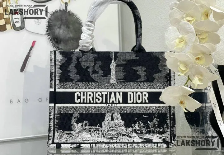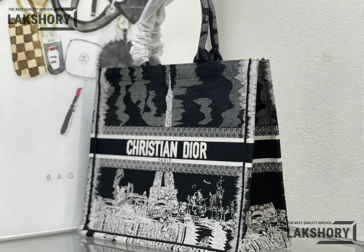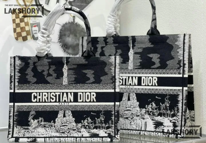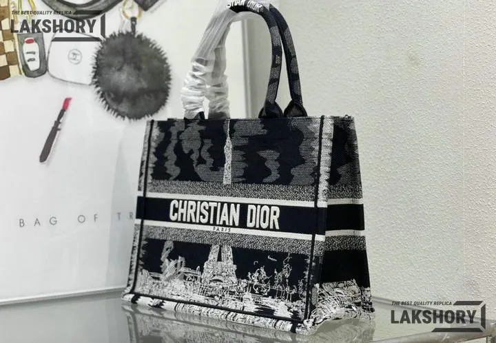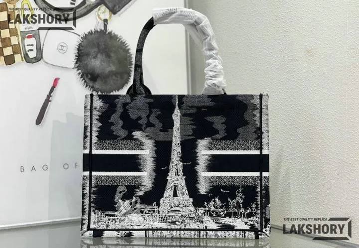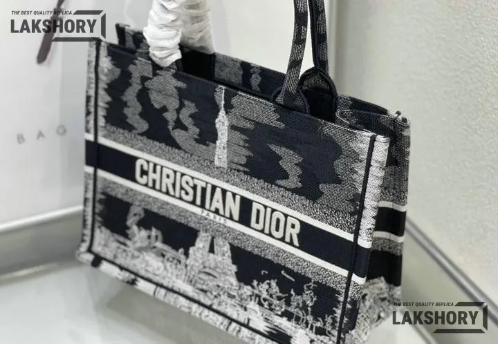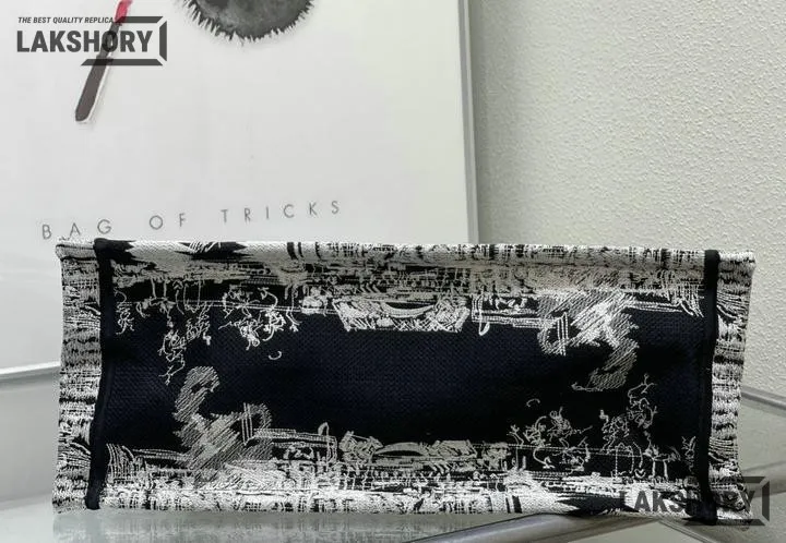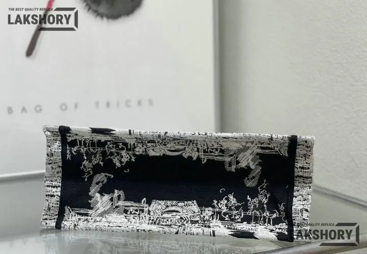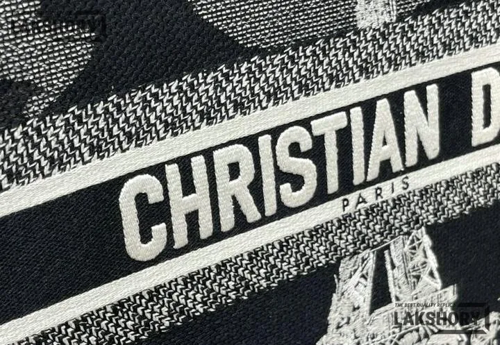Dior 1:1 Mirror Replica Embroidered Canvas Paris Book Tote Black/White