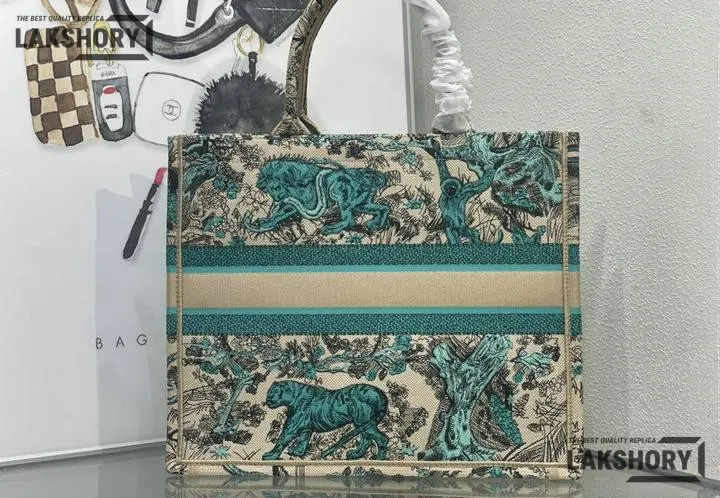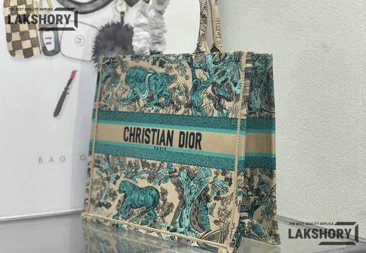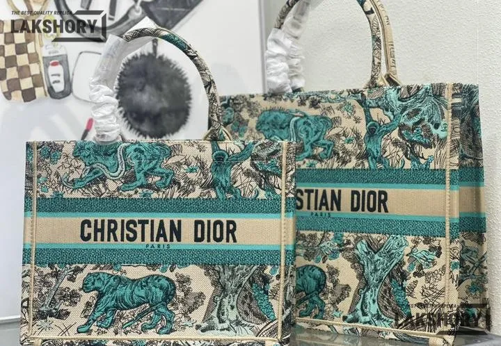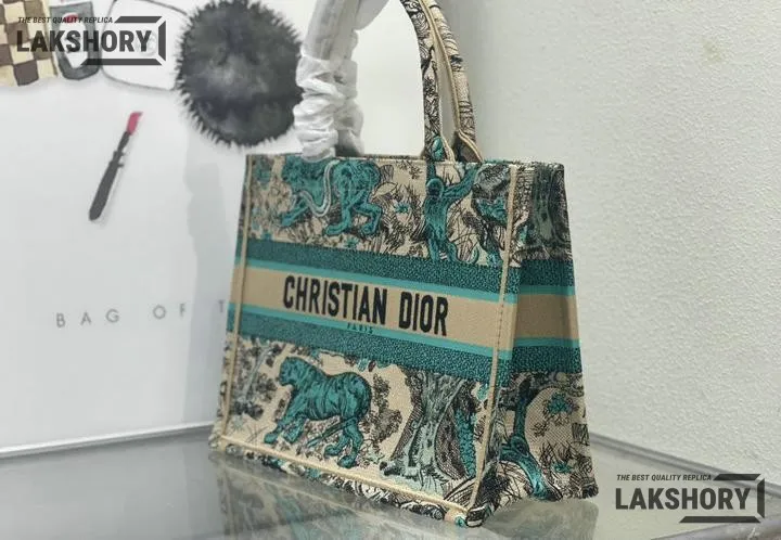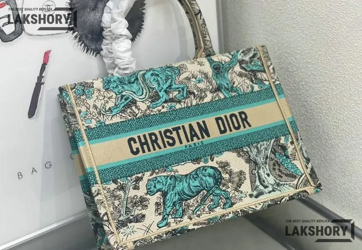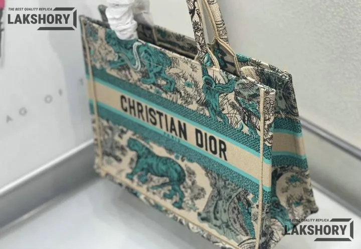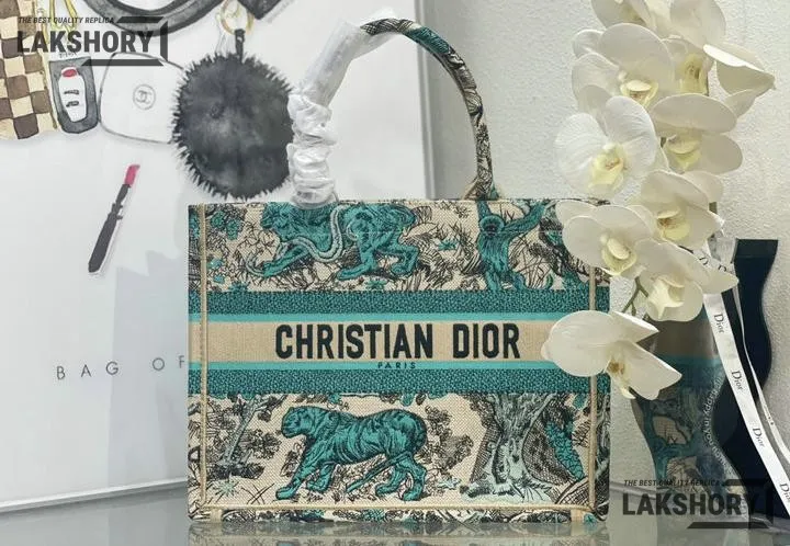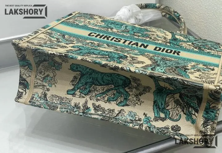 Dior 1:1 Mirror Replica Embroidered Dioriviera Book Tote Aquamarina