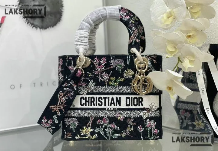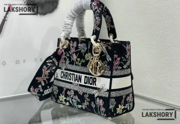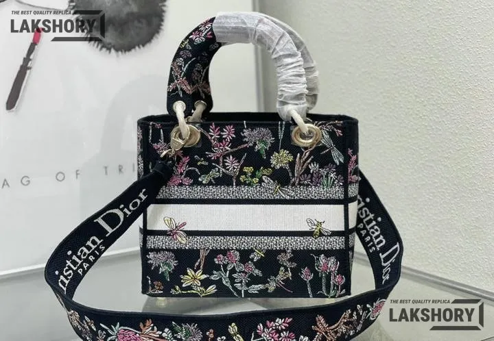 Dior 1:1 Mirror Replica Embroidered Medium Herbarium Lady D-Lite 24CM/9.4IN