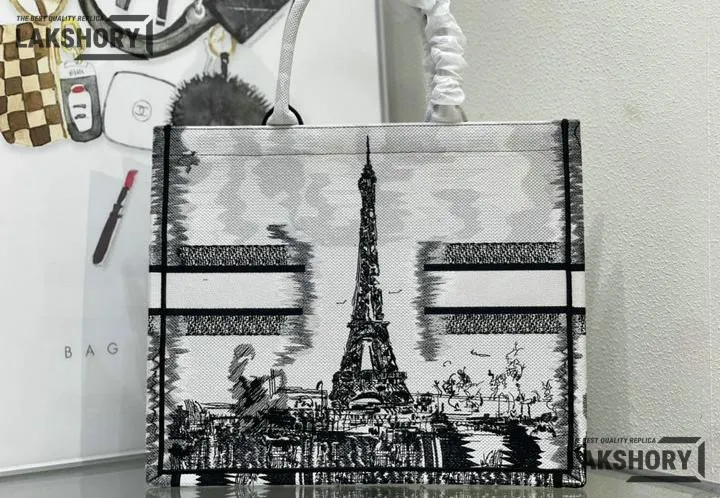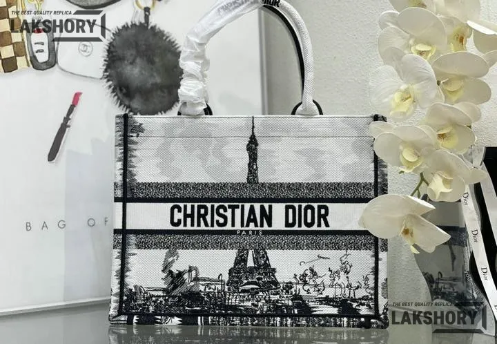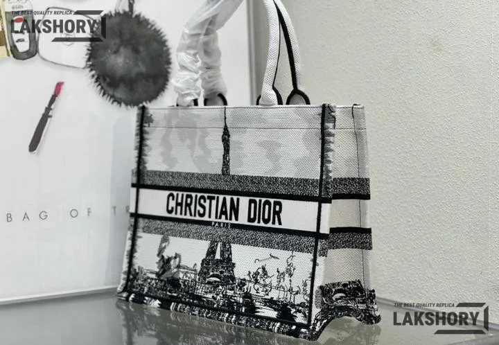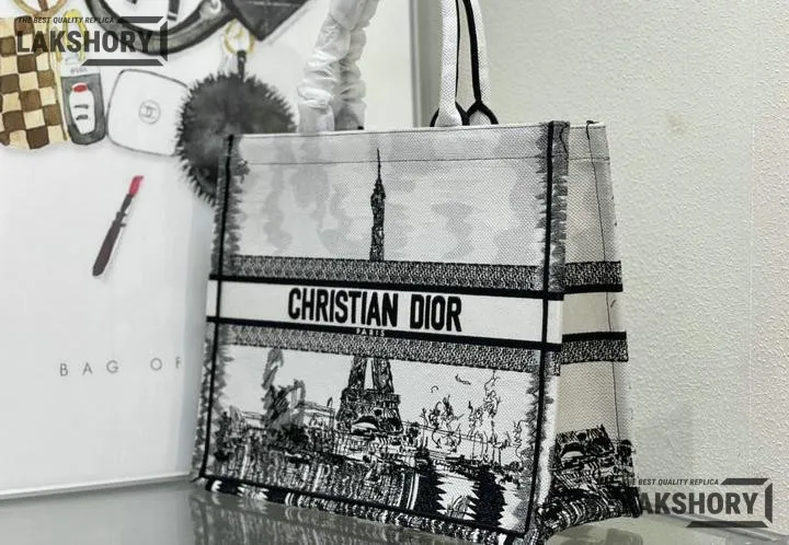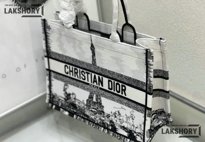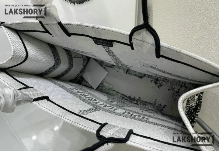 Dior 1:1 Mirror Replica Embroidered North Paris White Book Tote