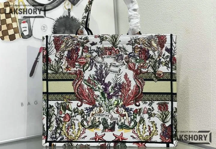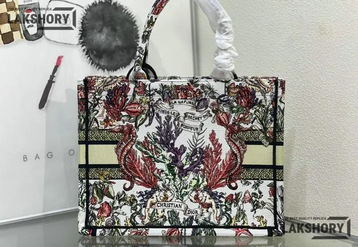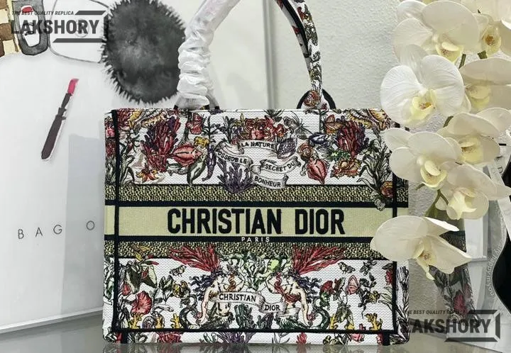 Dior 1:1 Mirror Replica Embroidery Canvas Paris Signature Book Tote
