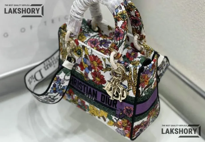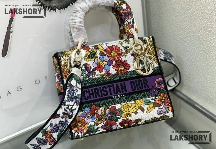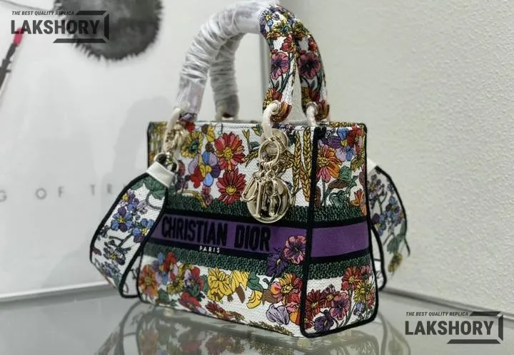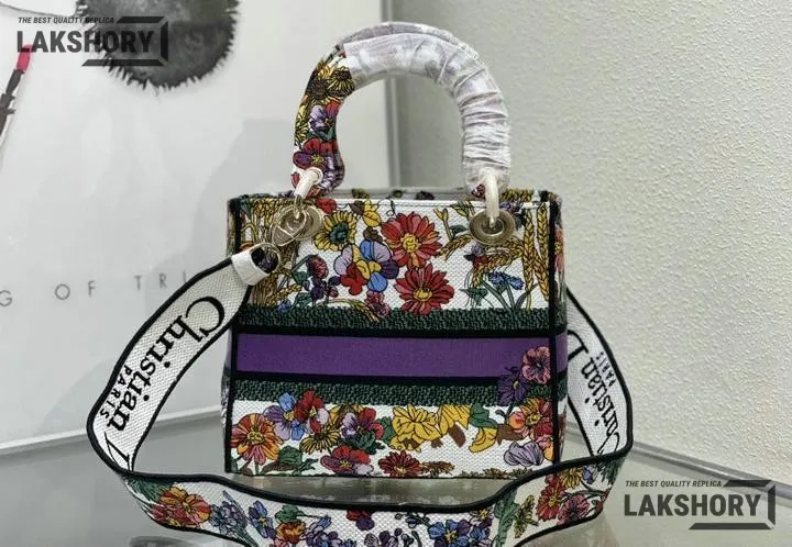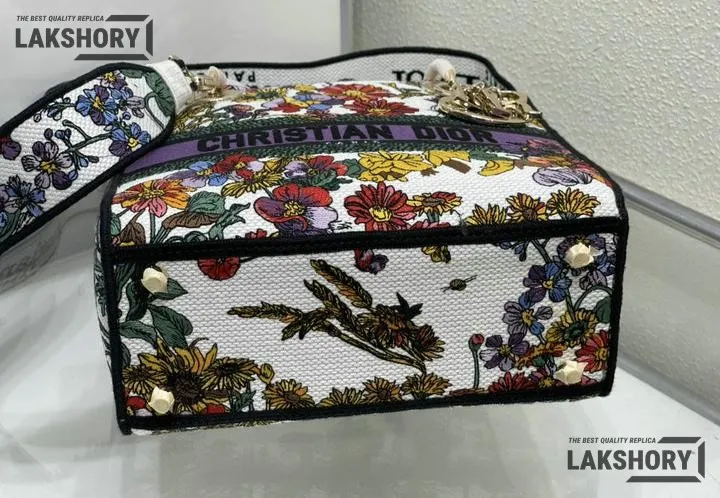 Dior 1:1 Mirror Replica Floral Embroidered Medium Lady D-Lite 24CM/9.4IN