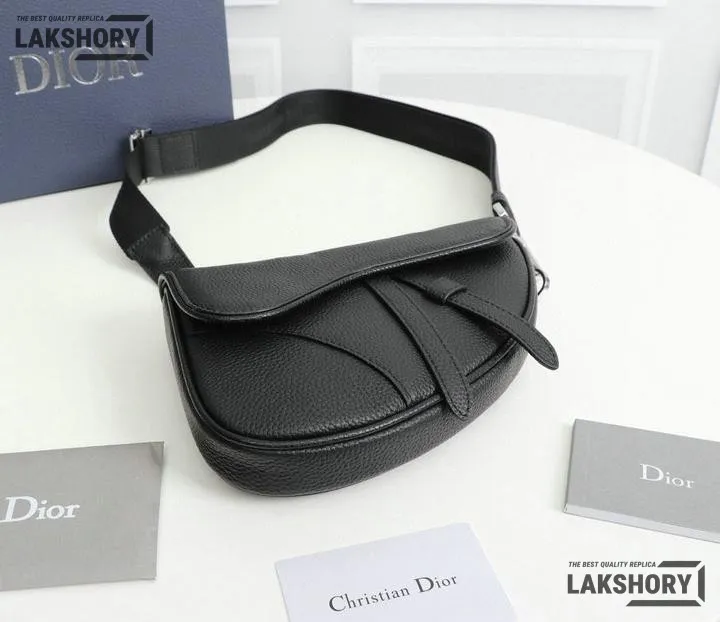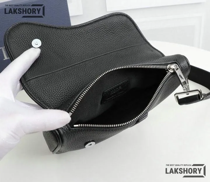Dior 1:1 Mirror Replica Grained Black Kim Jones Saddle 21CM/8.2IN