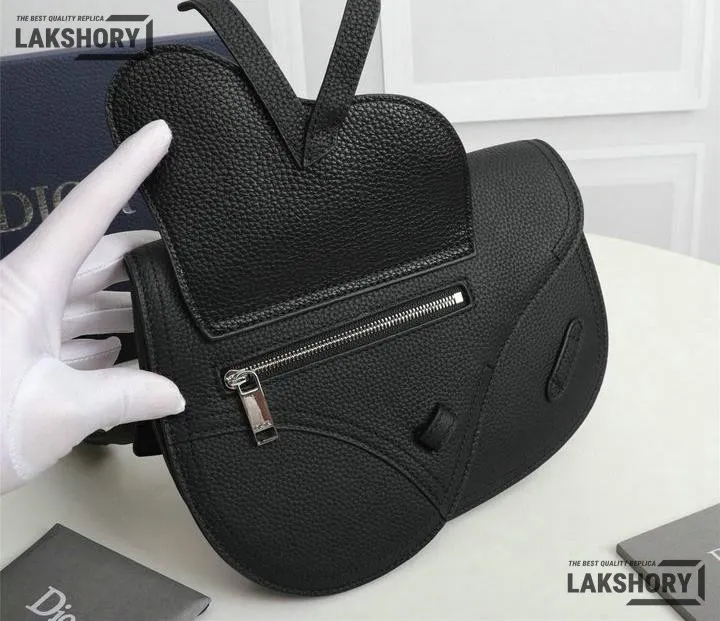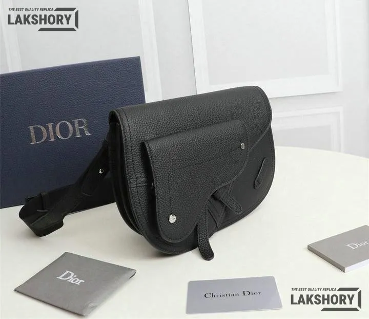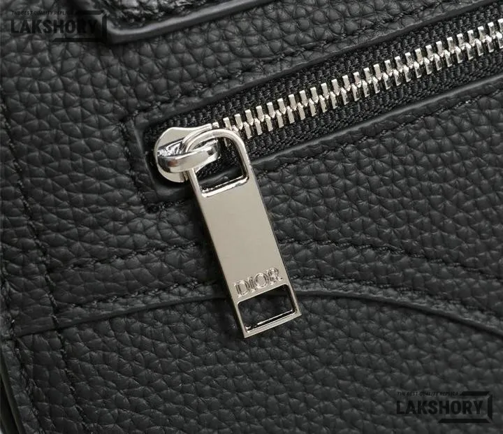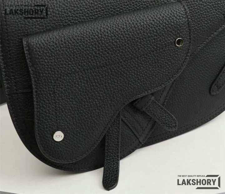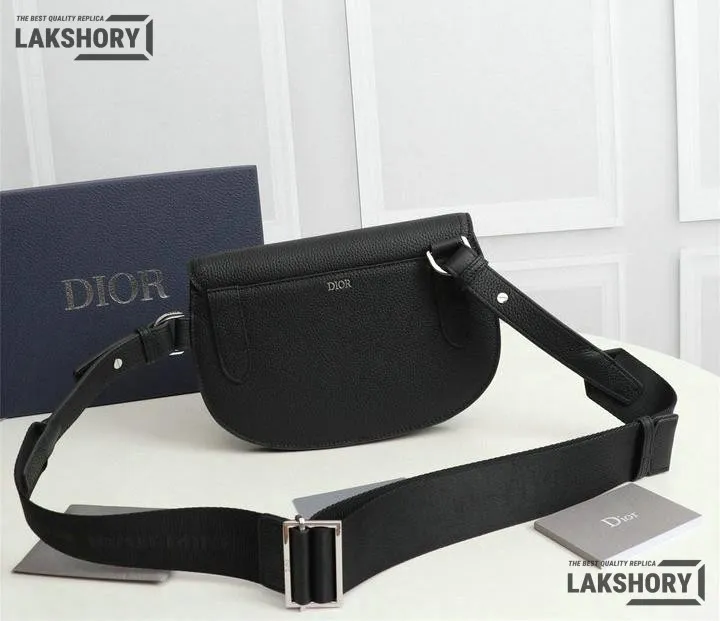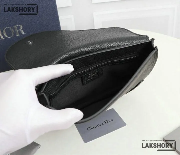 Dior 1:1 Mirror Replica Grained Calfskin Black Saddle Messenger