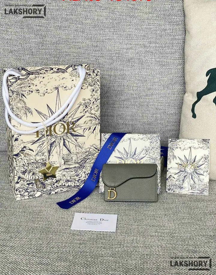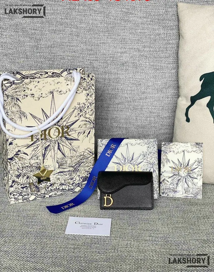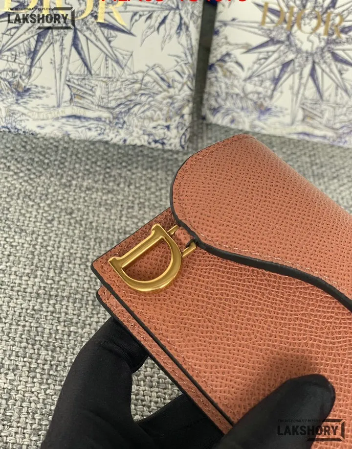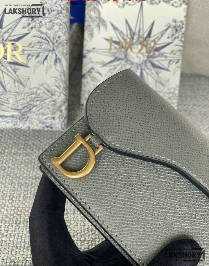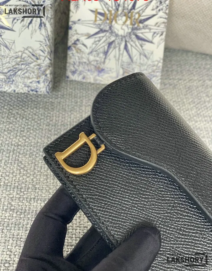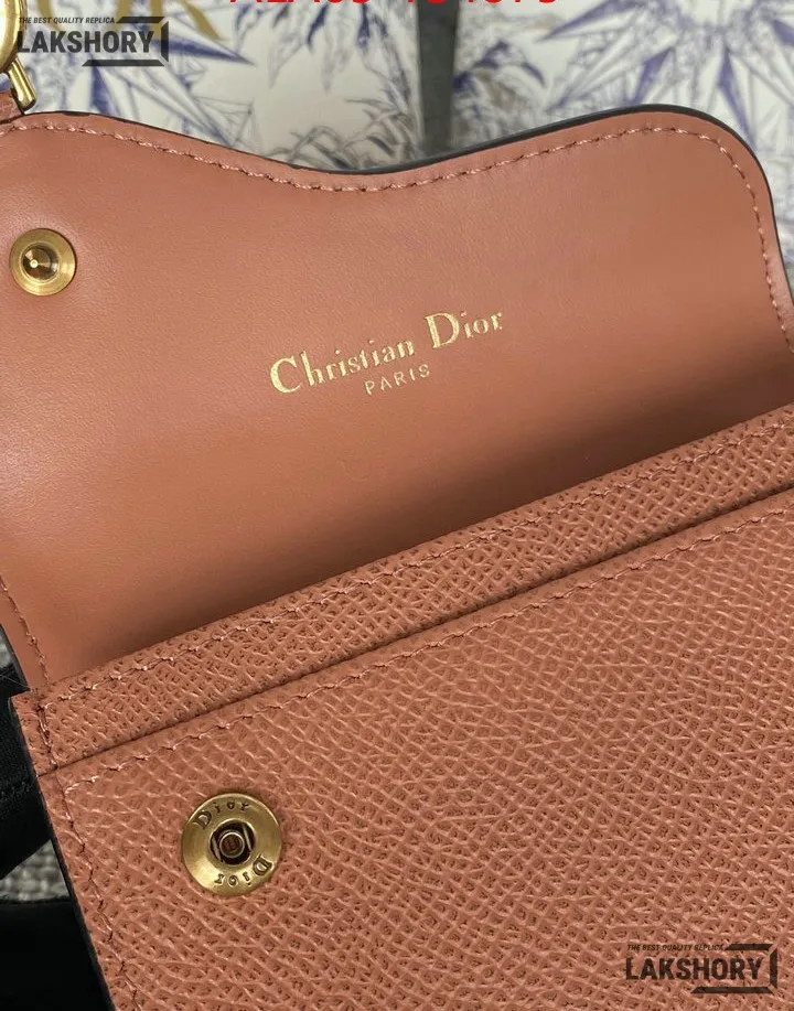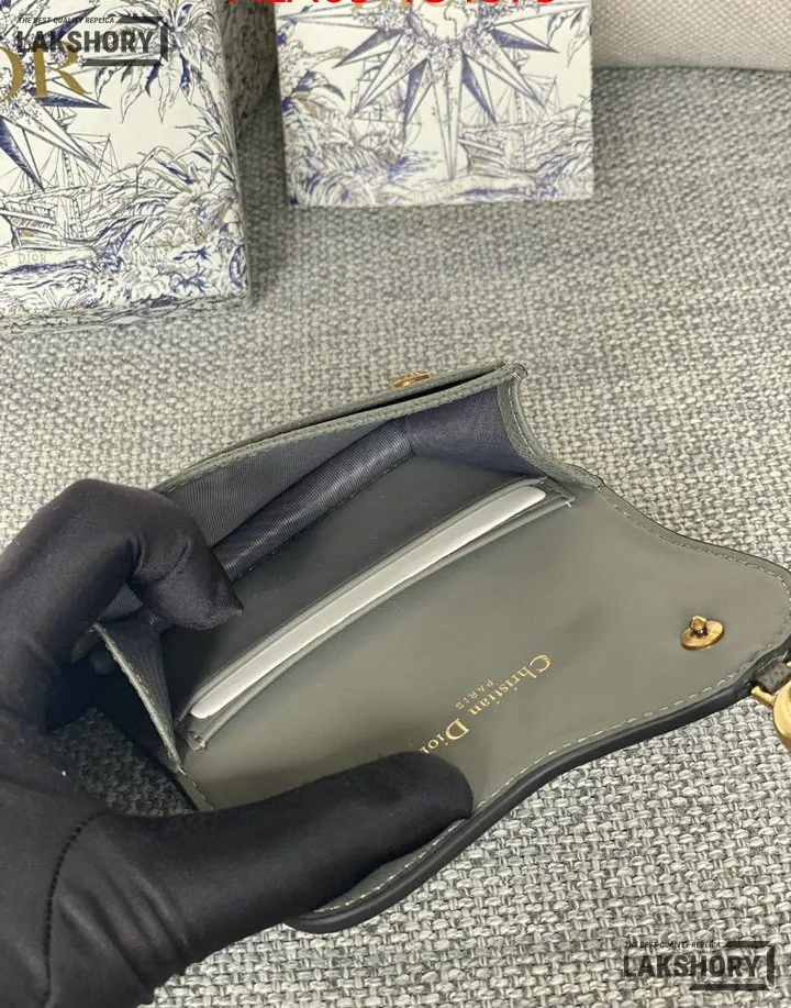 Dior 1:1 Mirror Replica Grained Calfskin Saddle Card Holder 10.5CM/4.1IN