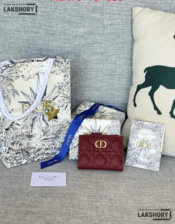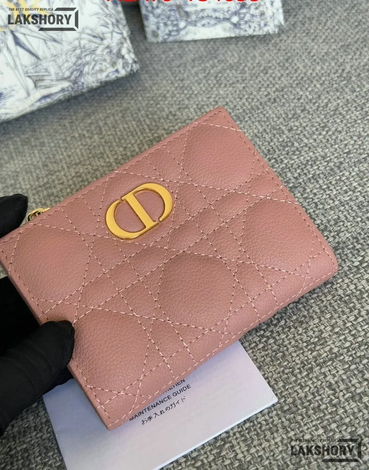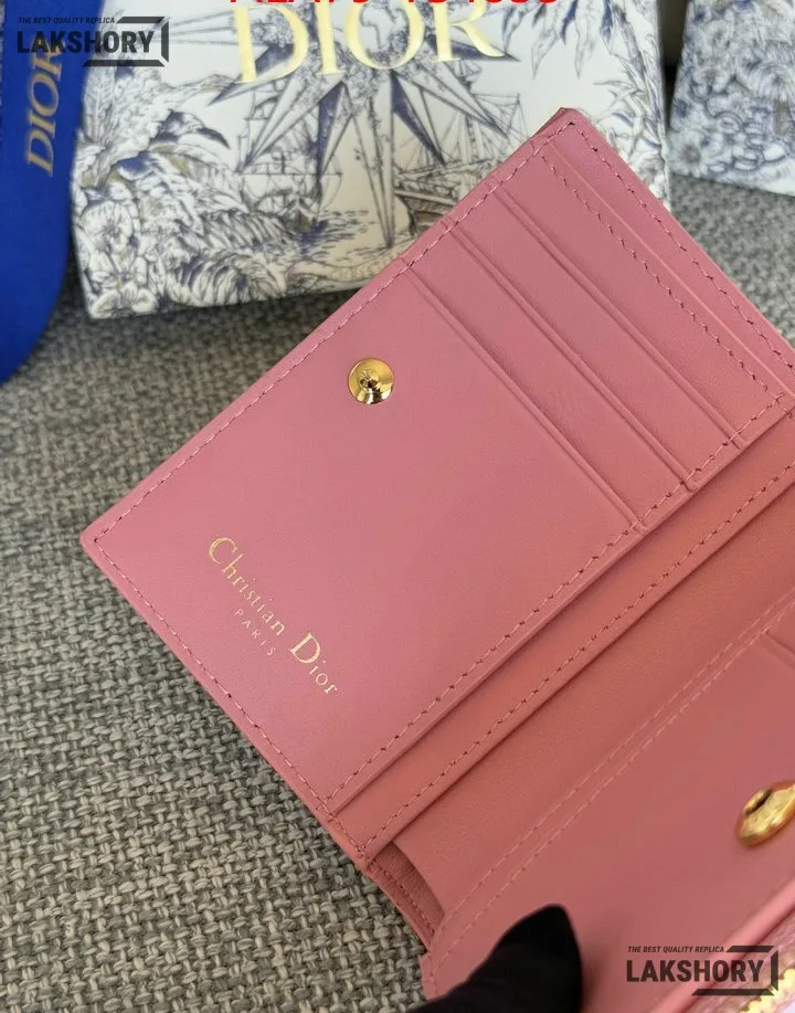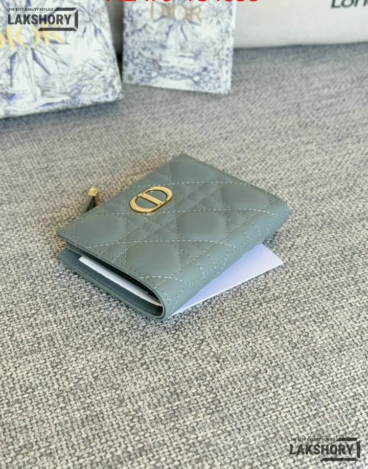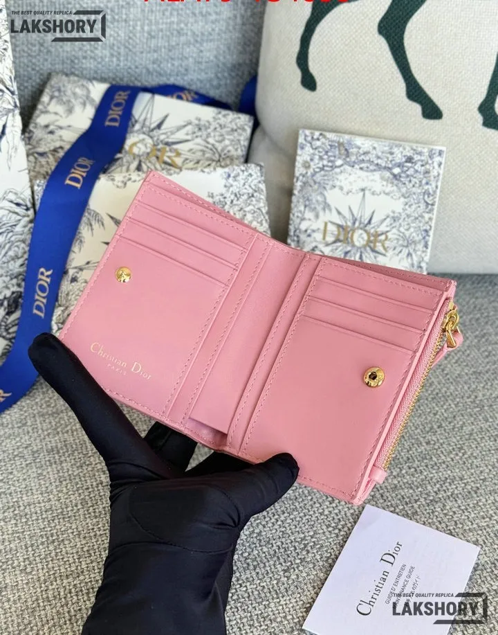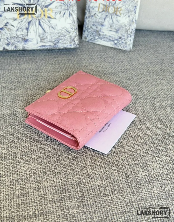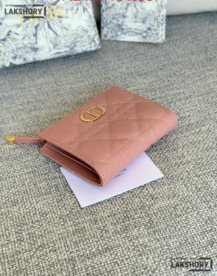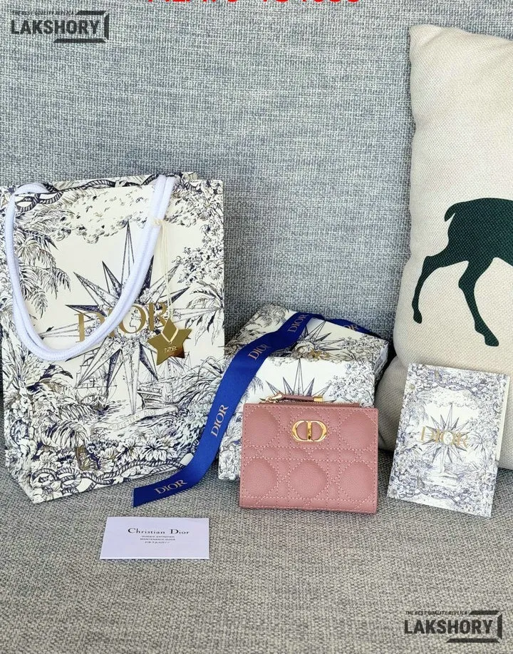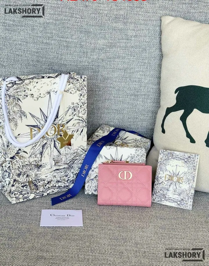Dior 1:1 Mirror Replica Grained Calfskin Supple Cannage Caro Dahlia Wallet 11.5CM/4.5IN