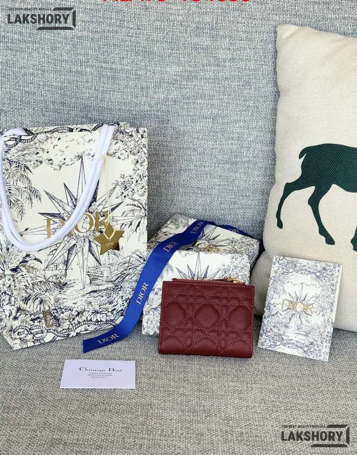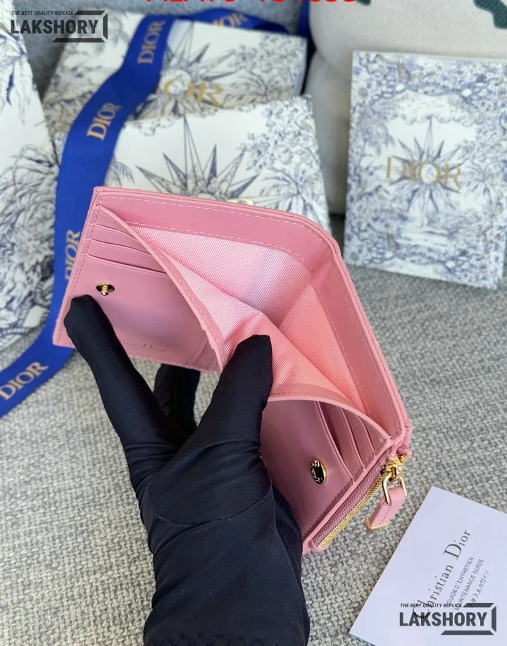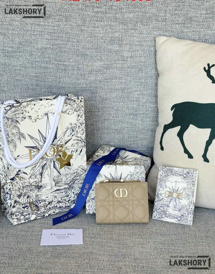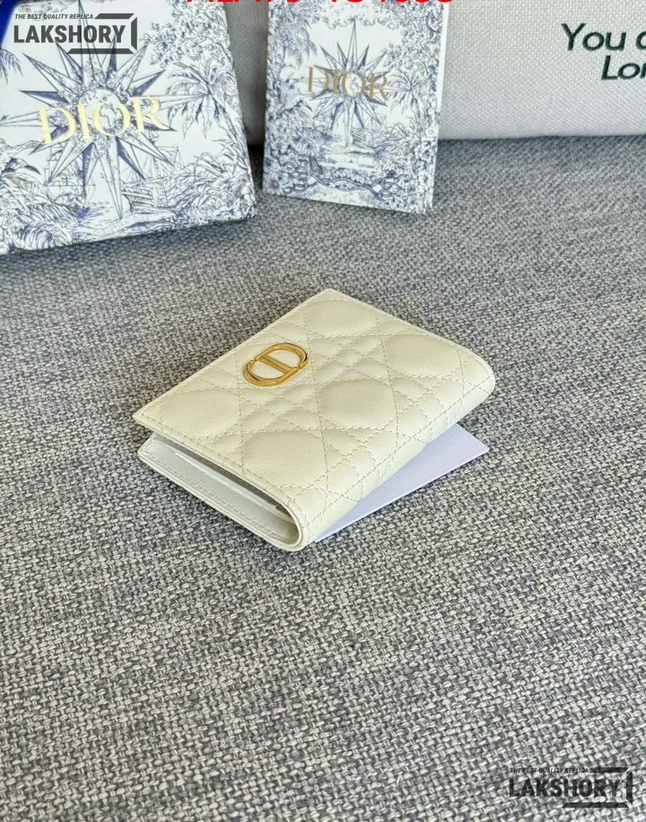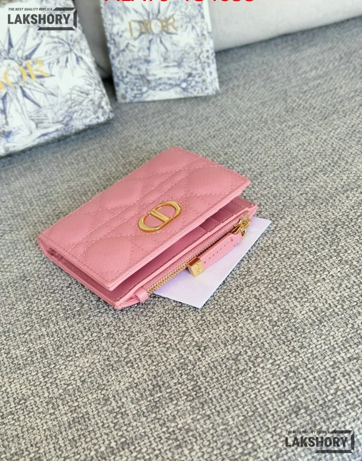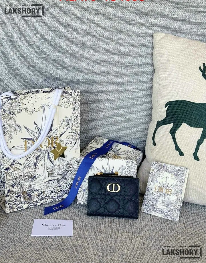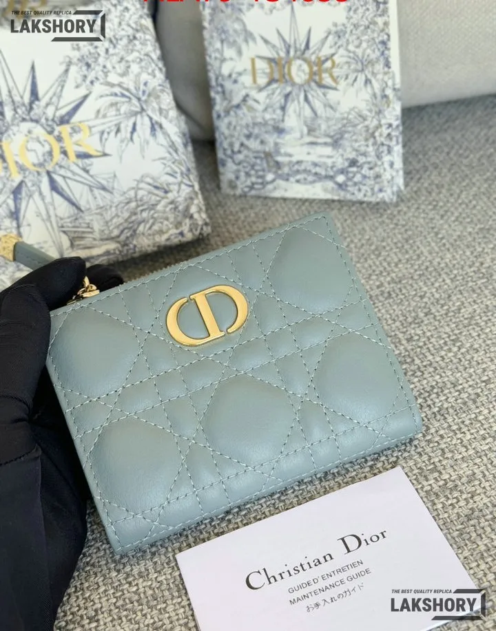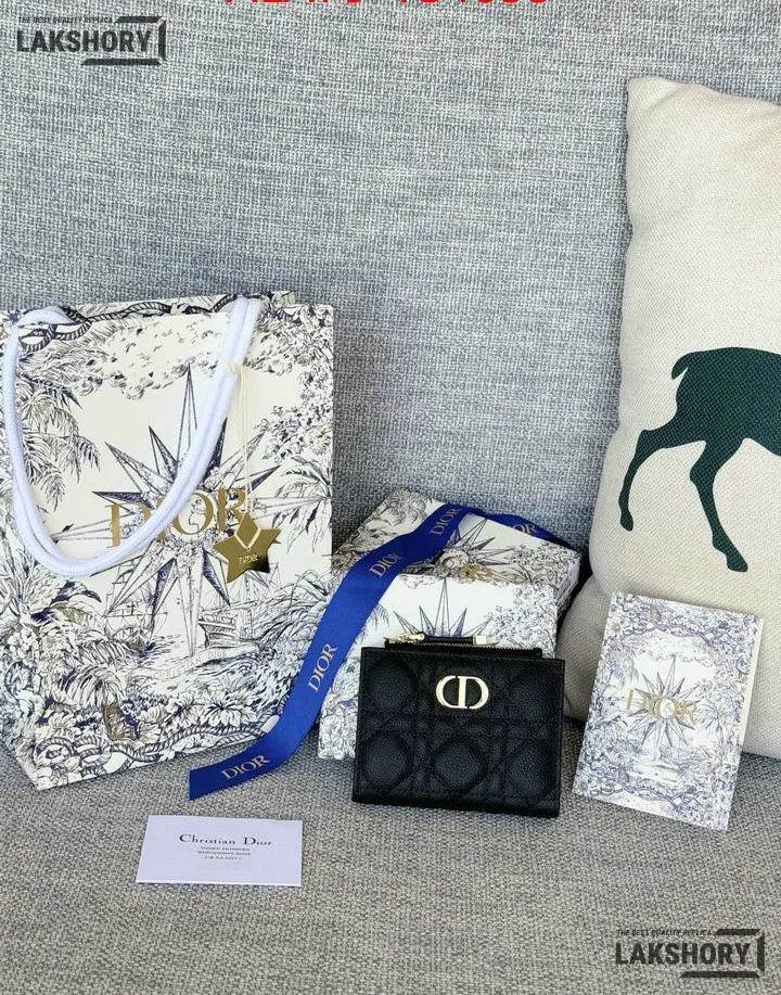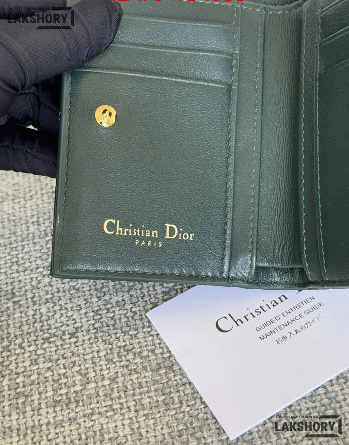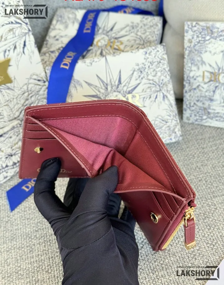 Dior 1:1 Mirror Replica Grained Calfskin Supple Cannage Caro Dahlia Wallet 11.5CM/4.5IN