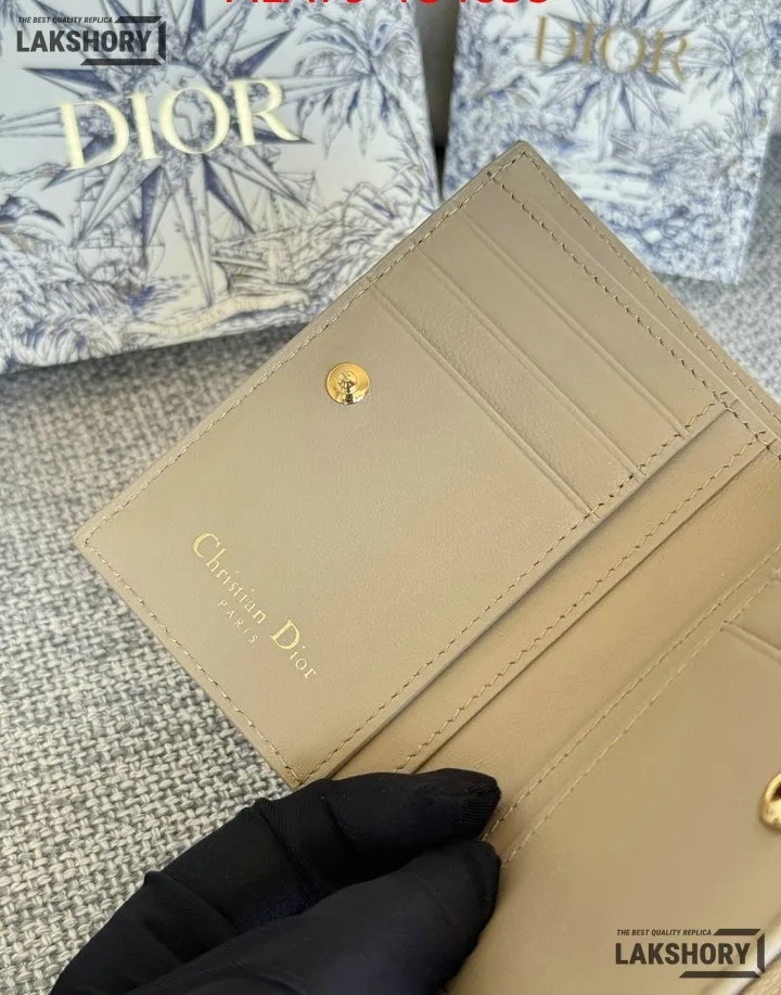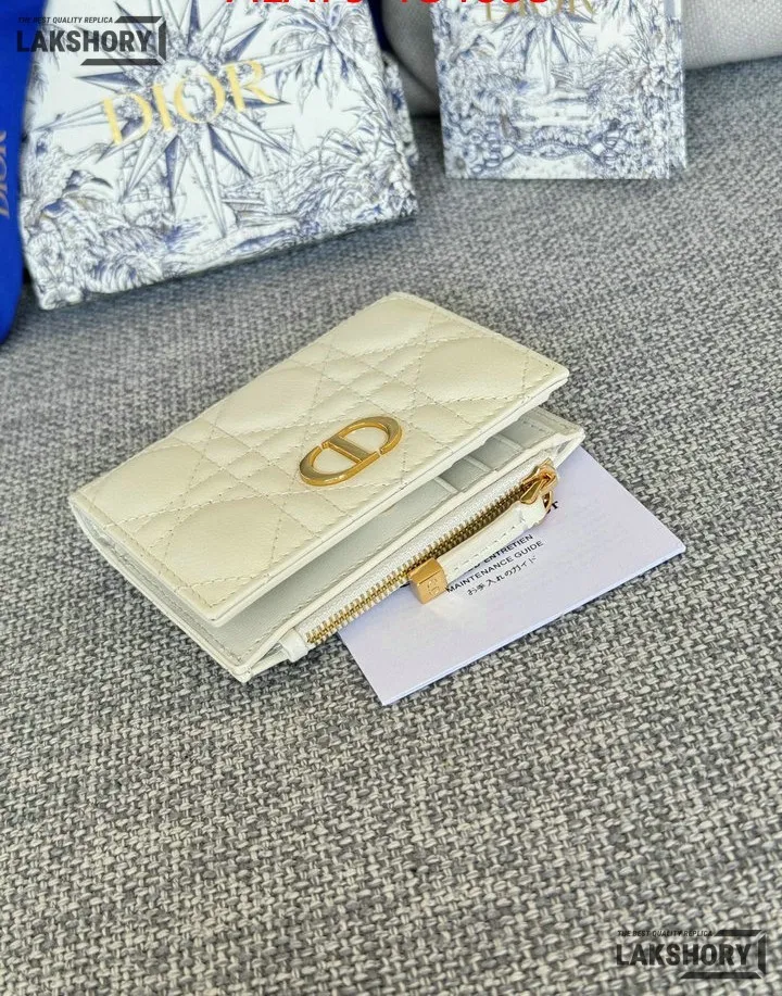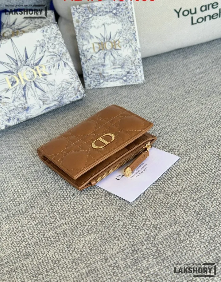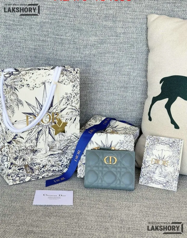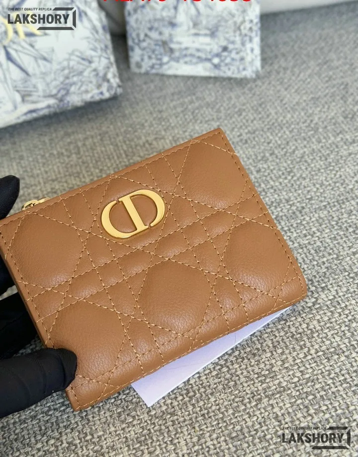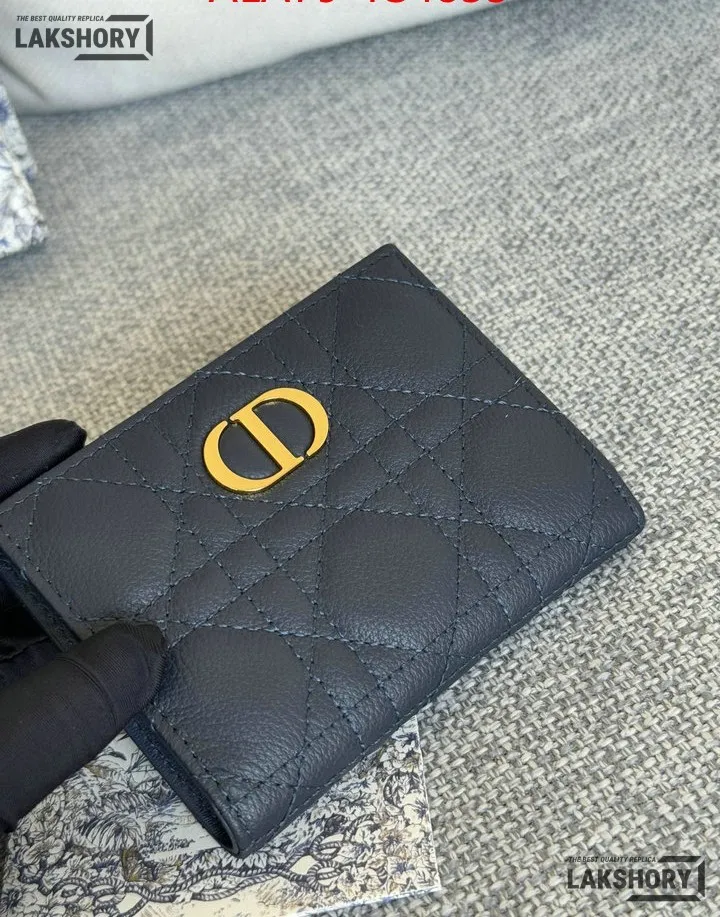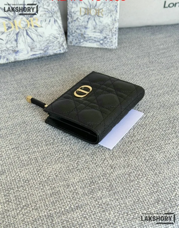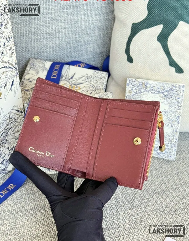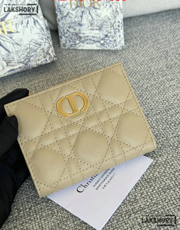 Dior 1:1 Mirror Replica Grained Calfskin Supple Cannage Caro Dahlia Wallet 11.5CM/4.5IN