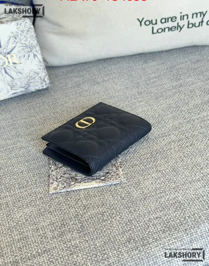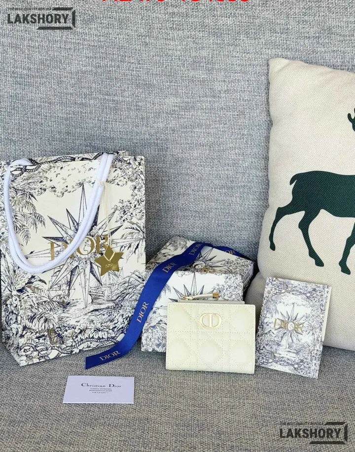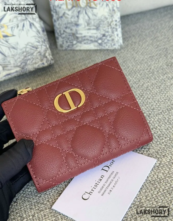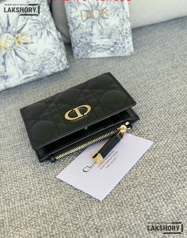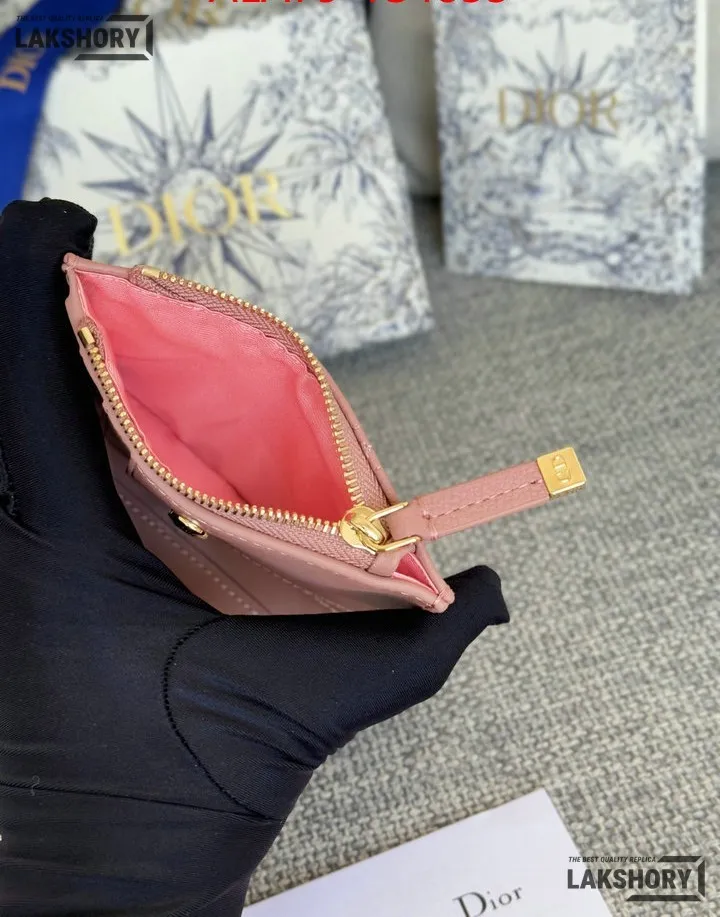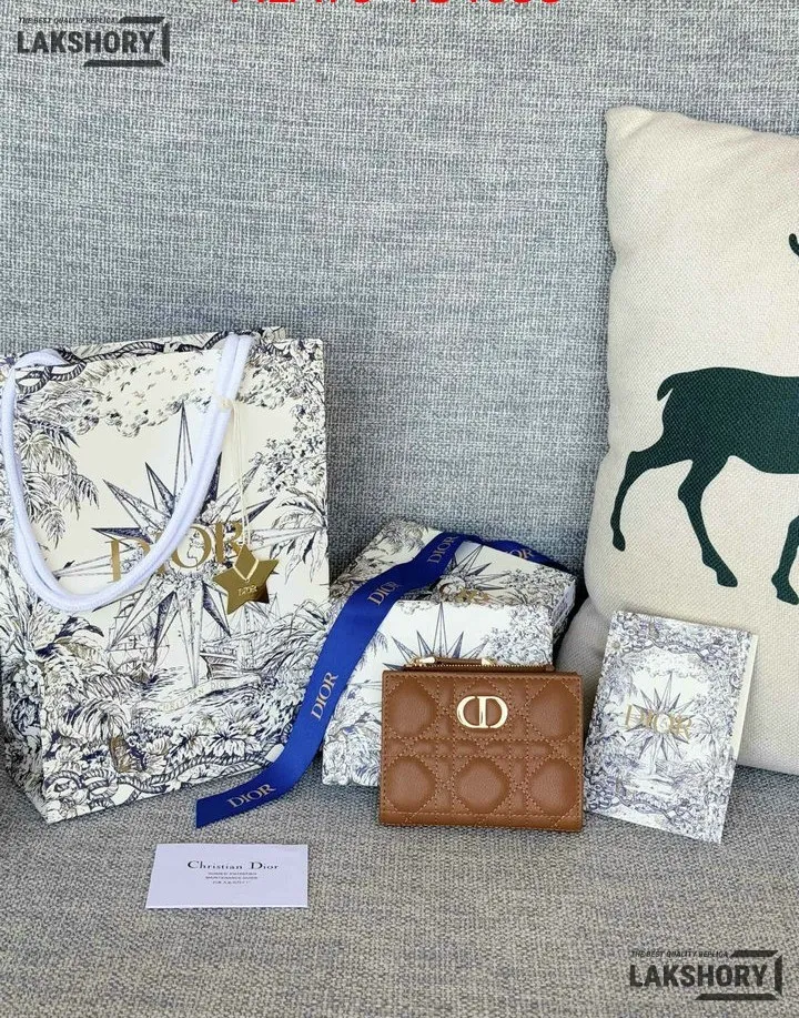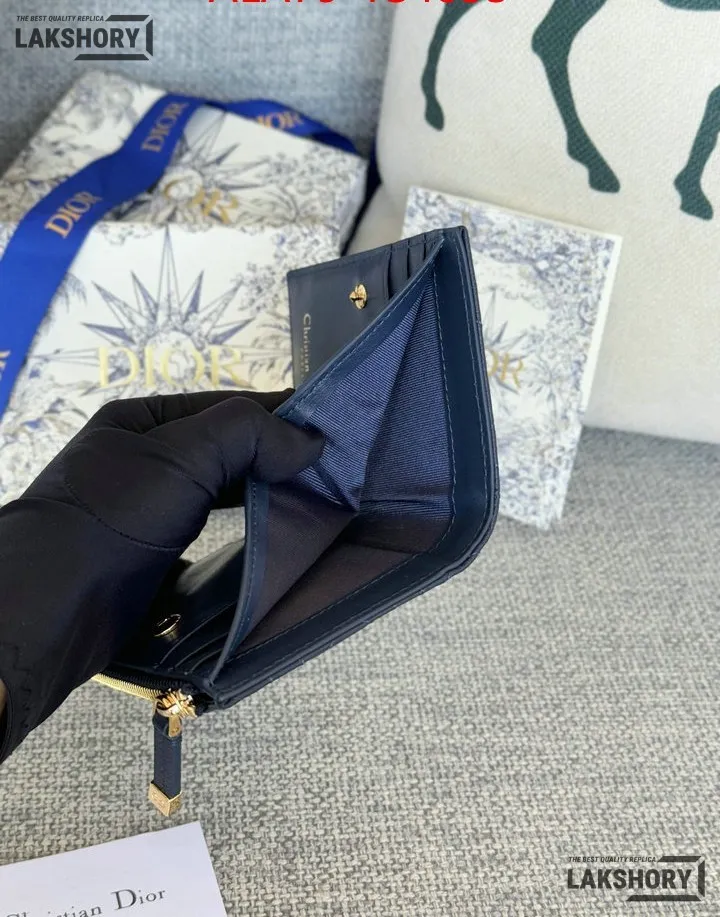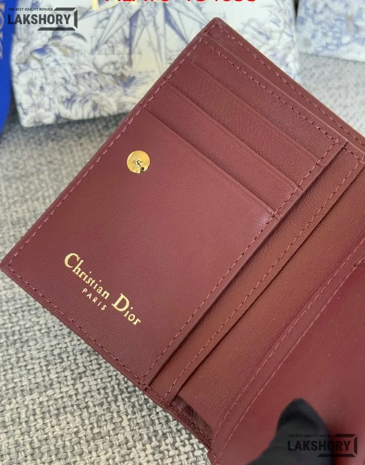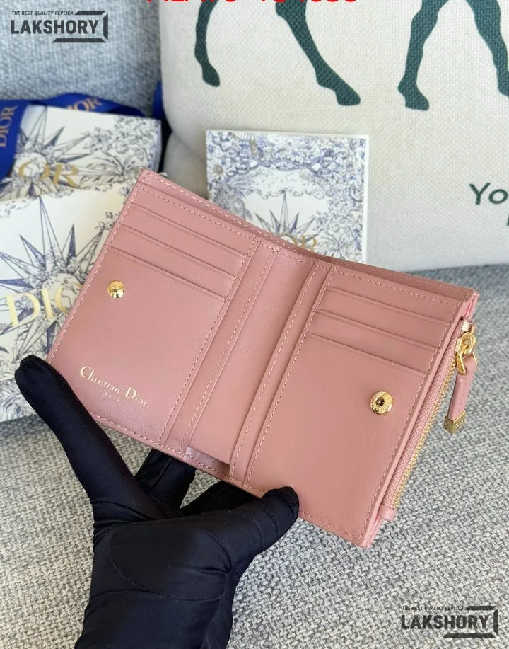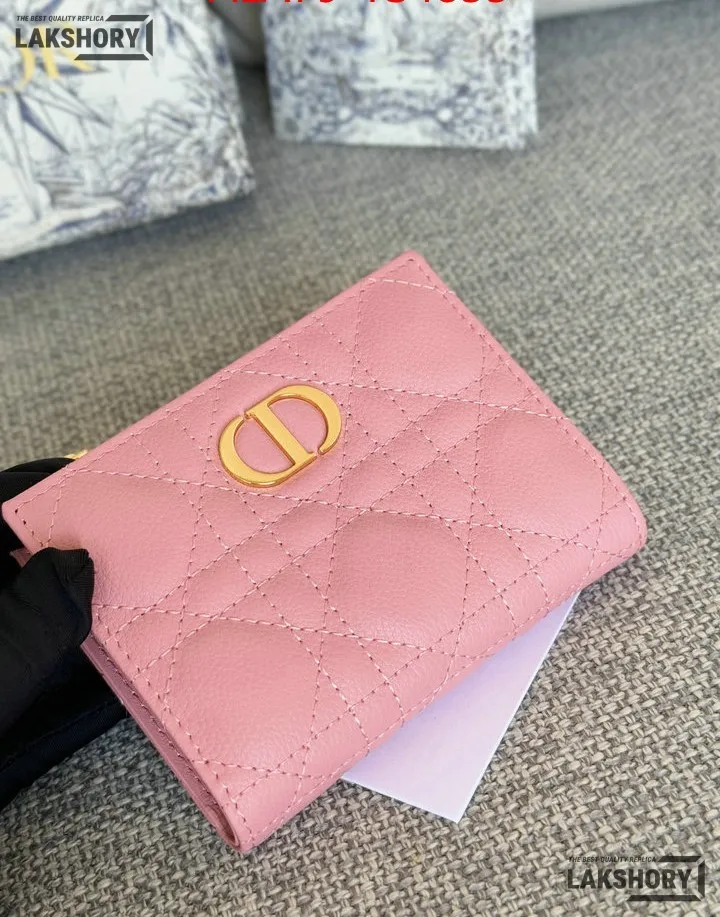 Dior 1:1 Mirror Replica Grained Calfskin Supple Cannage Caro Dahlia Wallet 11.5CM/4.5IN