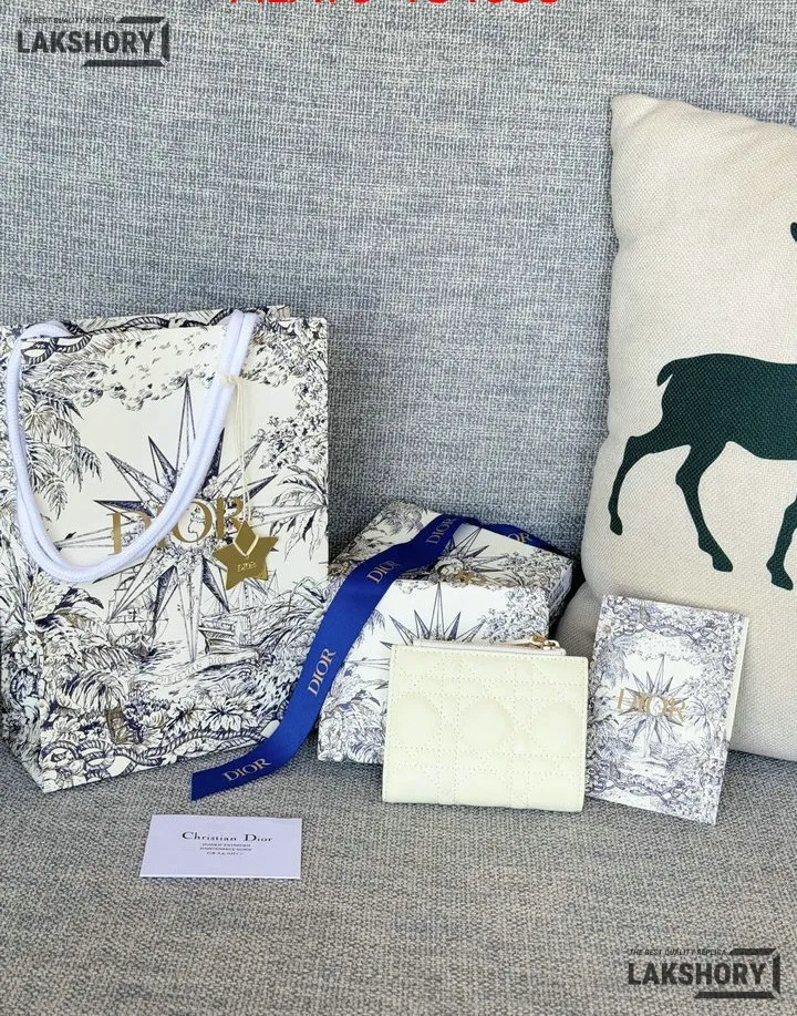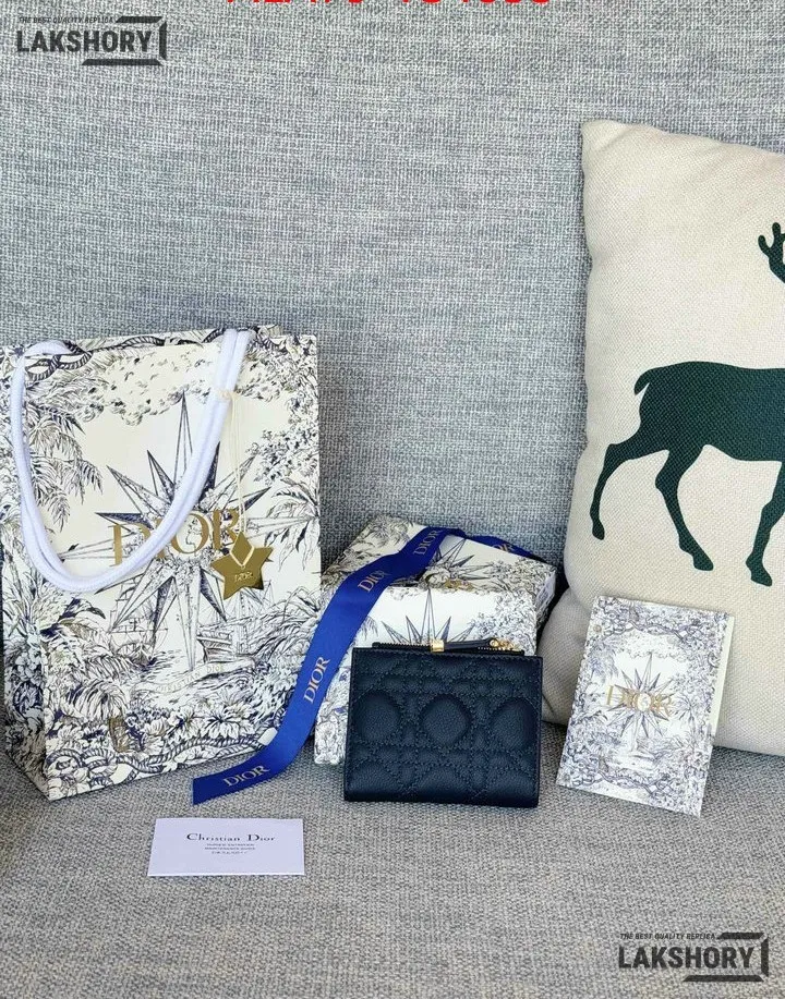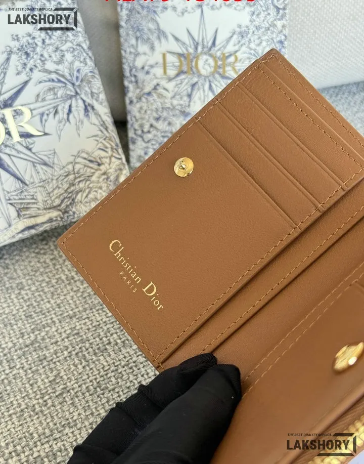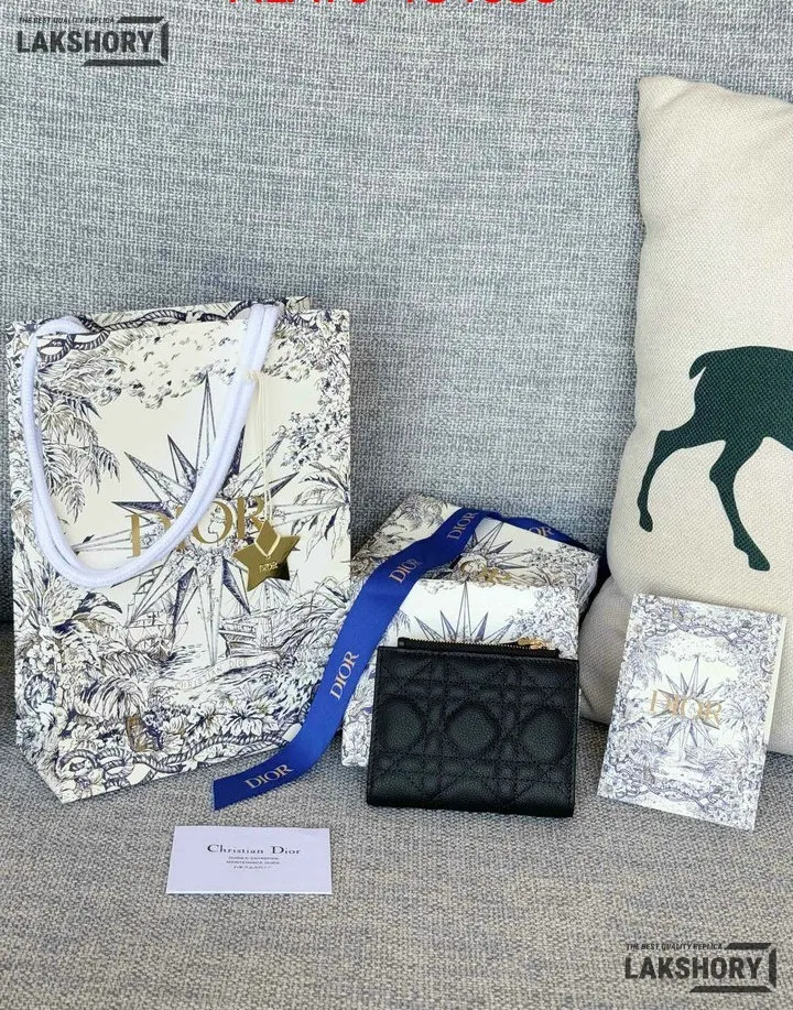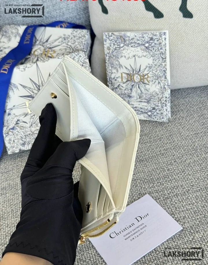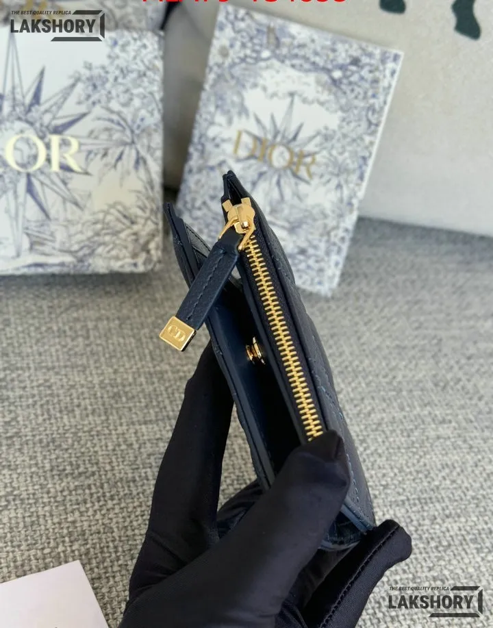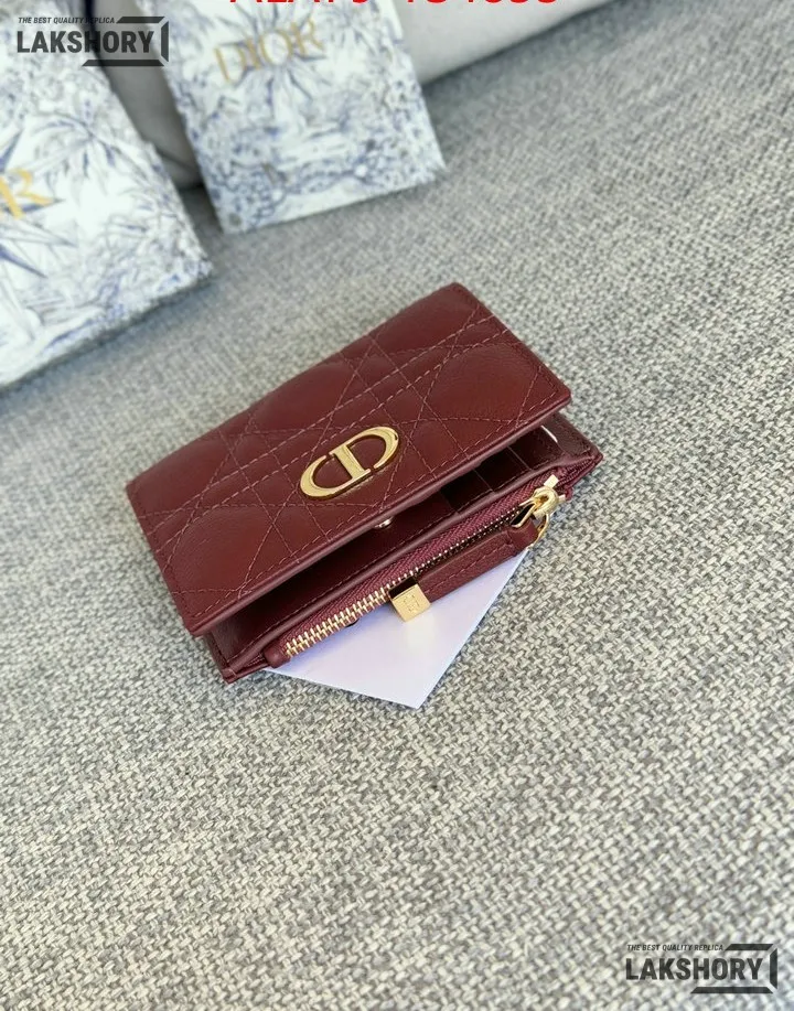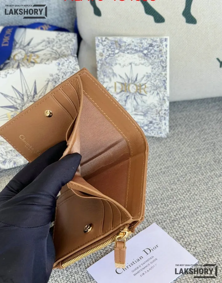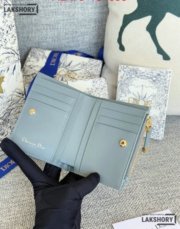 Dior 1:1 Mirror Replica Grained Calfskin Supple Cannage Caro Dahlia Wallet 11.5CM/4.5IN