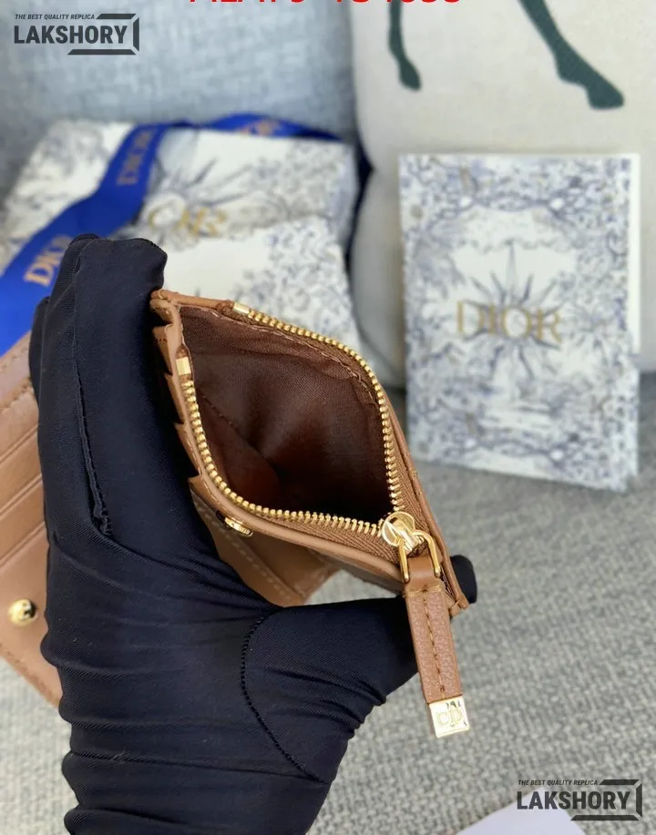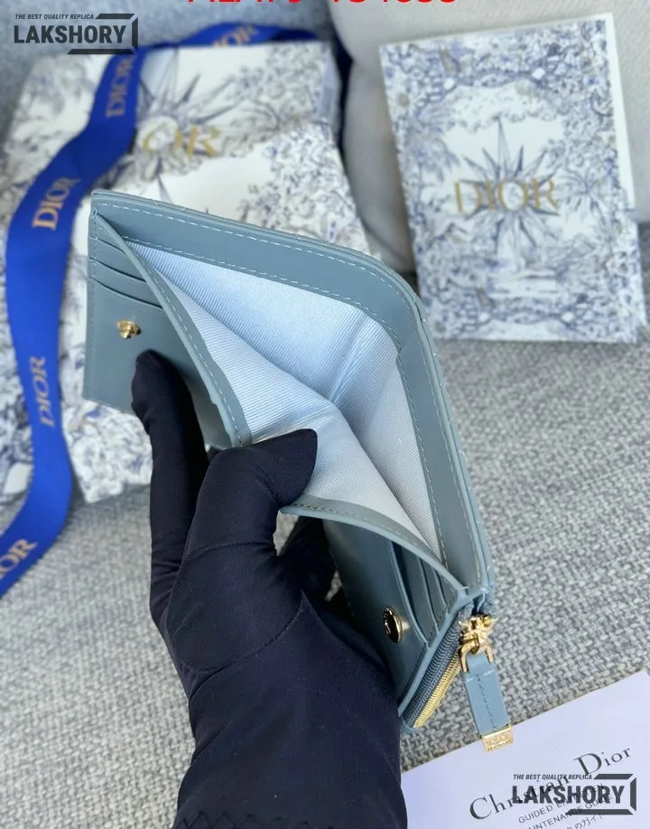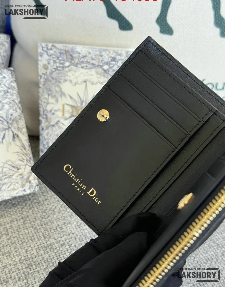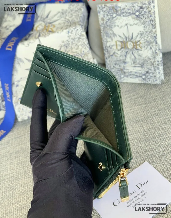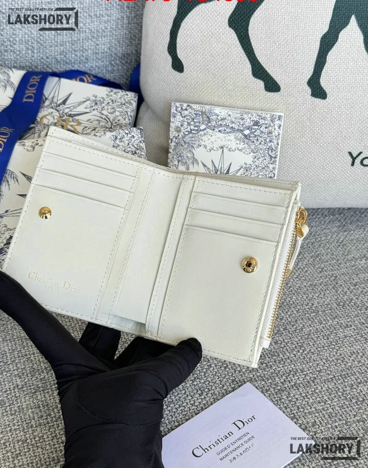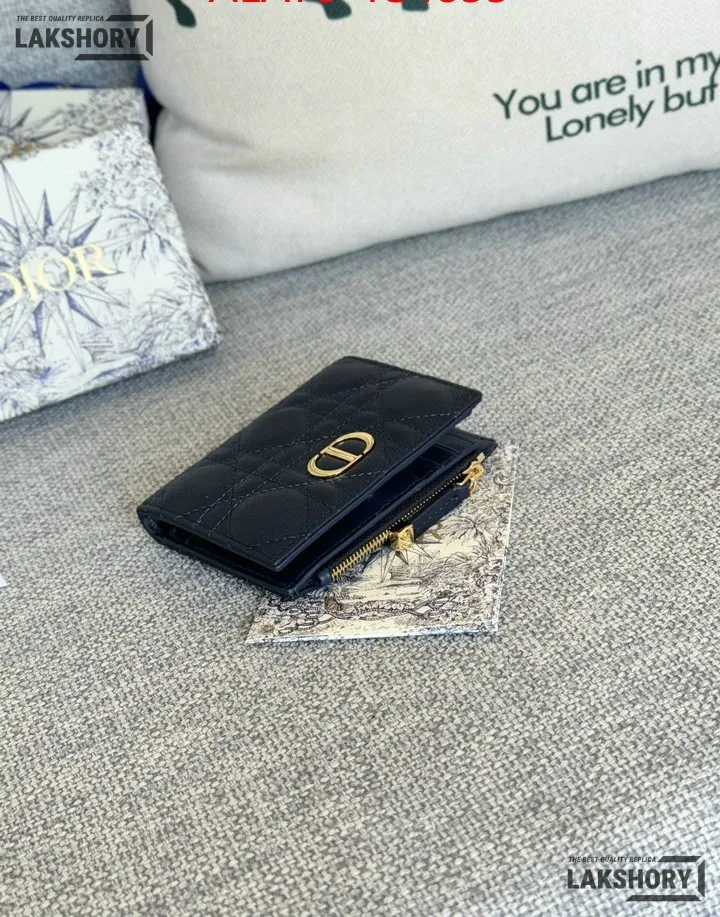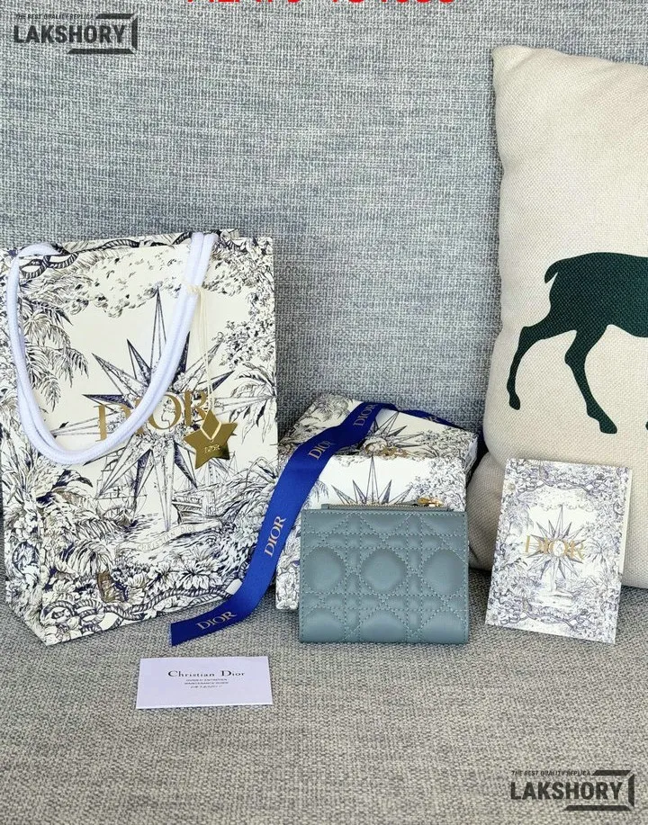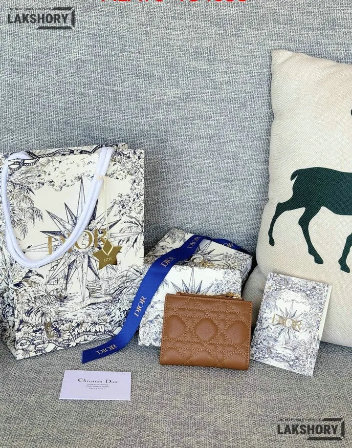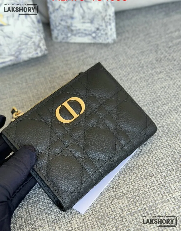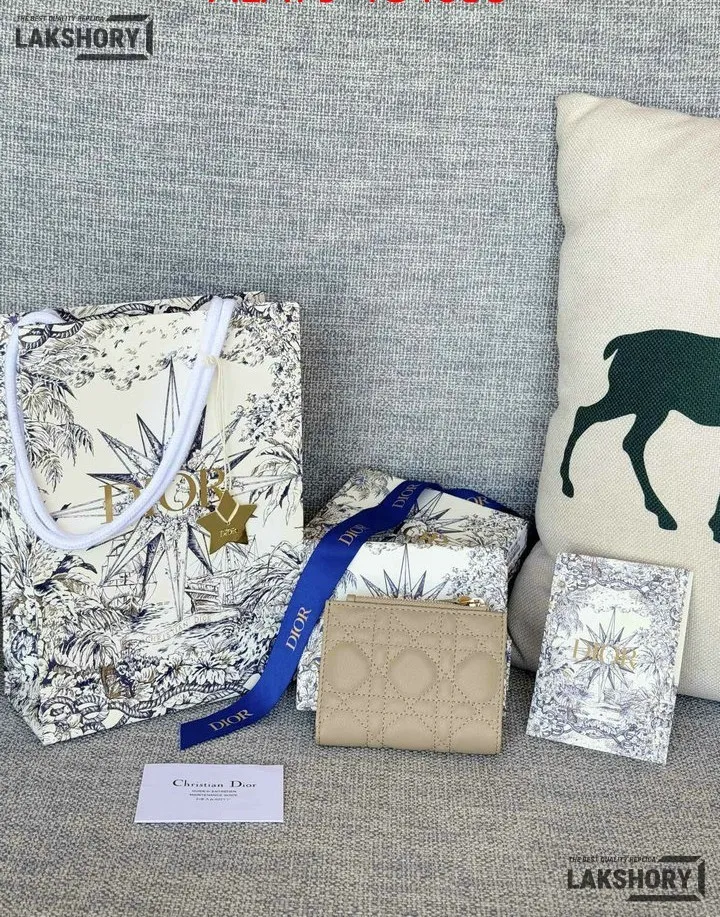 Dior 1:1 Mirror Replica Grained Calfskin Supple Cannage Caro Dahlia Wallet 11.5CM/4.5IN