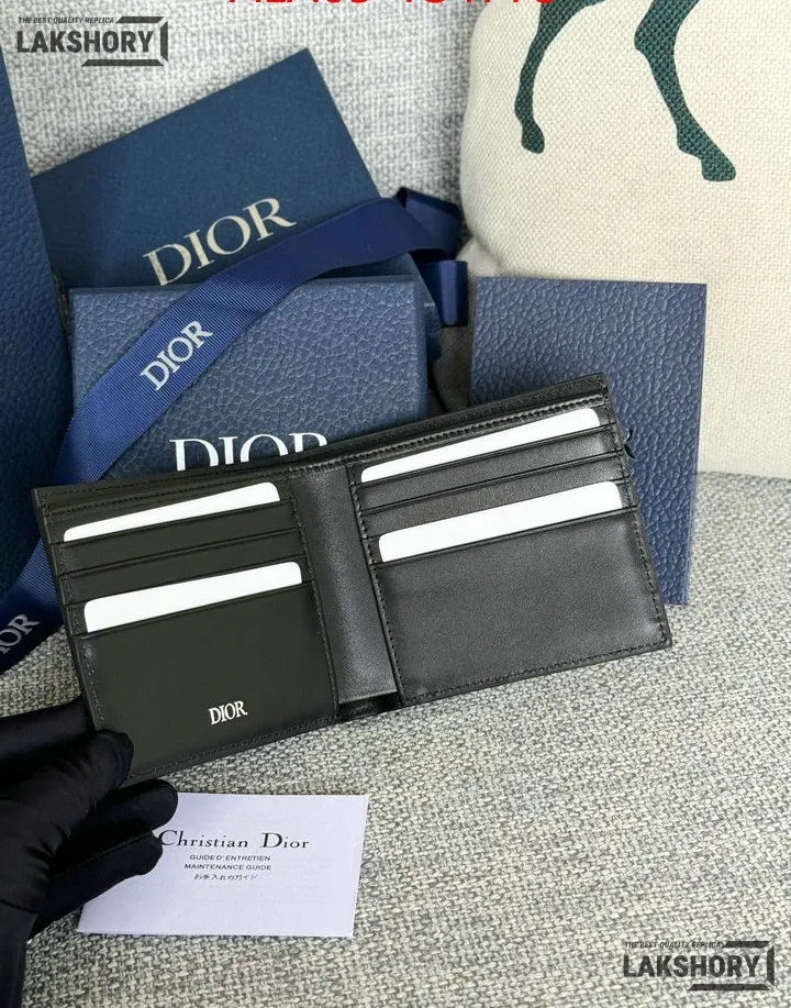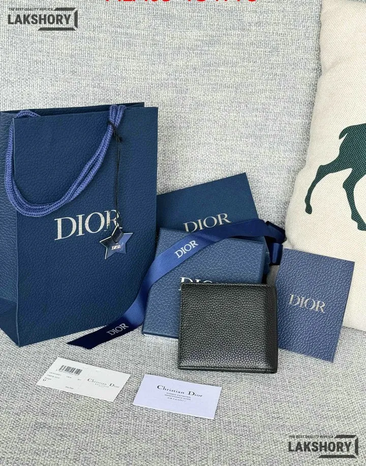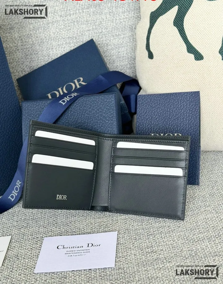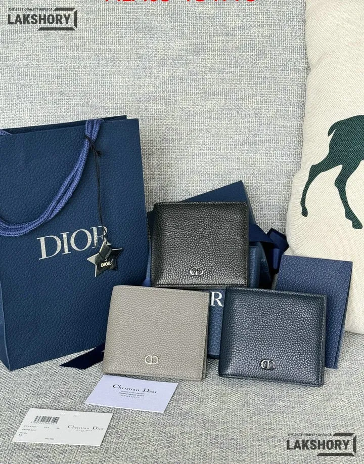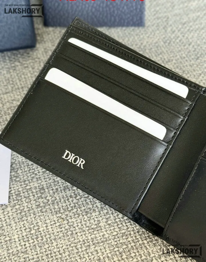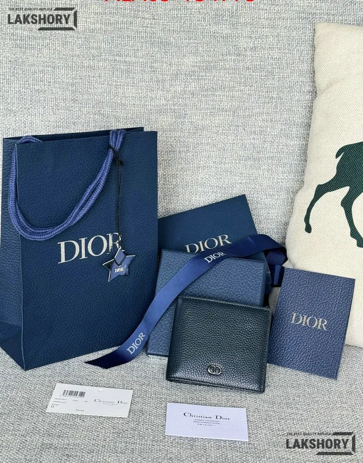 Dior 1:1 Mirror Replica Grained Leather CD Icon Bifold Wallet 9.5CM/3.7IN