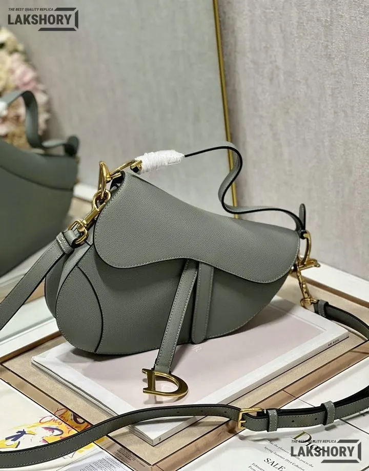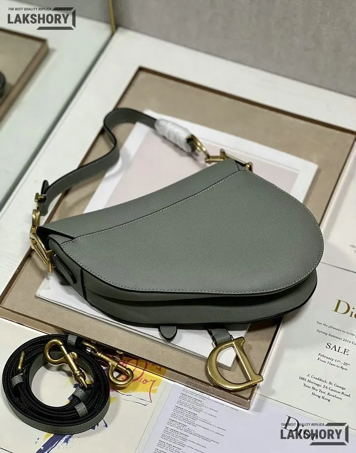 Dior 1:1 Mirror Replica Grained with Strap Grey Saddle with Strap