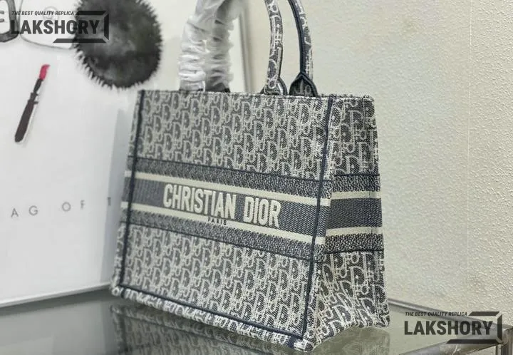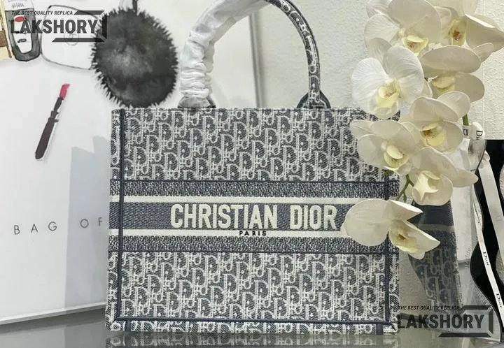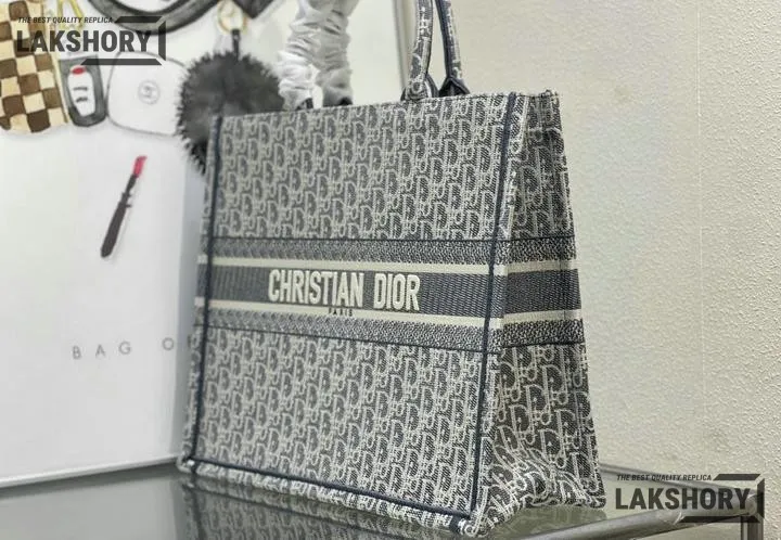 Dior 1:1 Mirror Replica Gray Dior Book Tote Oblique Embroidery