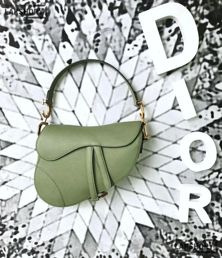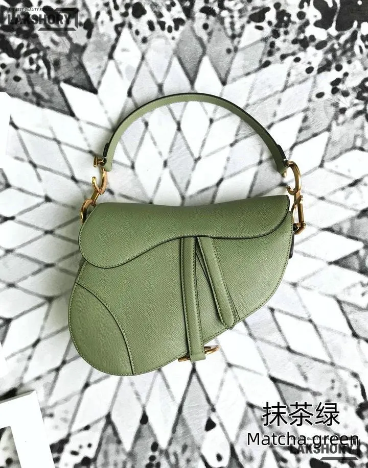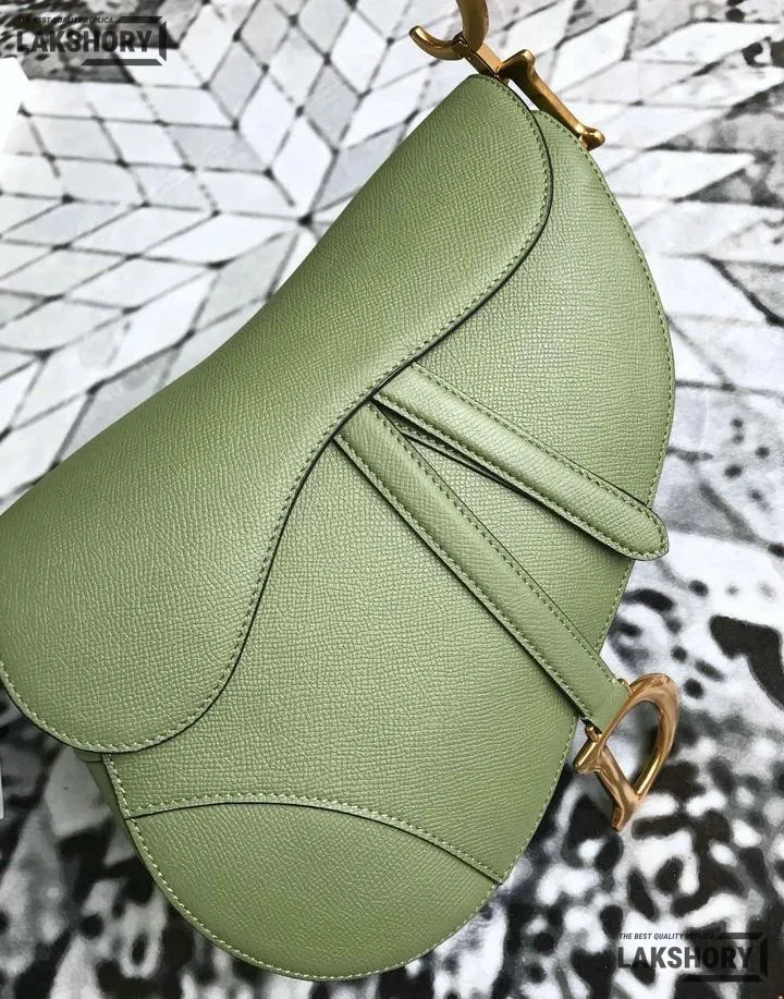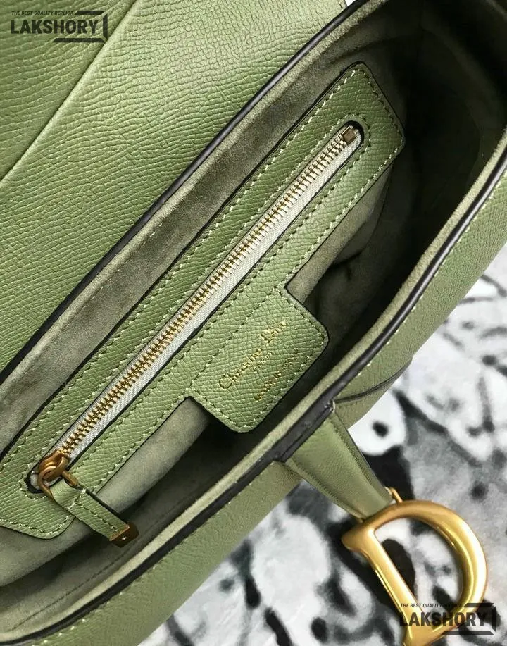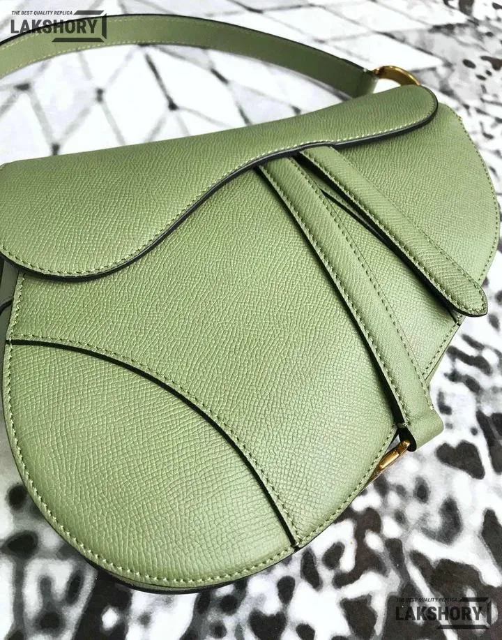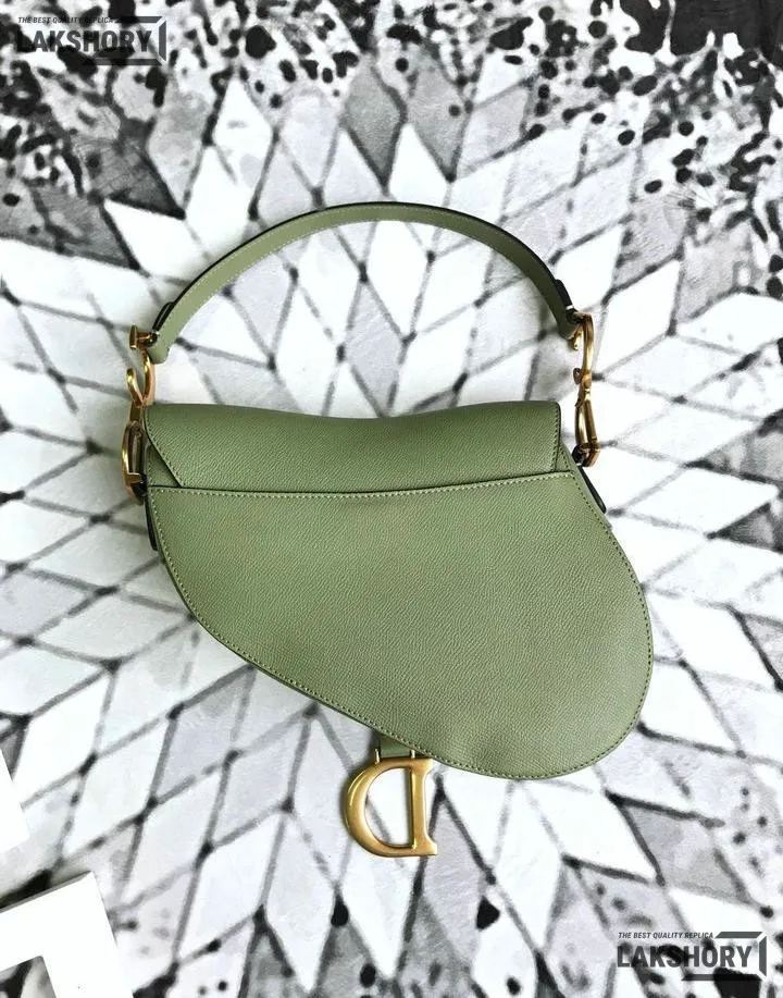 Dior 1:1 Mirror Replica Green Medium Grained Saddle 25CM/9.8IN