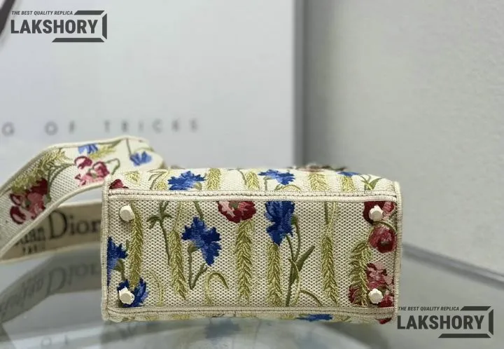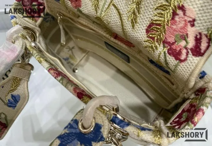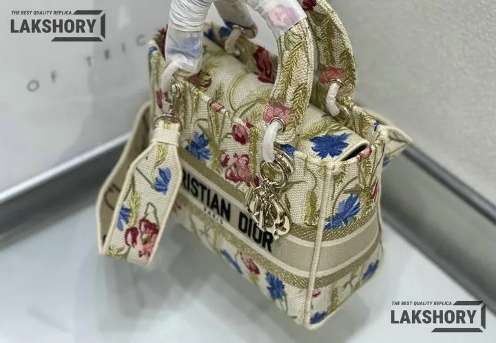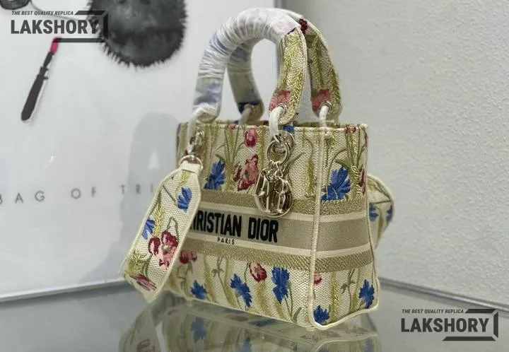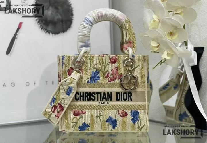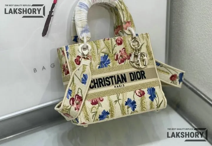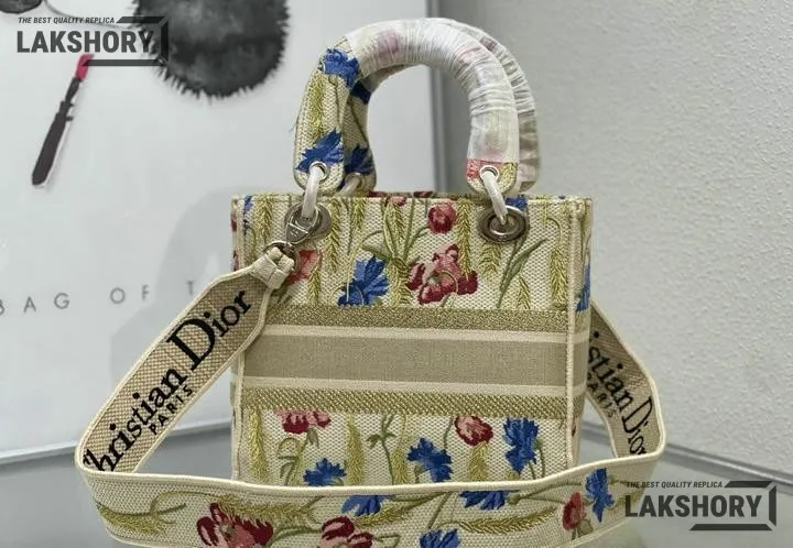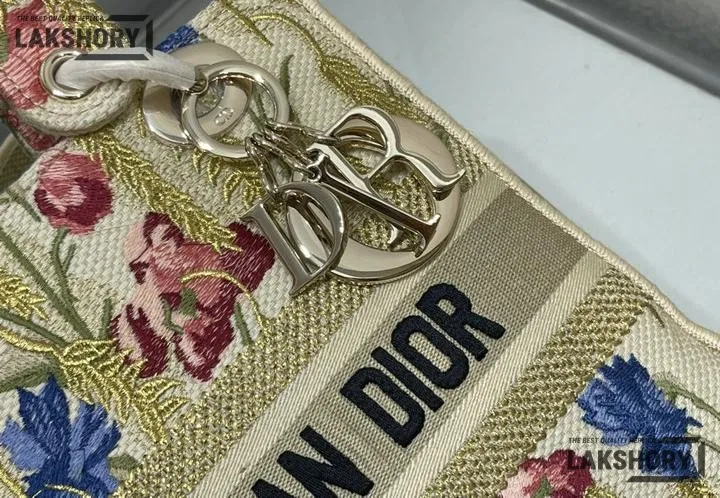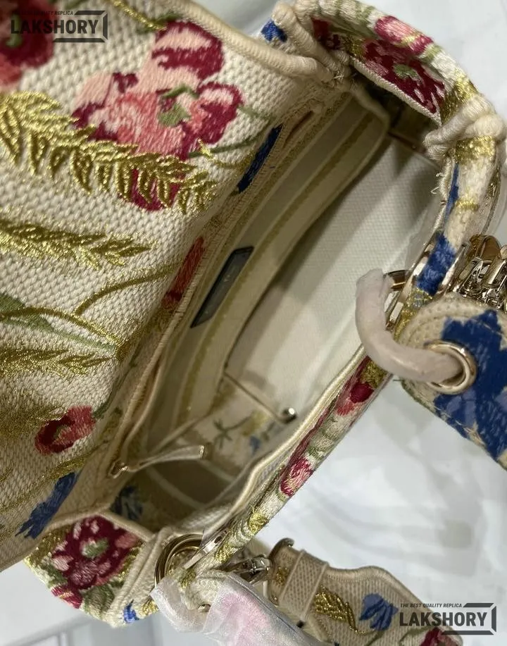 Dior 1:1 Mirror Replica Hibiscus Printed Lady D-Lite Beige Multicolor 24CM/9.4IN