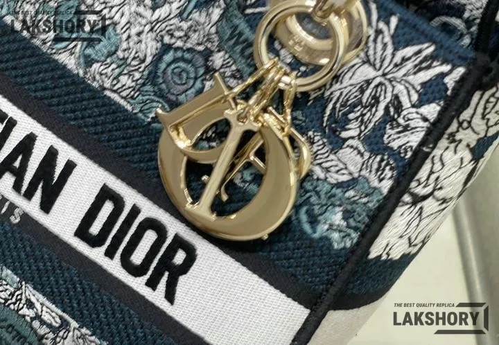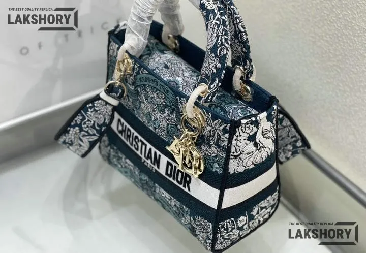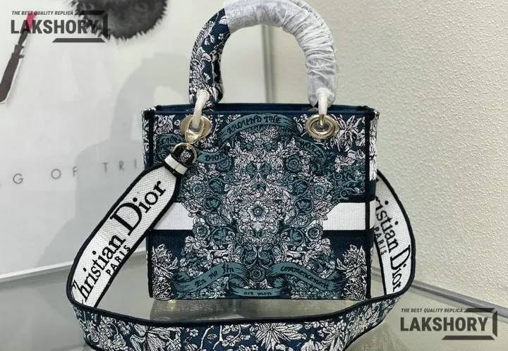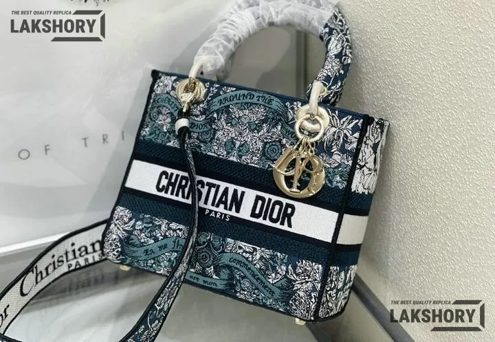 Dior 1:1 Mirror Replica Lady D-Lite Blue Around the World Motif 24CM/9.4IN