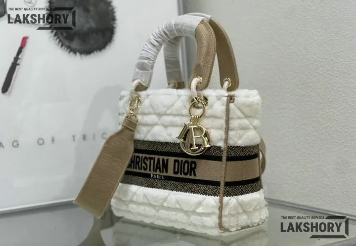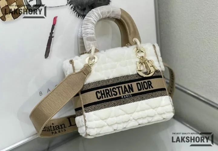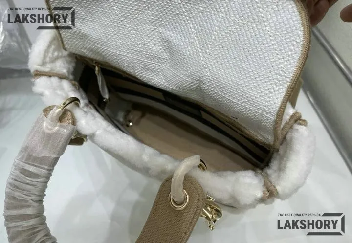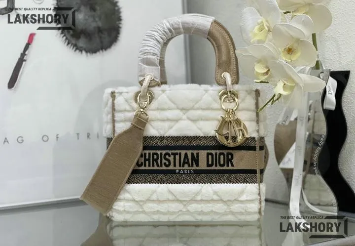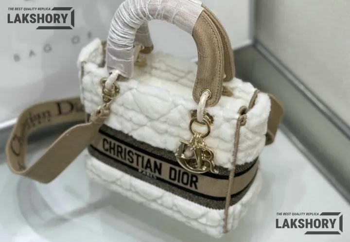 Dior 1:1 Mirror Replica Lady D-Lite Ecru Cannage Shearling 24CM/9.4IN