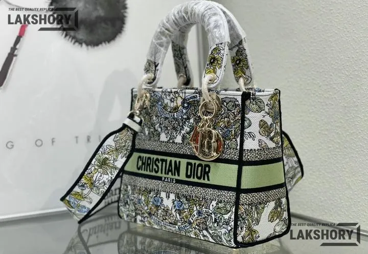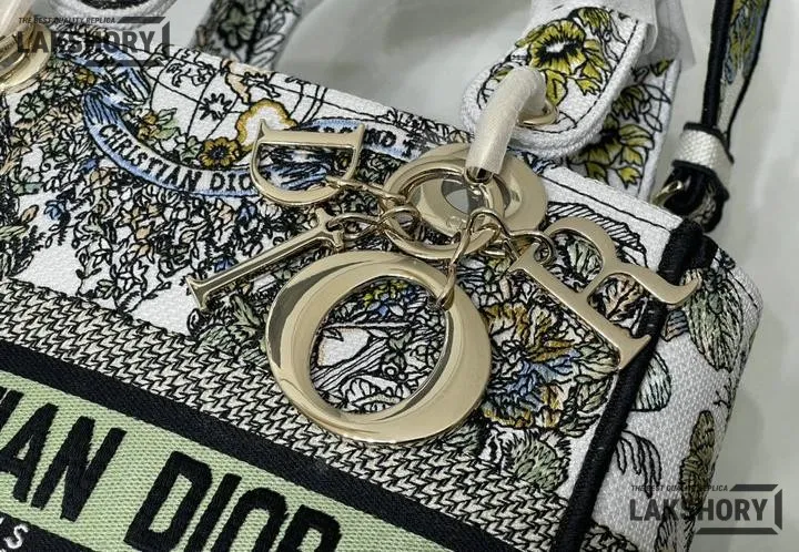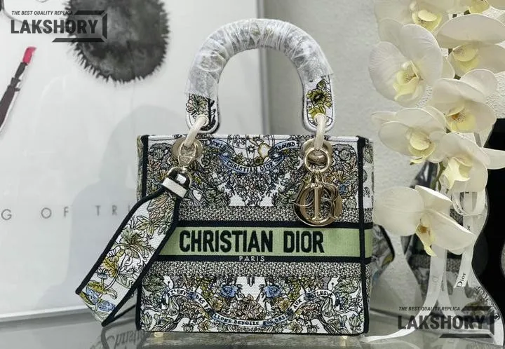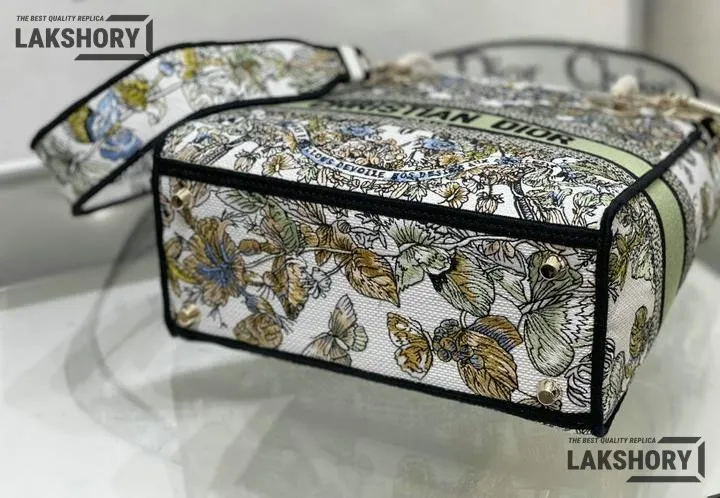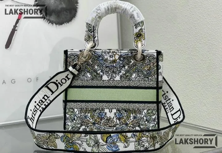 Dior 1:1 Mirror Replica Lady D-Lite Embroidery Green Butterfly 24CM/9.4IN