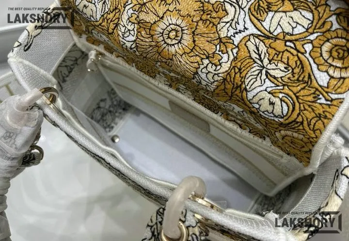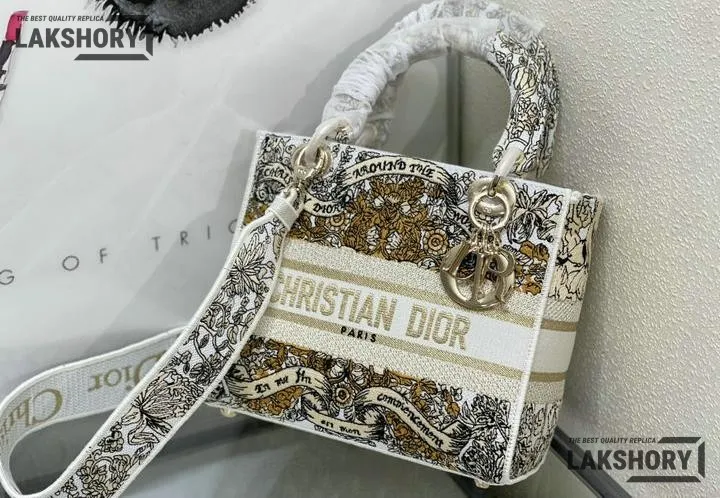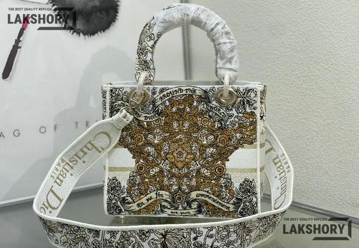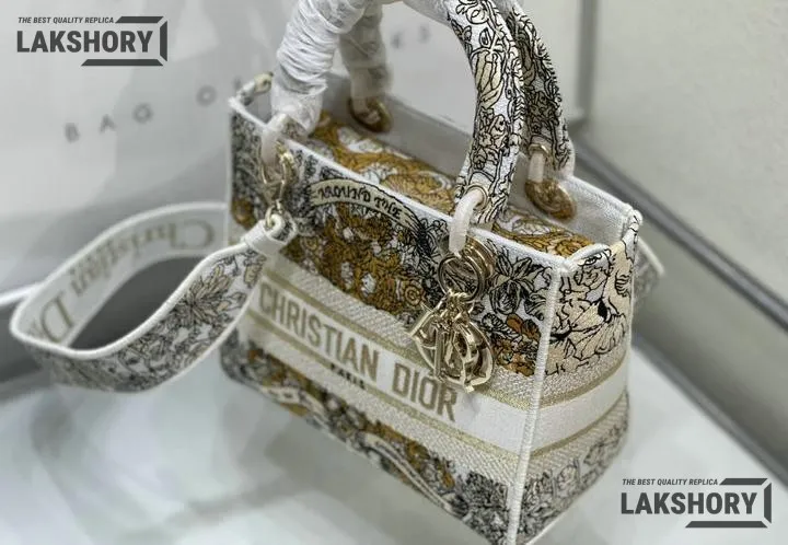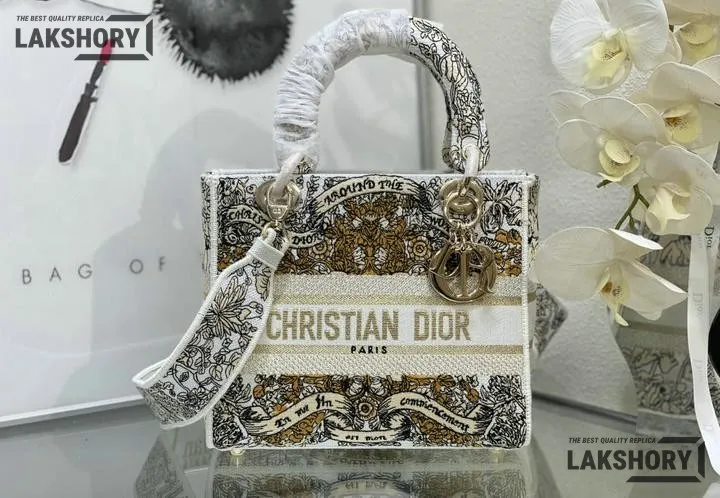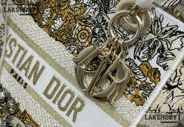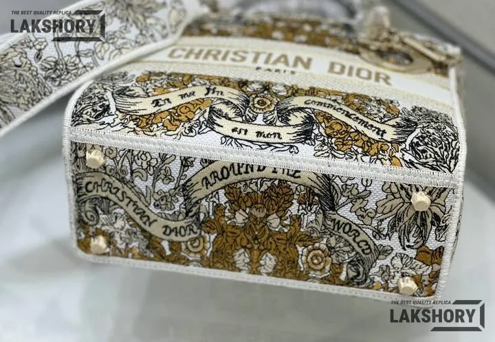 Dior 1:1 Mirror Replica Lady D-Lite Latte Around the World Motif 24CM/9.4IN