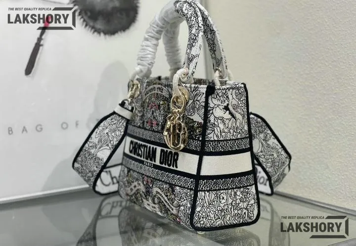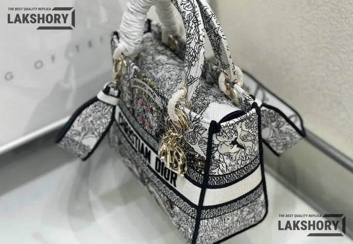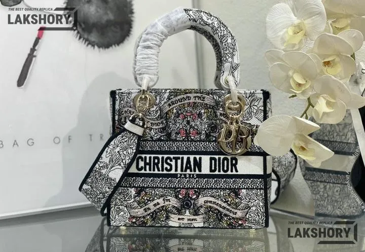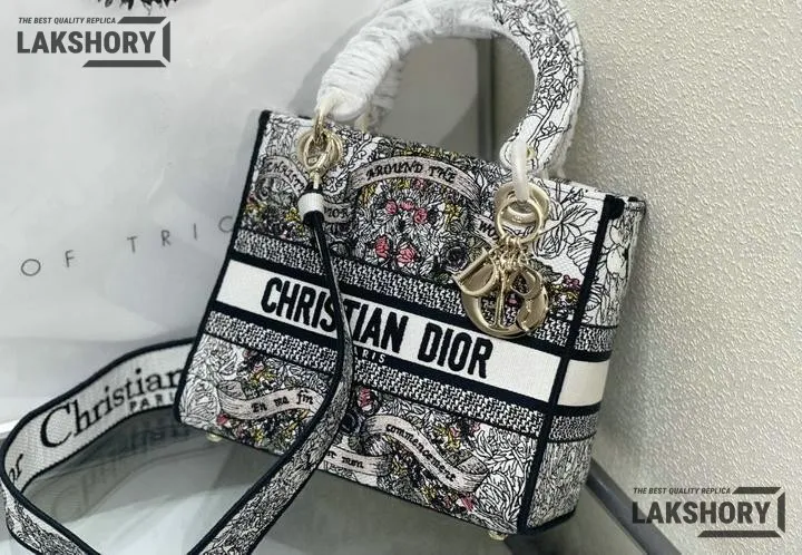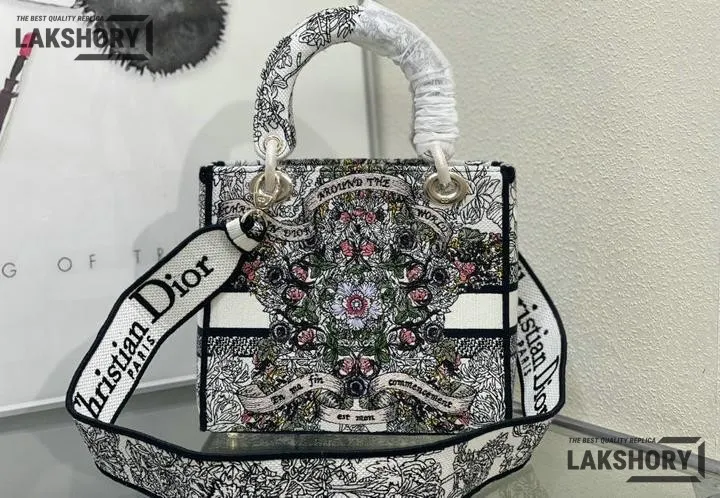 Dior 1:1 Mirror Replica Lady D-Lite Latte Multicolor Around the World 24CM/9.4IN