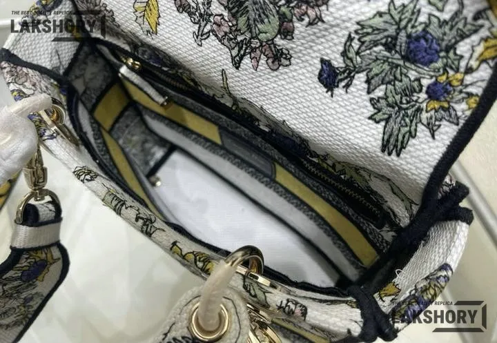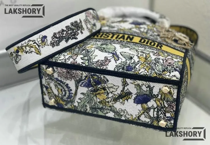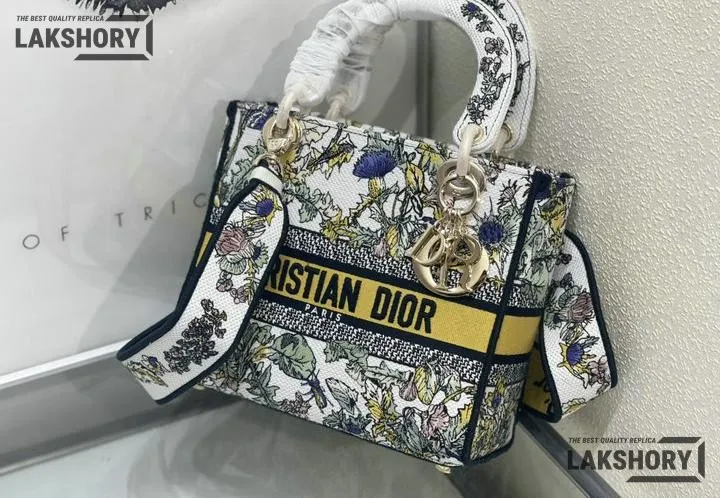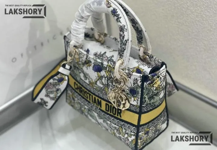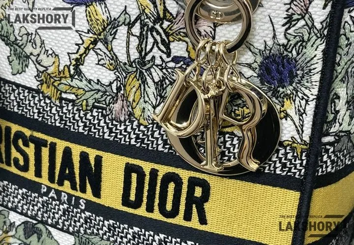 Dior 1:1 Mirror Replica Lady D-Lite Latte Yellow Chardons Motif 24CM/9.4IN