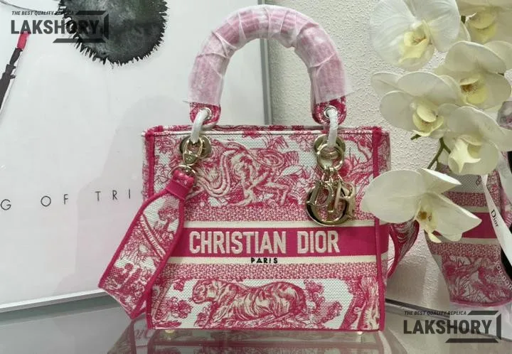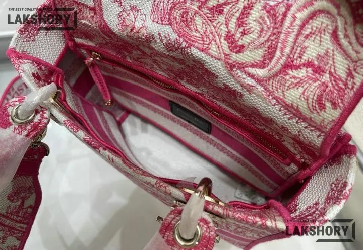 Dior 1:1 Mirror Replica Lady D-Lite Toile De Jouy Reverse Red 24CM/9.4IN