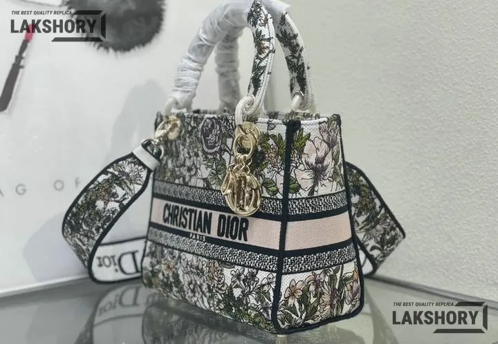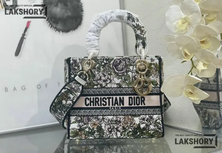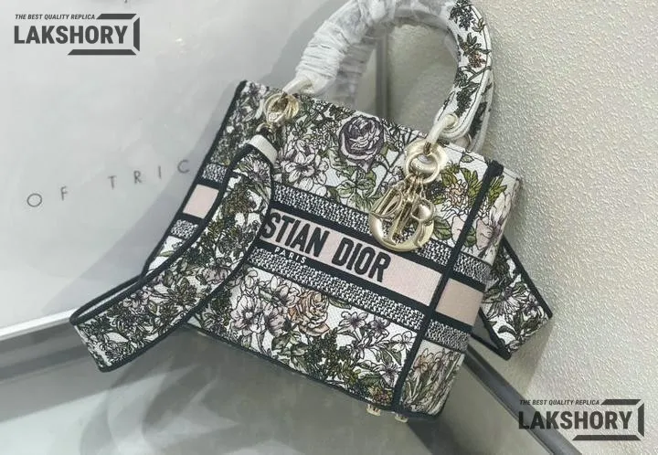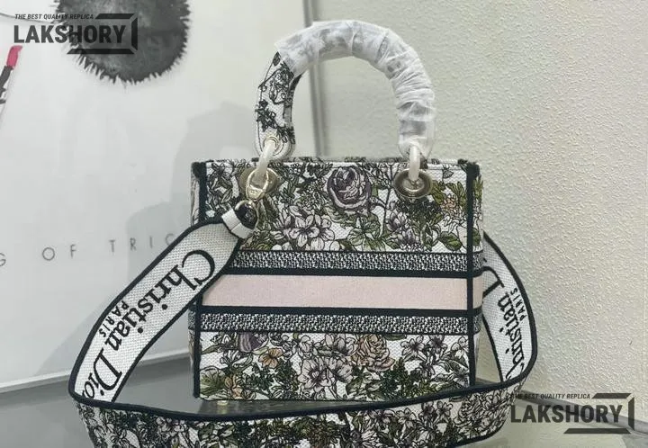 Dior 1:1 Mirror Replica Lady D-Lite White Multicolor D-Floral 24CM/9.4IN
