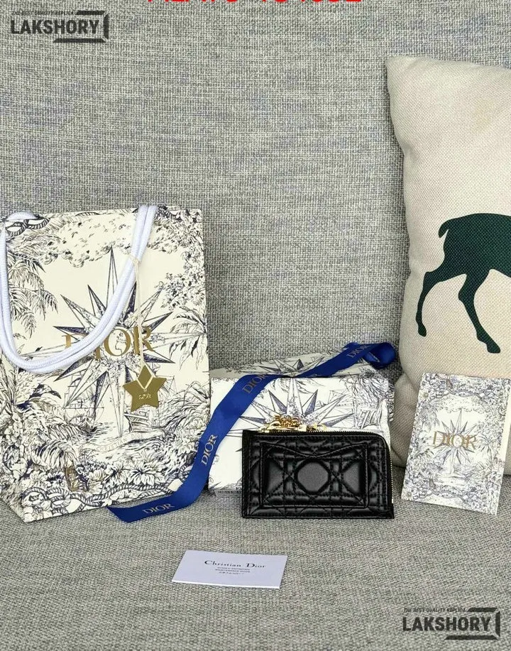 Dior 1:1 Mirror Replica Lady Dior Cosmos Zipped Card Holder 13.5CM/5.3IN