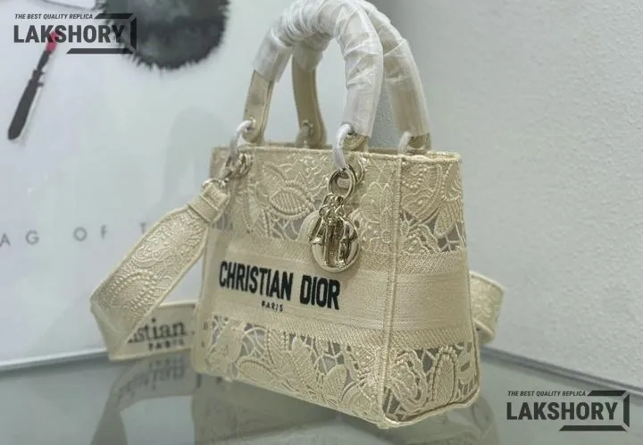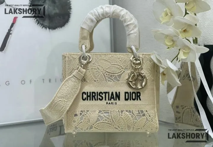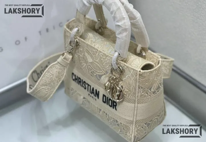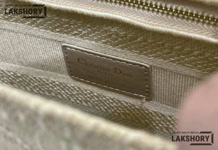 Dior 1:1 Mirror Replica Lady dior D-Lite Embroidered Beige 24CM/9.4IN