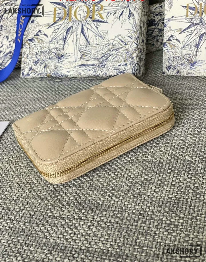 Dior 1:1 Mirror Replica Lady Dior Voyageur Zip Coin Case Purse 8.5CM/3.3IN