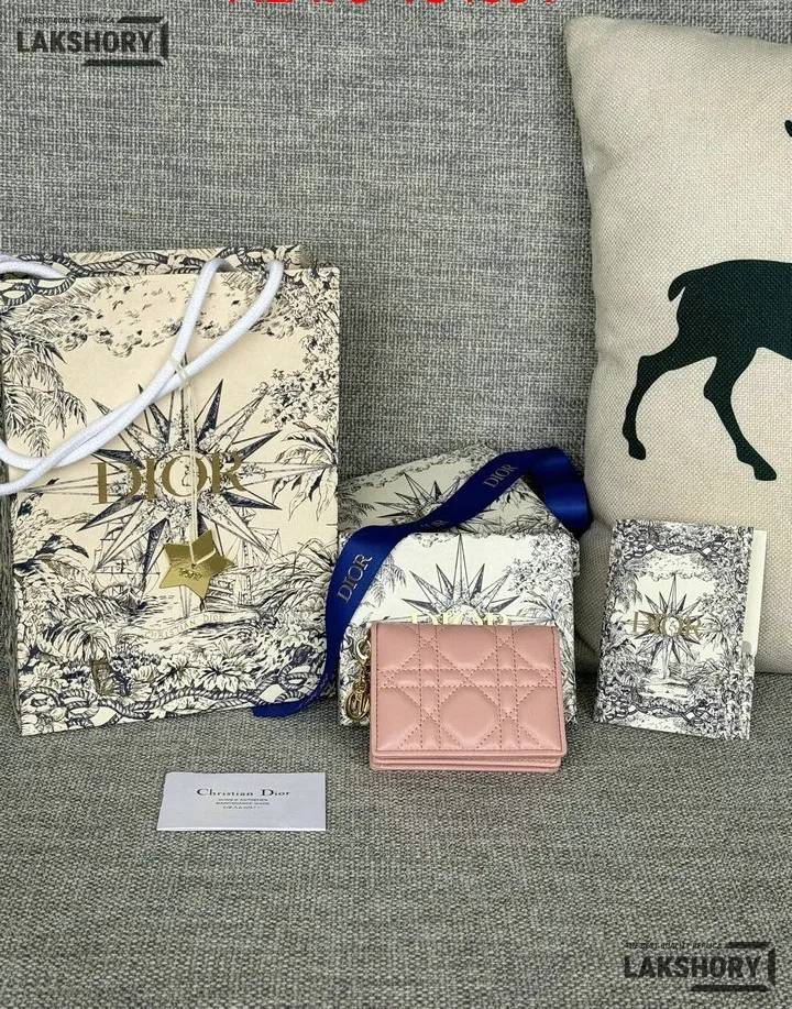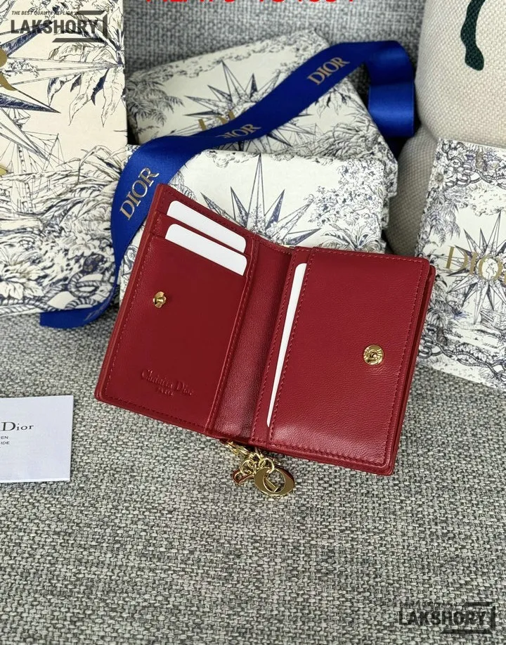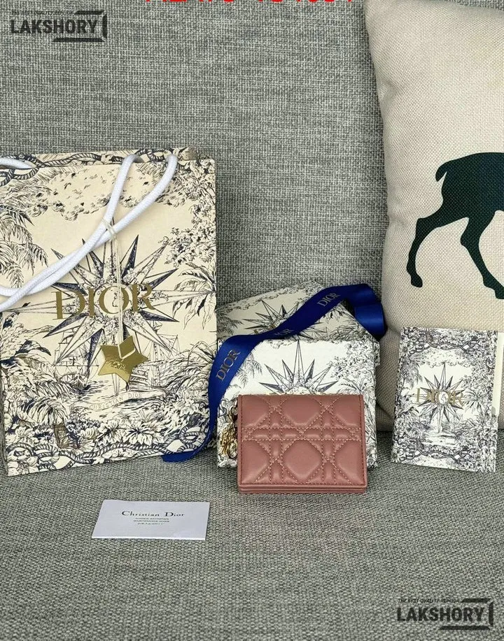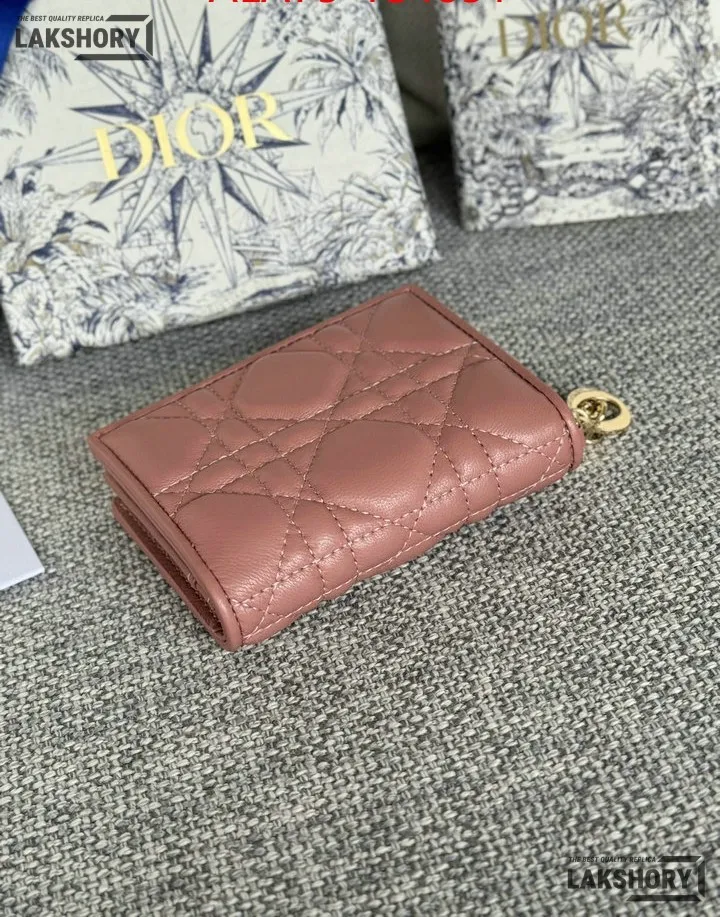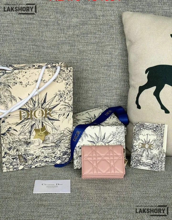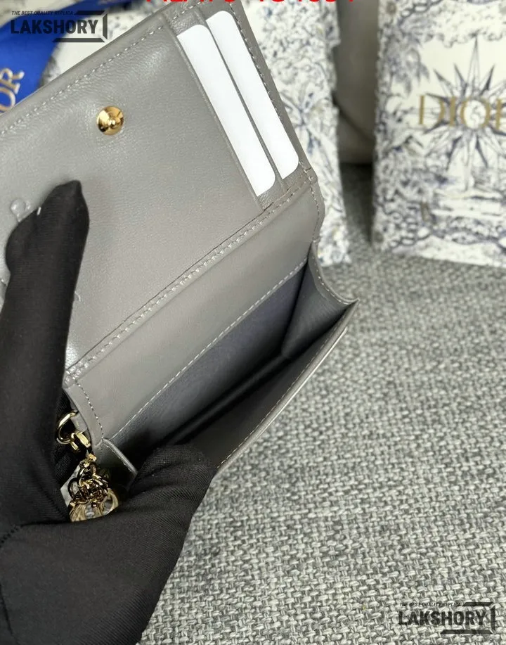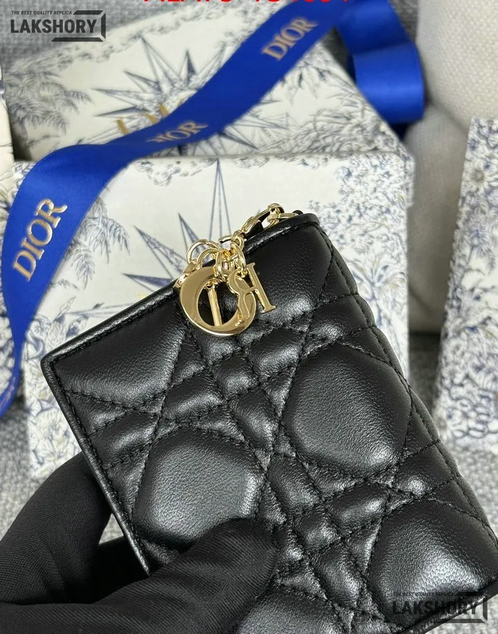 Dior 1:1 Mirror Replica Lambskin Cannage Mini Lady Dior Wallet 10.5CM/4.1IN