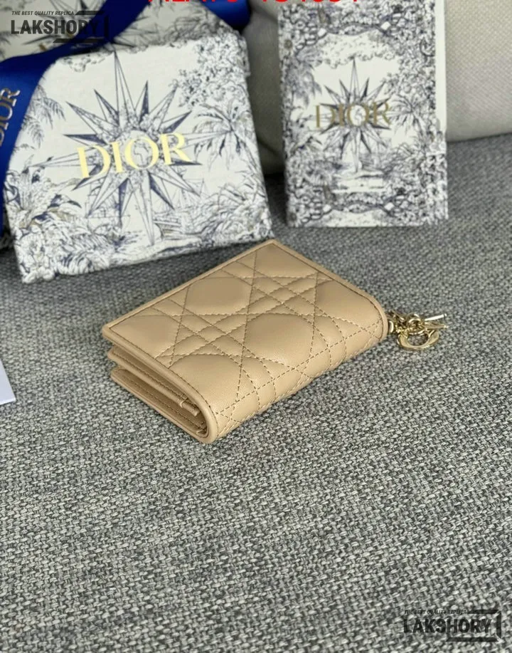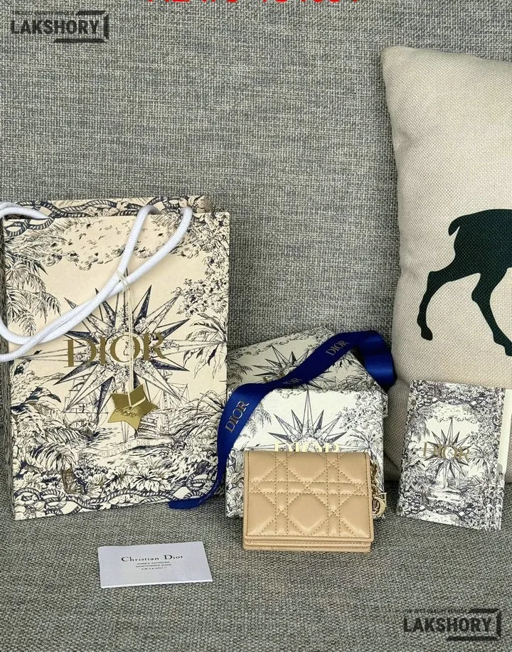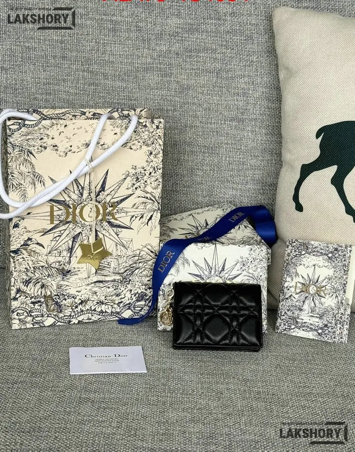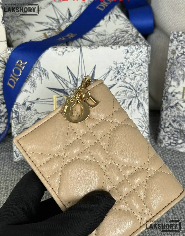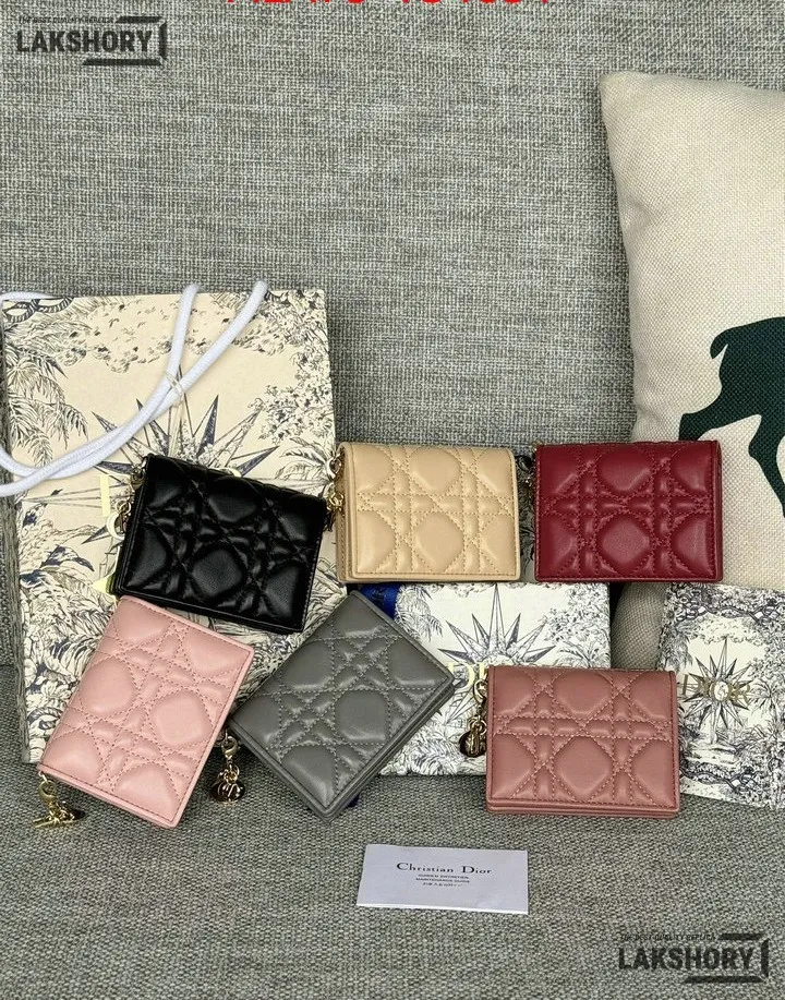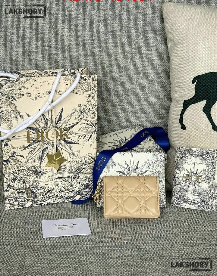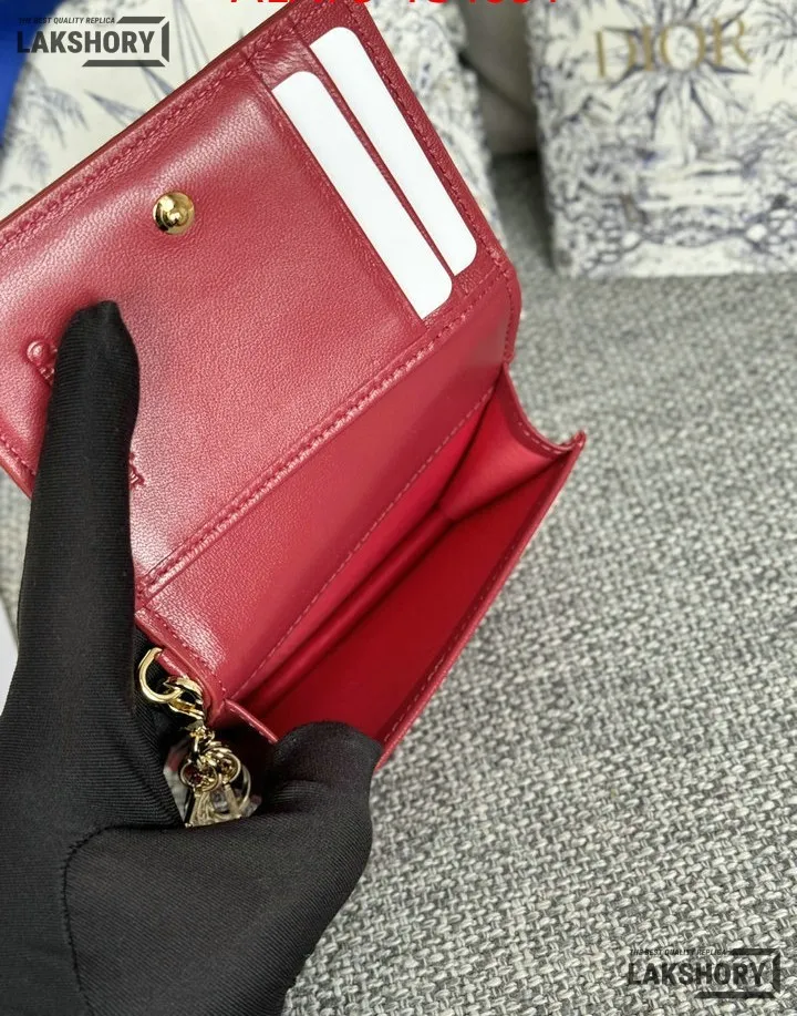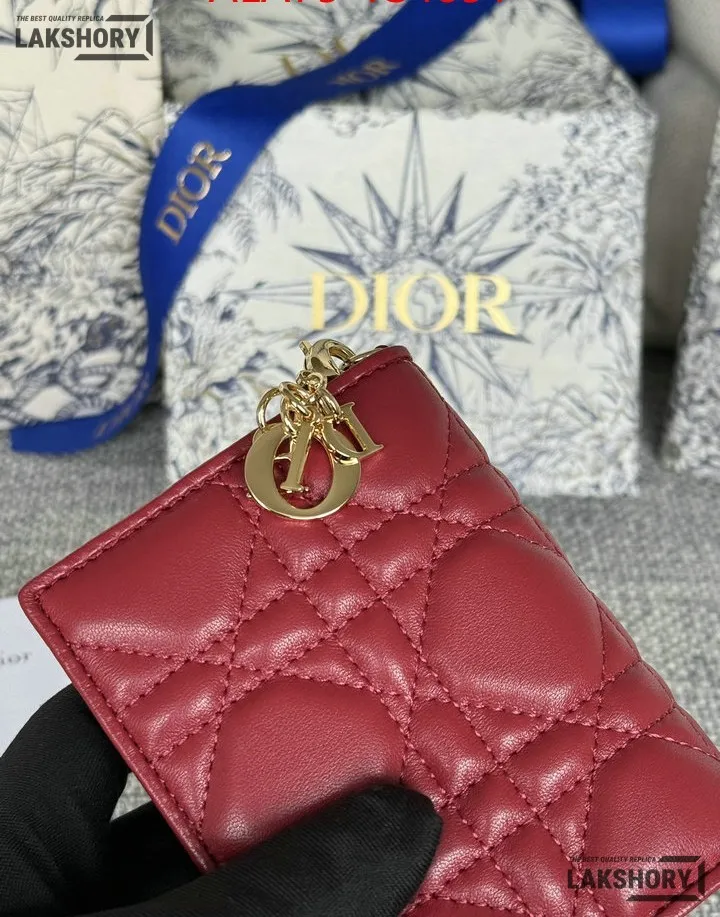 Dior 1:1 Mirror Replica Lambskin Cannage Mini Lady Dior Wallet 10.5CM/4.1IN