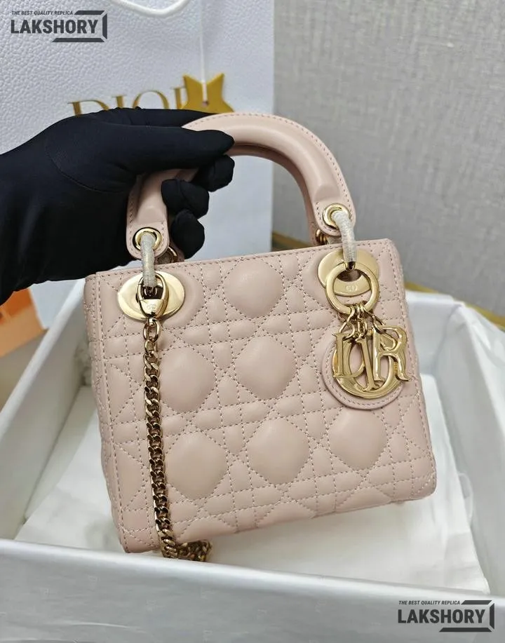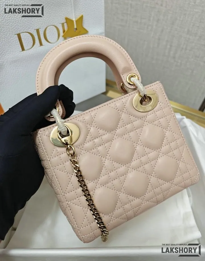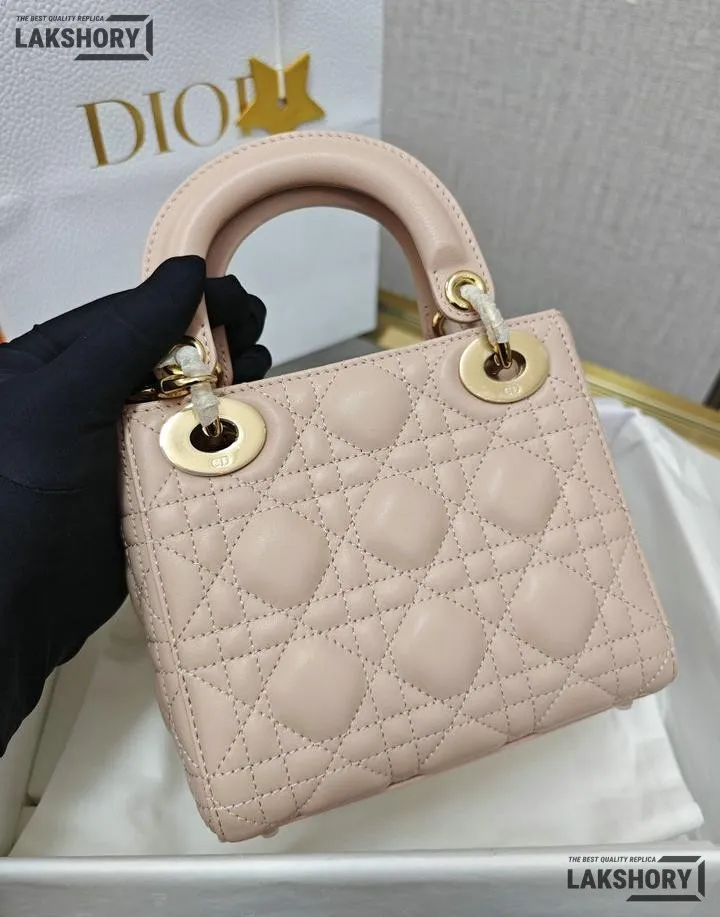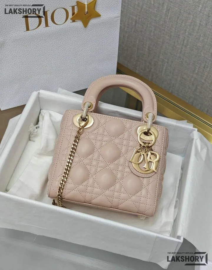 Dior 1:1 Mirror Replica Lambskin Powder Pink Mini Lady Dior 17CM/6.7IN