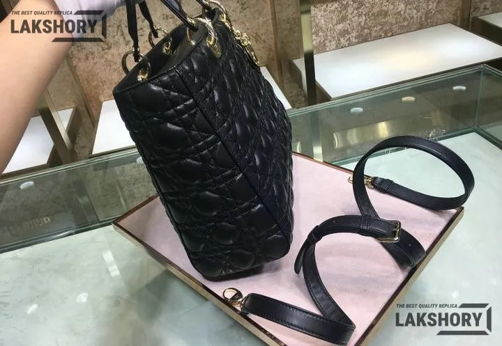 Dior 1:1 Mirror Replica Large Lady Dior Black Cannage 32CM/12.6IN