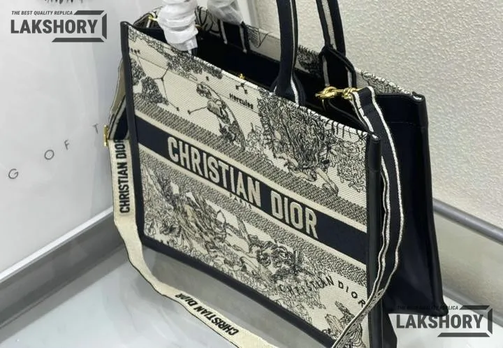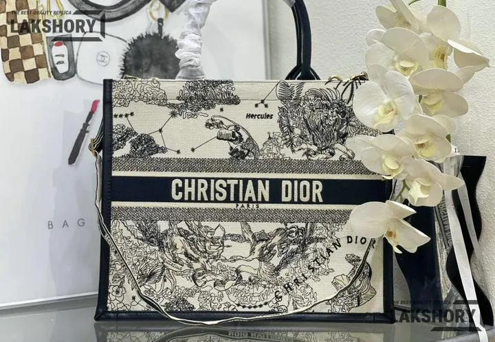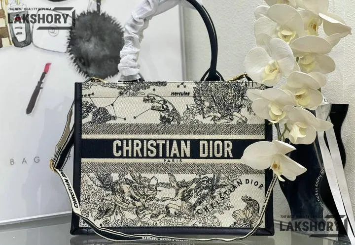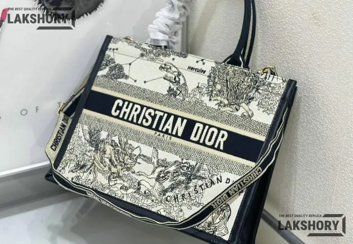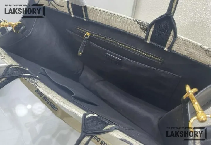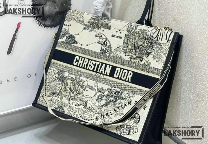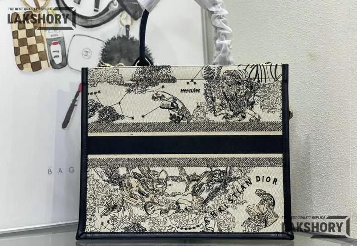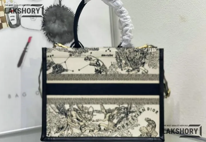 Dior 1:1 Mirror Replica Latte/Black Toile de Jouy Zodiac Book Tote