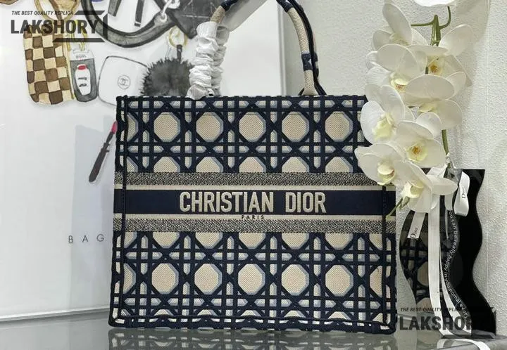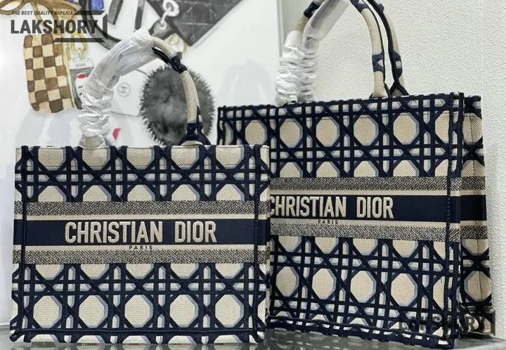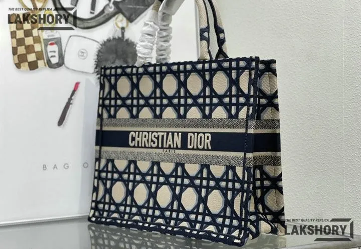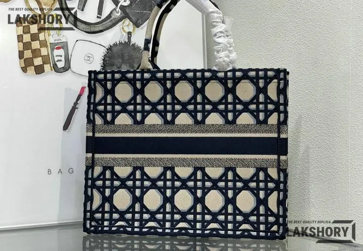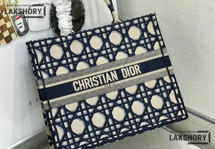 Dior 1:1 Mirror Replica Macrocannage Book Tote Beige Blue 42CM/16.5IN
