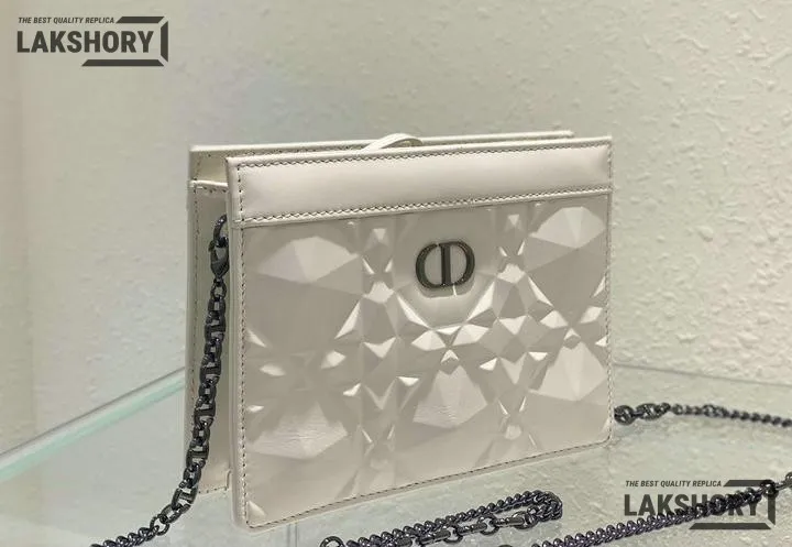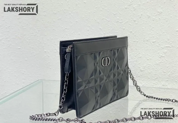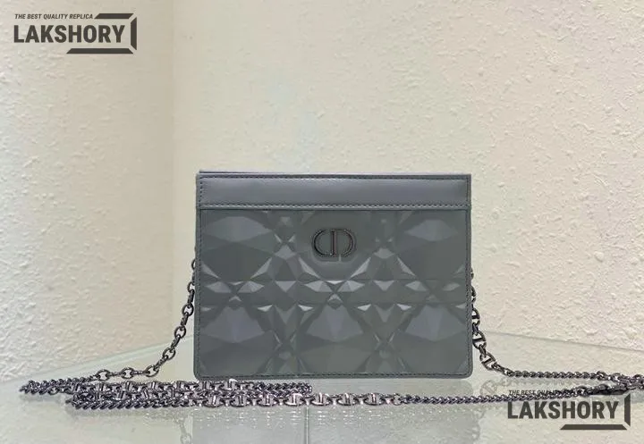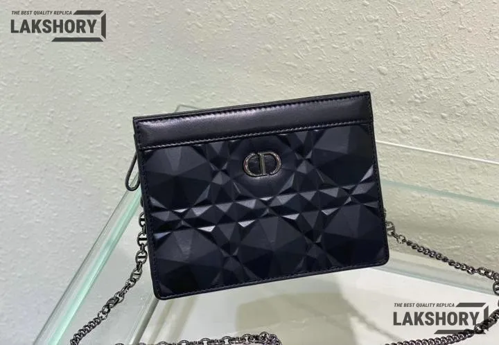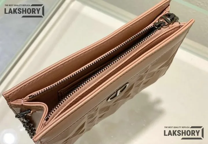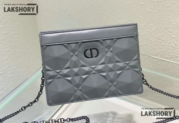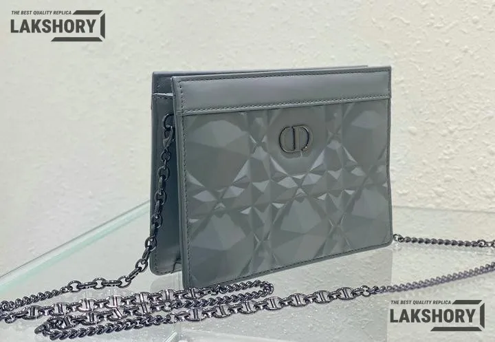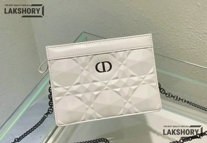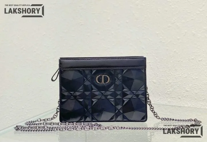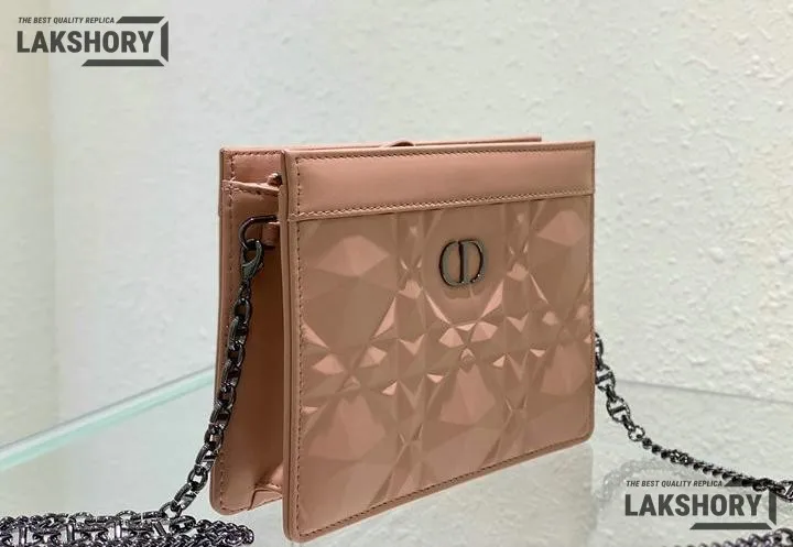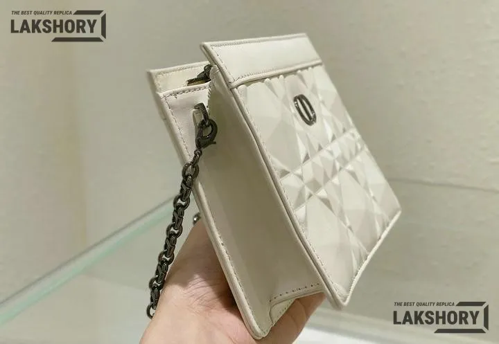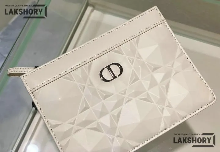 Dior 1:1 Mirror Replica Macrocannage Calfskin Zipped Pouch Diamond Caro