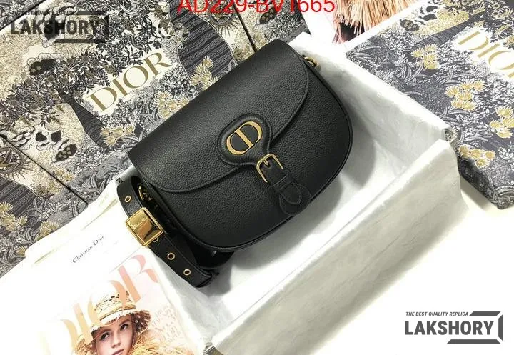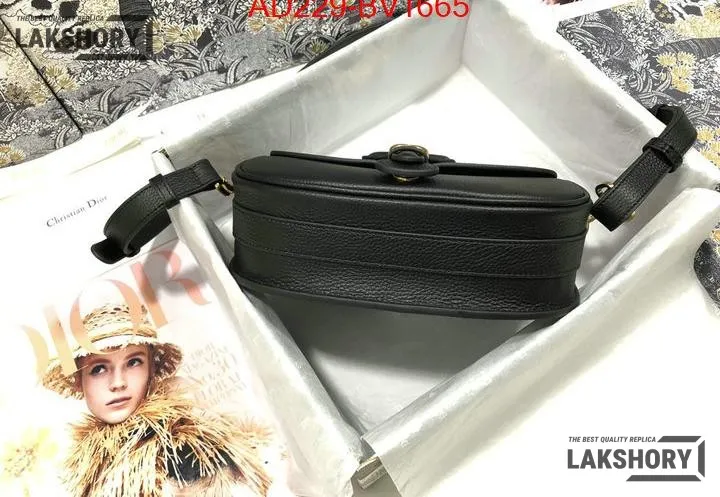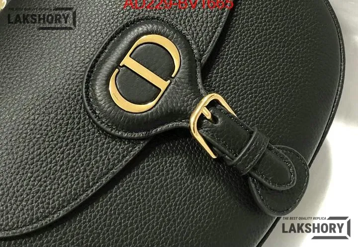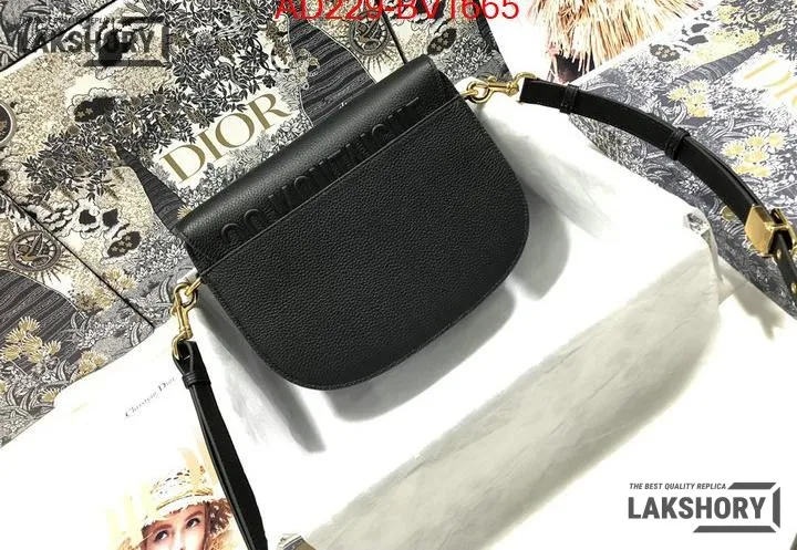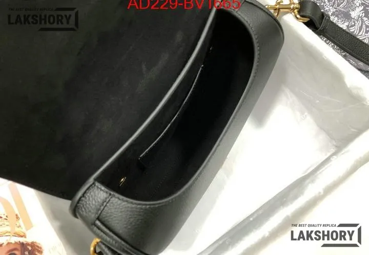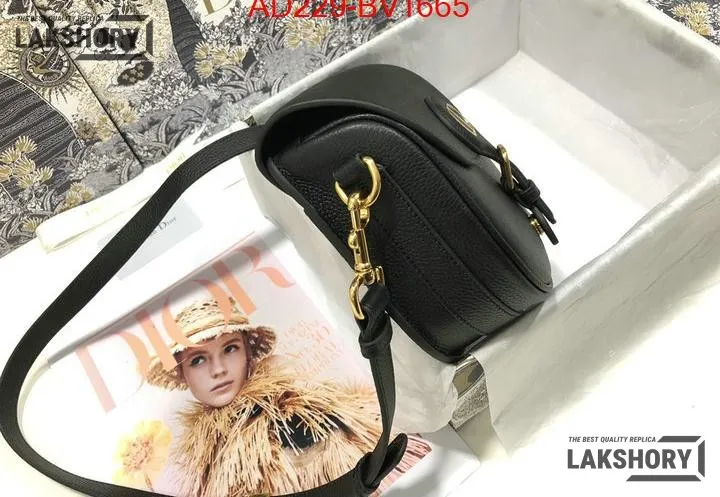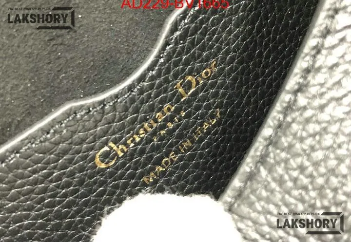Dior 1:1 Mirror Replica Medium Black Grained Calfskin Bobby Flap 22CM/8.7IN
