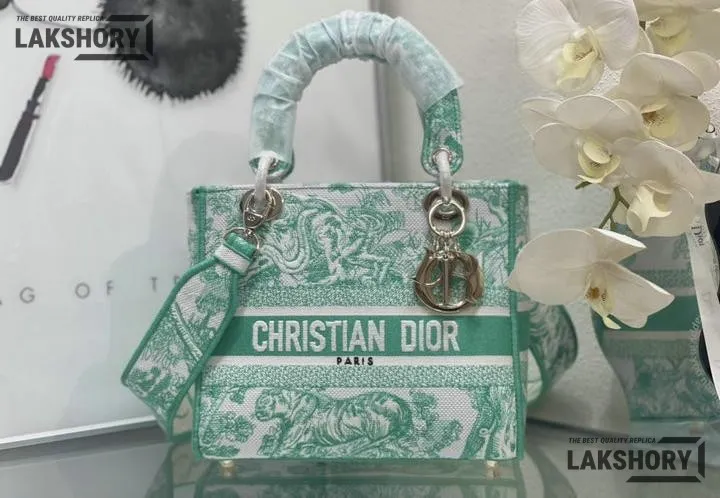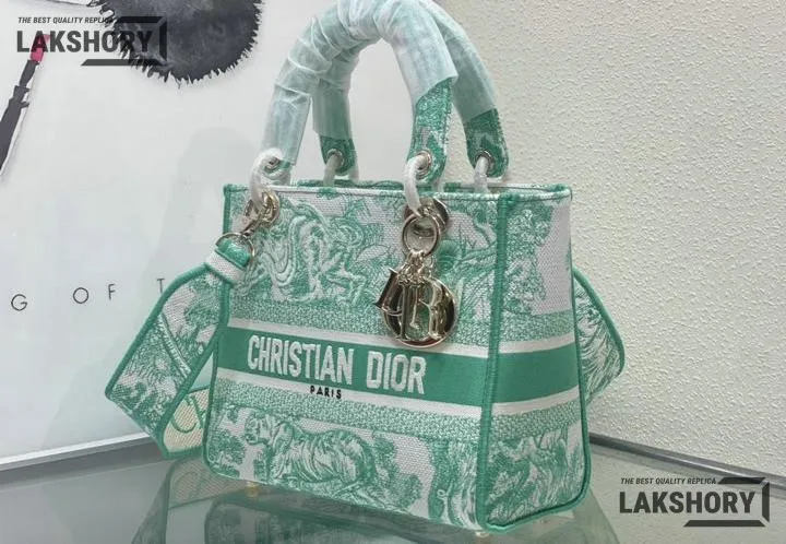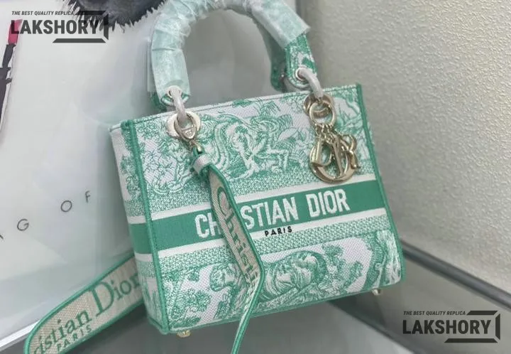 Dior 1:1 Mirror Replica Medium Dioriviera Lady D-Lite Green 24CM/9.4IN