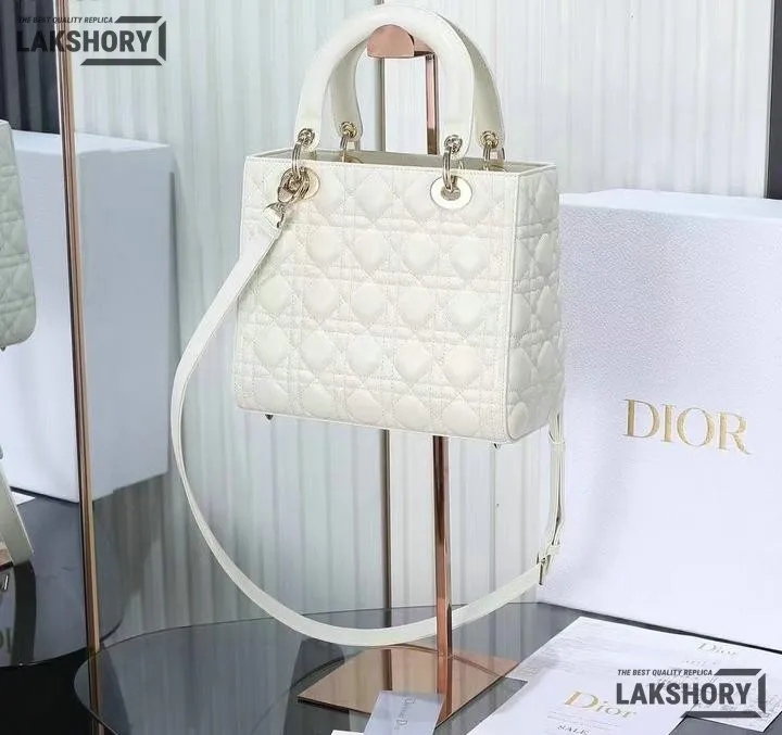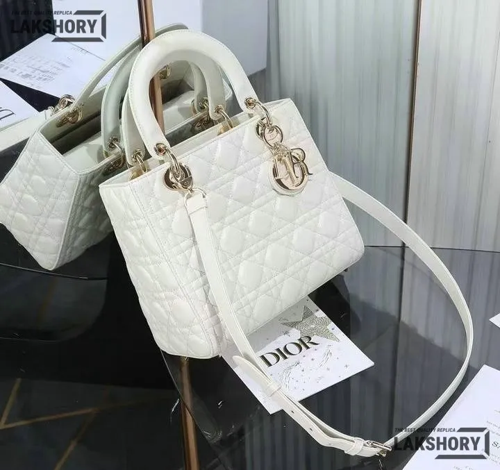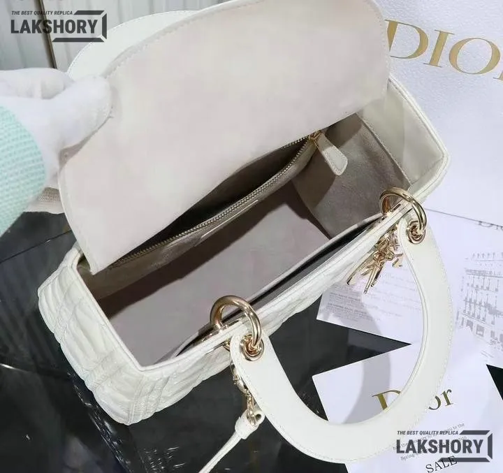 Dior 1:1 Mirror Replica Medium Lambskin White Lady Dior 24CM/9.4IN