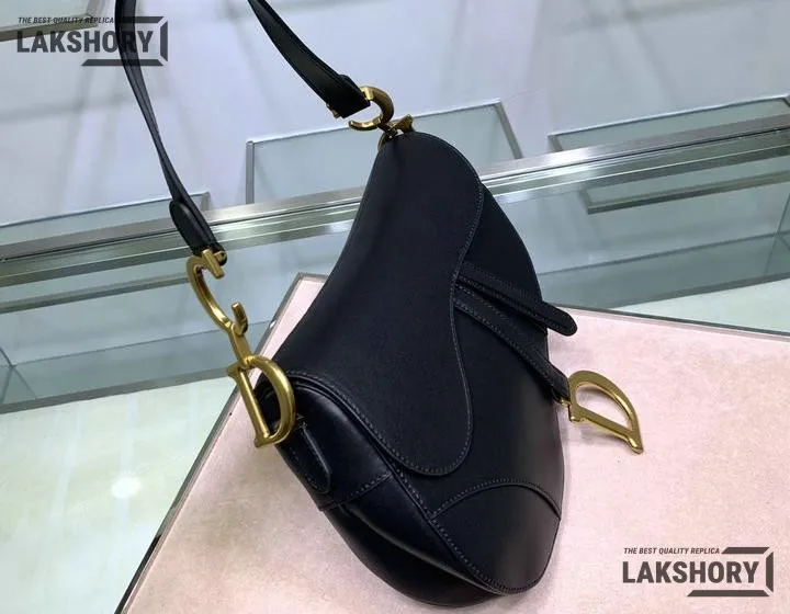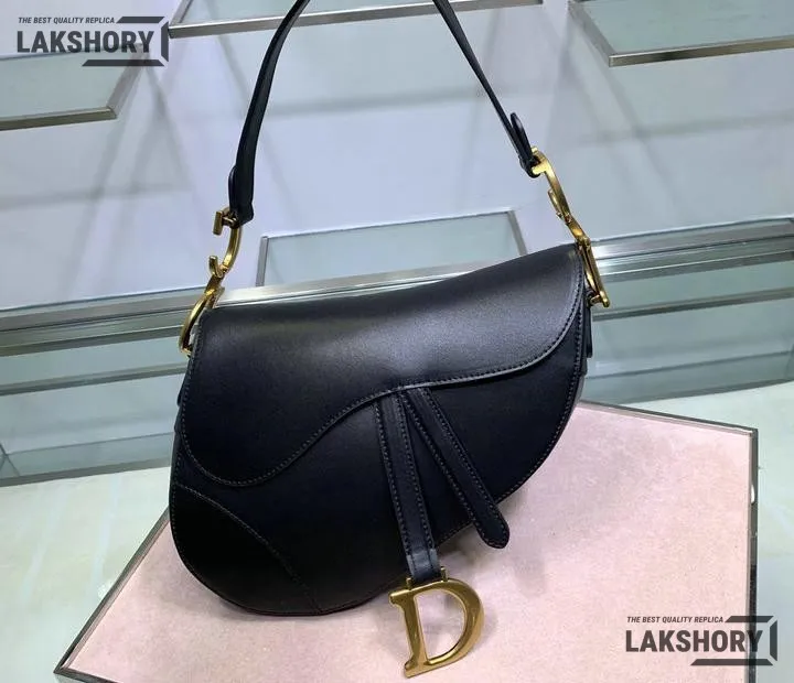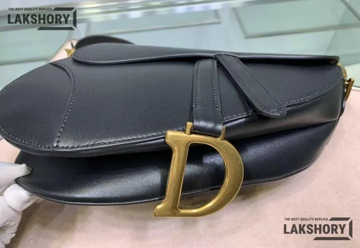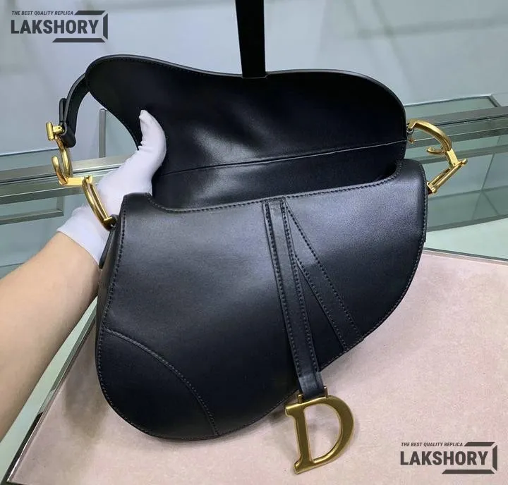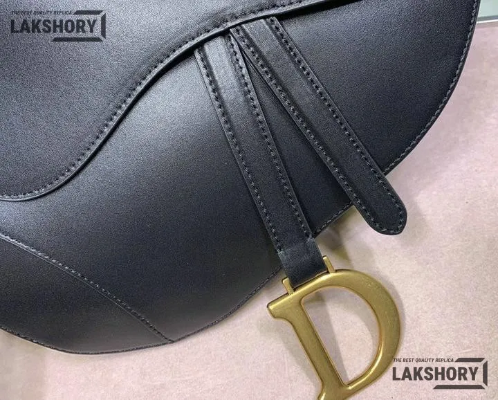 Dior 1:1 Mirror Replica Medium Saddle Black Golden 25.5CM/10IN