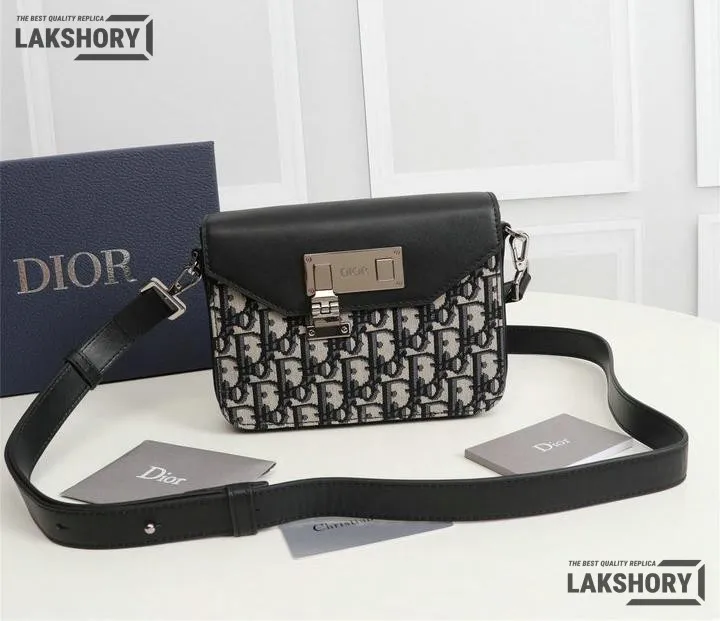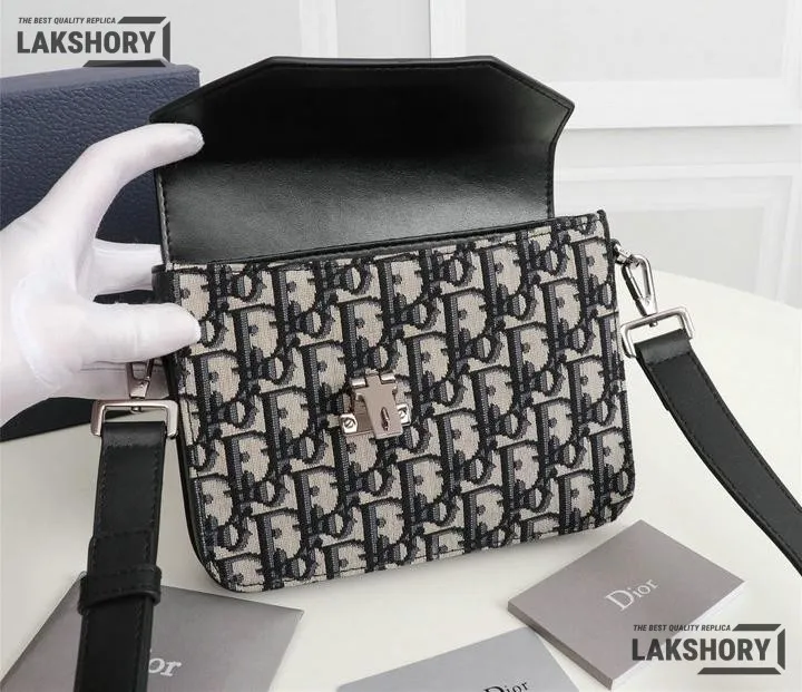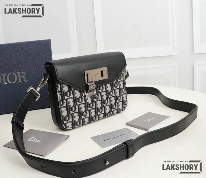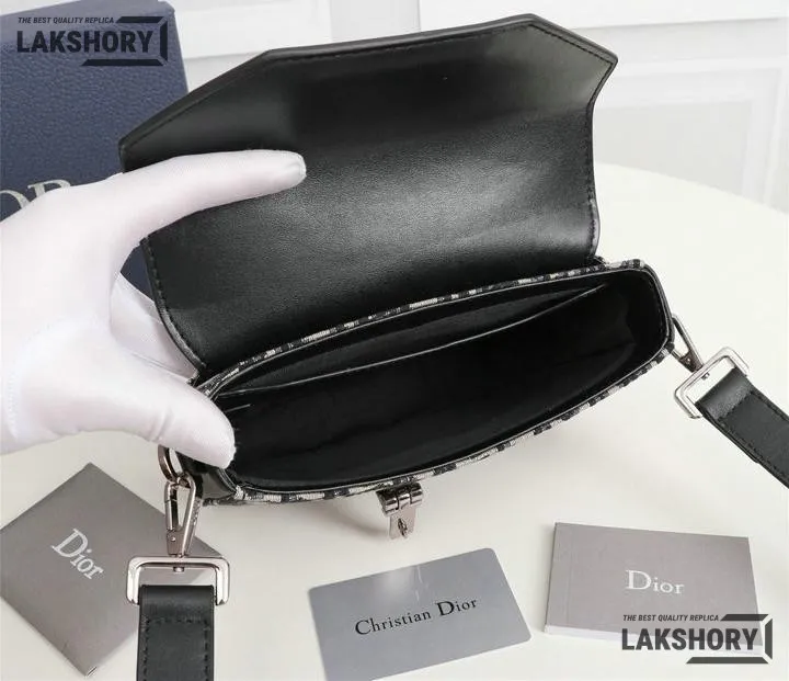 Dior 1:1 Mirror Replica Messenger Beige Black Smooth Calfskin 19CM/7.5IN