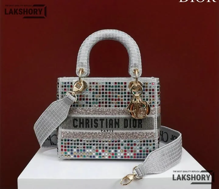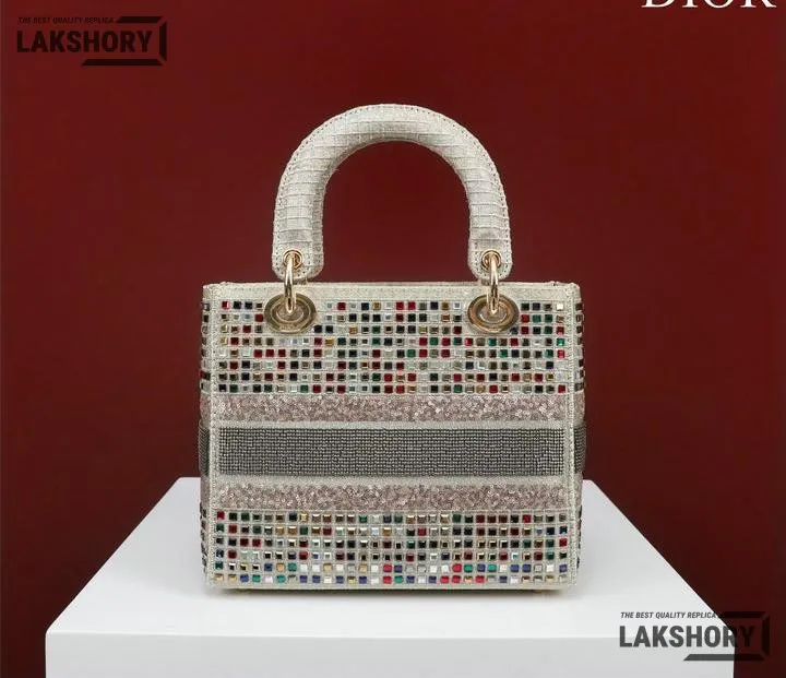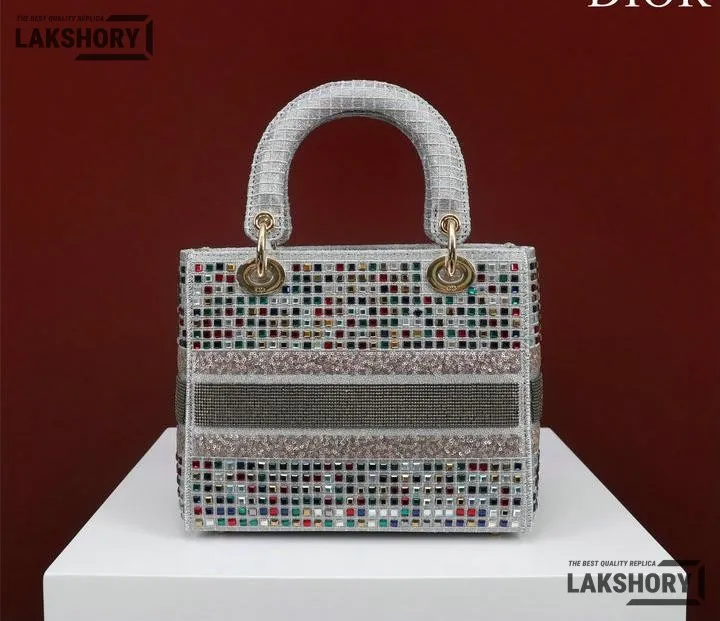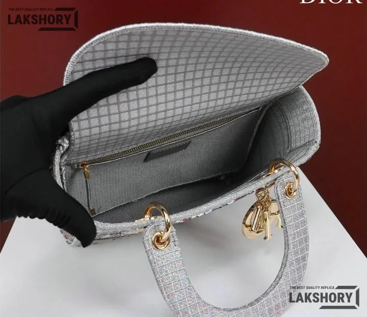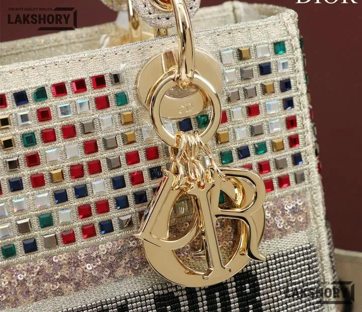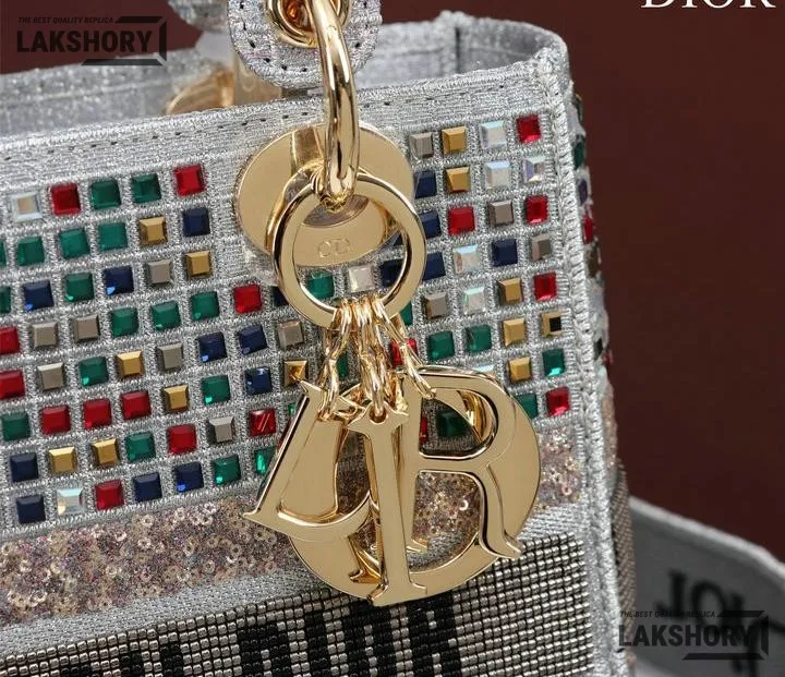 Dior 1:1 Mirror Replica Metallic Embellished Embroidery Lady Dior 24CM/9.4IN