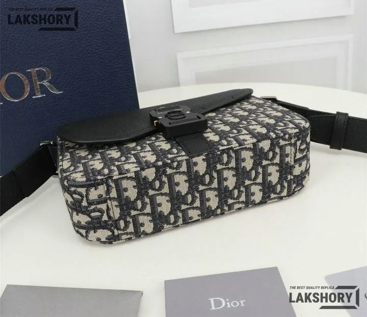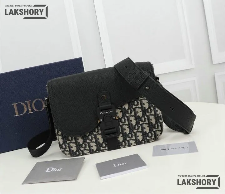 Dior 1:1 Mirror Replica Mini Beige/Black Saddle Bag w/ Strap 23CM/9.1IN