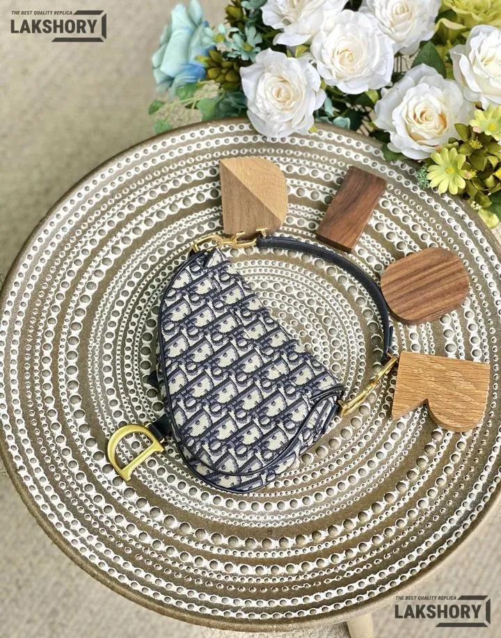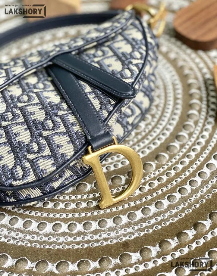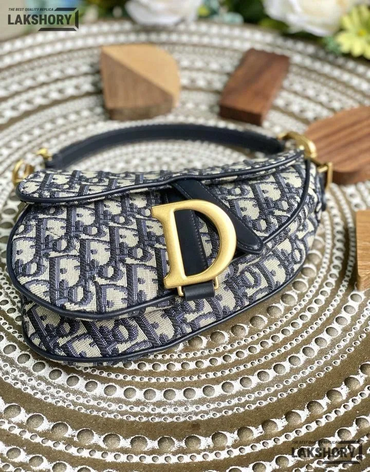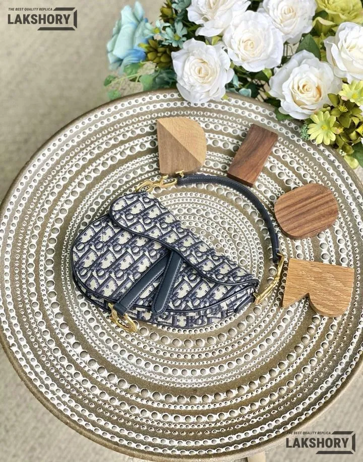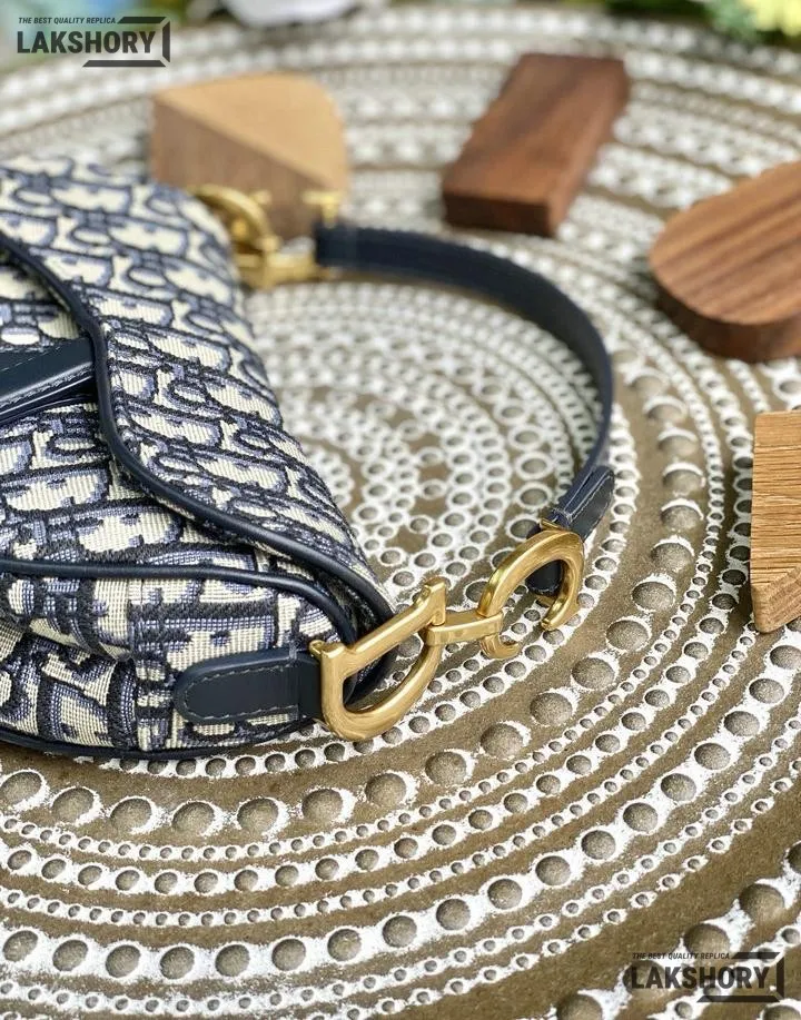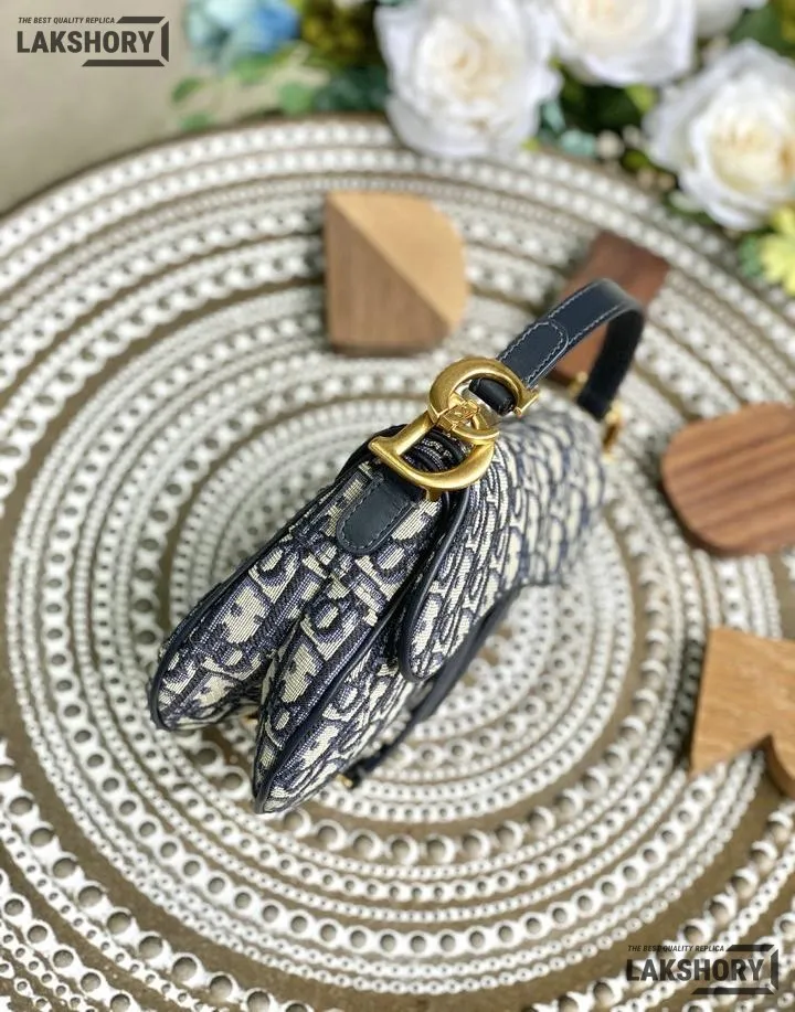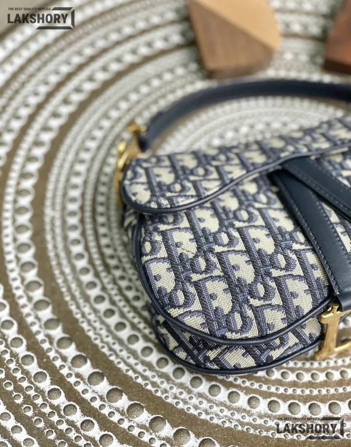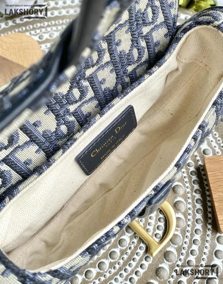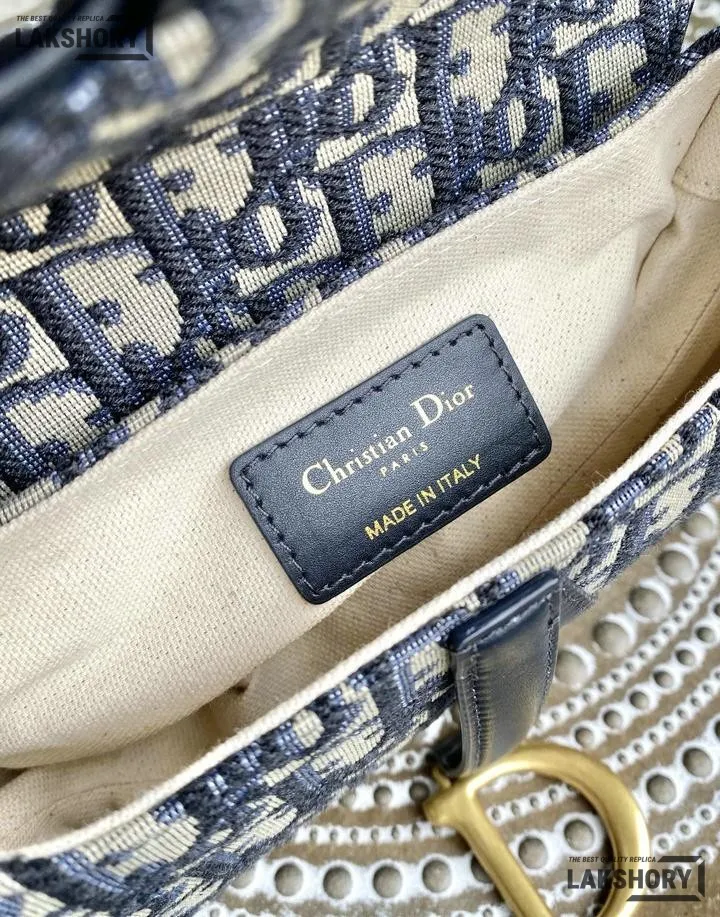 Dior 1:1 Mirror Replica Mini Navy Canvas Saddle Bag 19.5CM/7.7IN