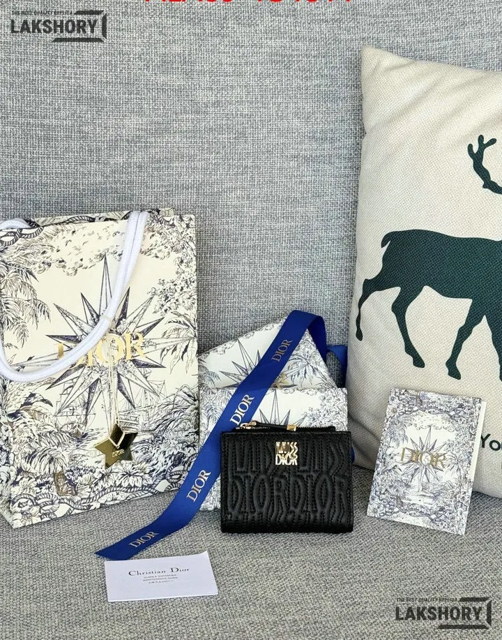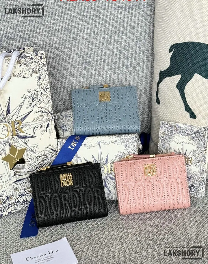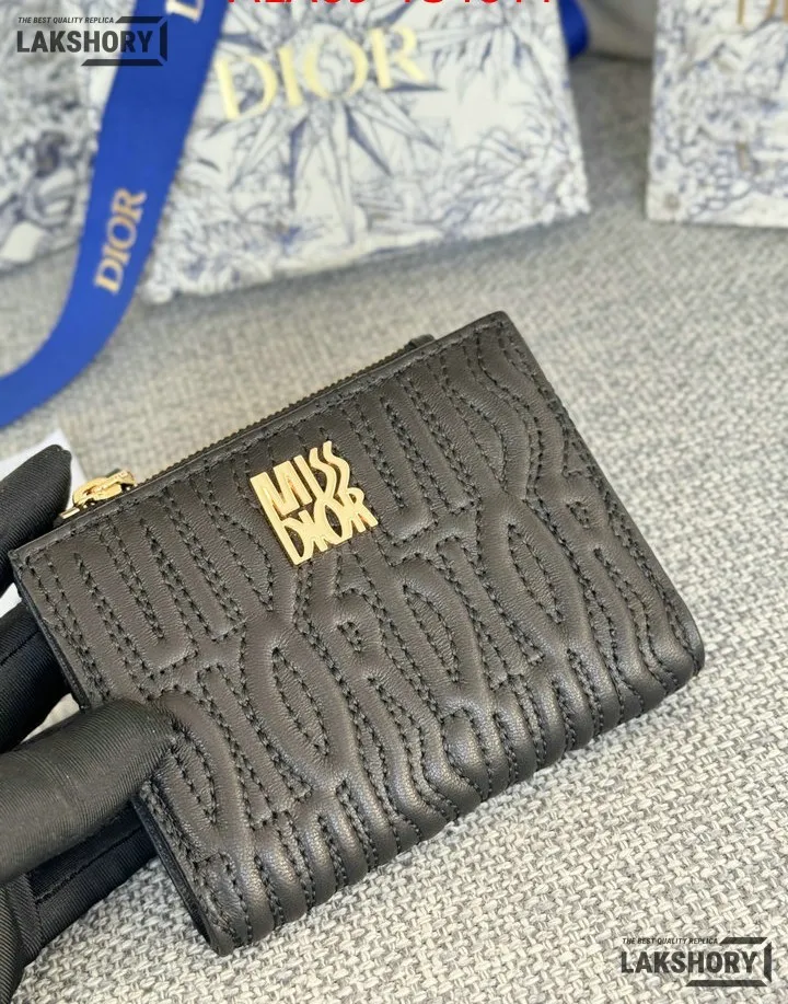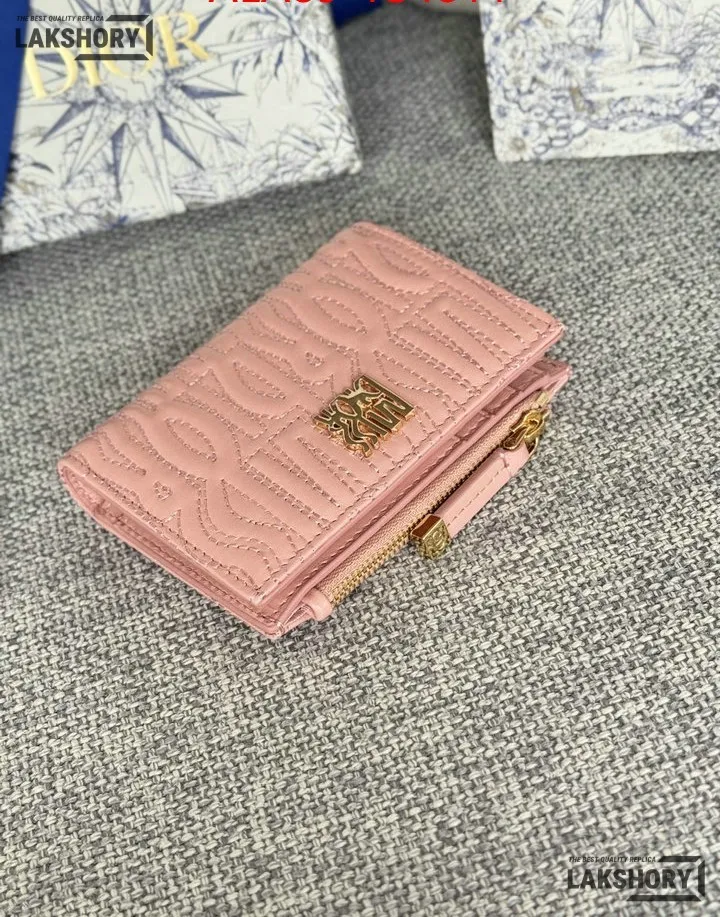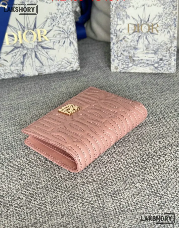 Dior 1:1 Mirror Replica Miss Dior Dahlia Wallet Lambskin Quilted 11.5CM/4.5IN