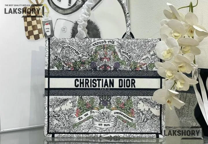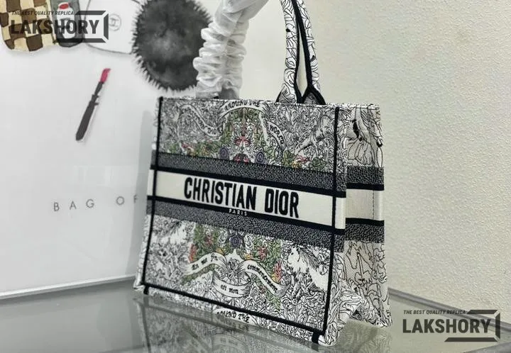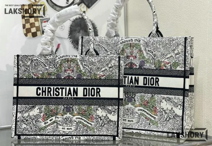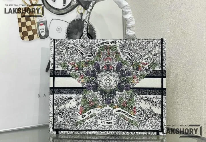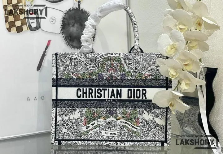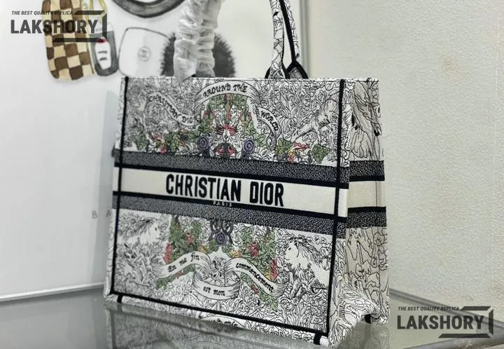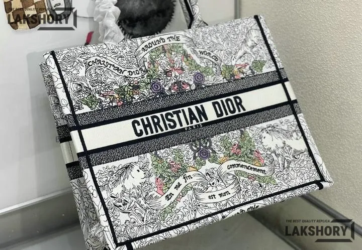 Dior 1:1 Mirror Replica Multicolor Book Tote Latte Around the World