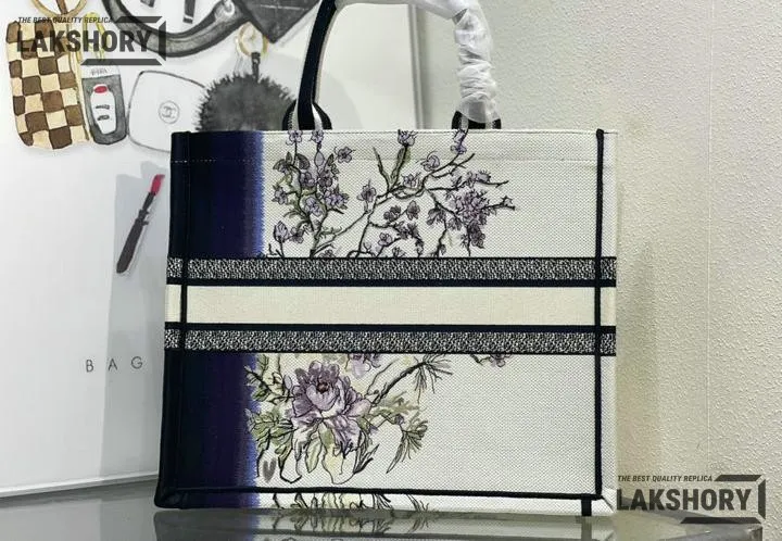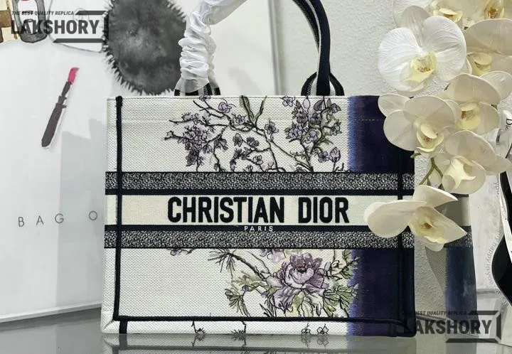 Dior 1:1 Mirror Replica Multicolor Dior Book Tote Pivoine Embroidery